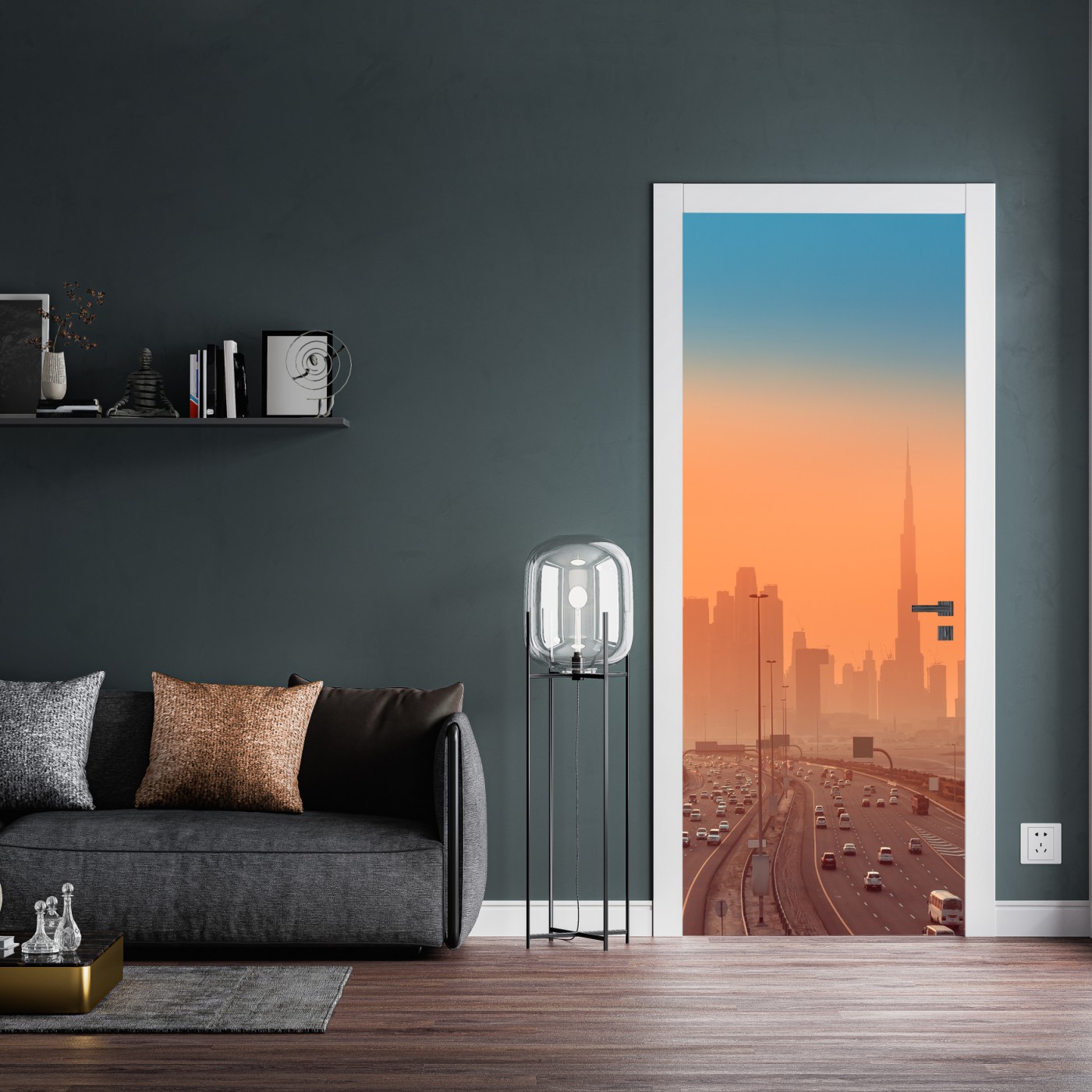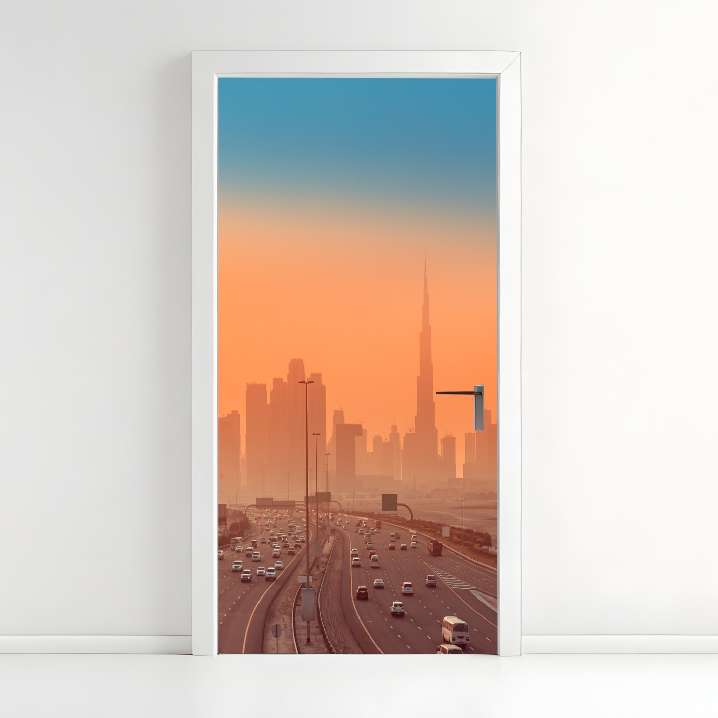 Türaufkleber Dubai skyline bei sonnenaufgang