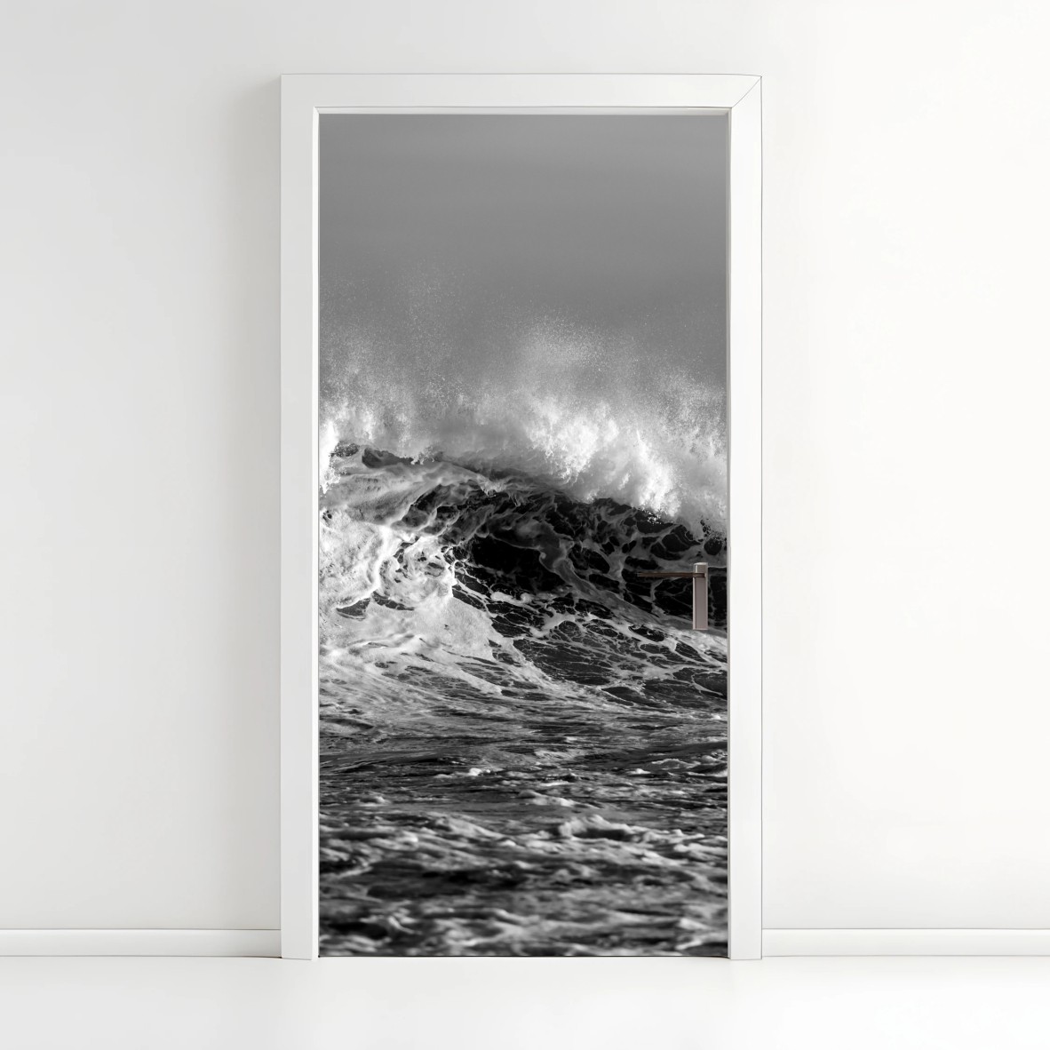 Türaufkleber Dramatische schwarzweiß-welle des ozeans