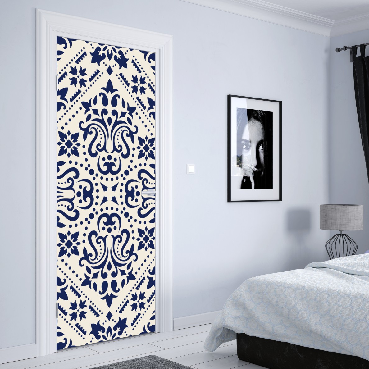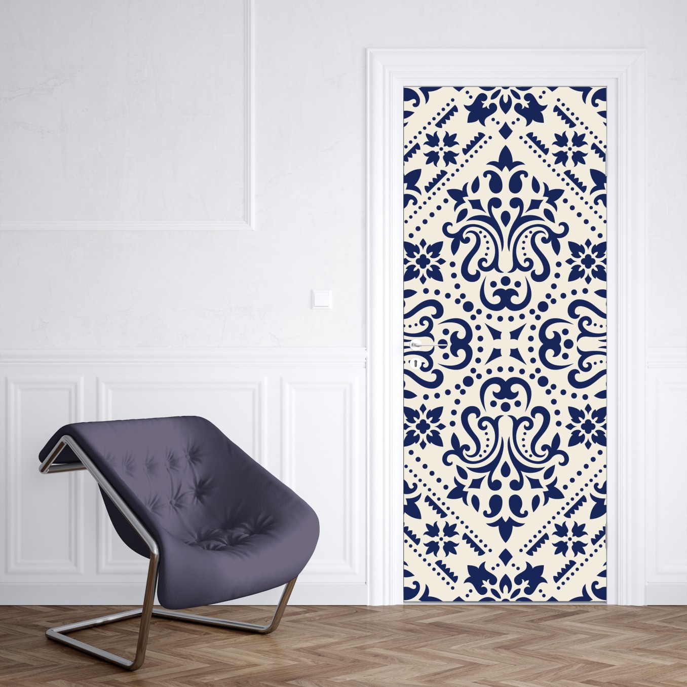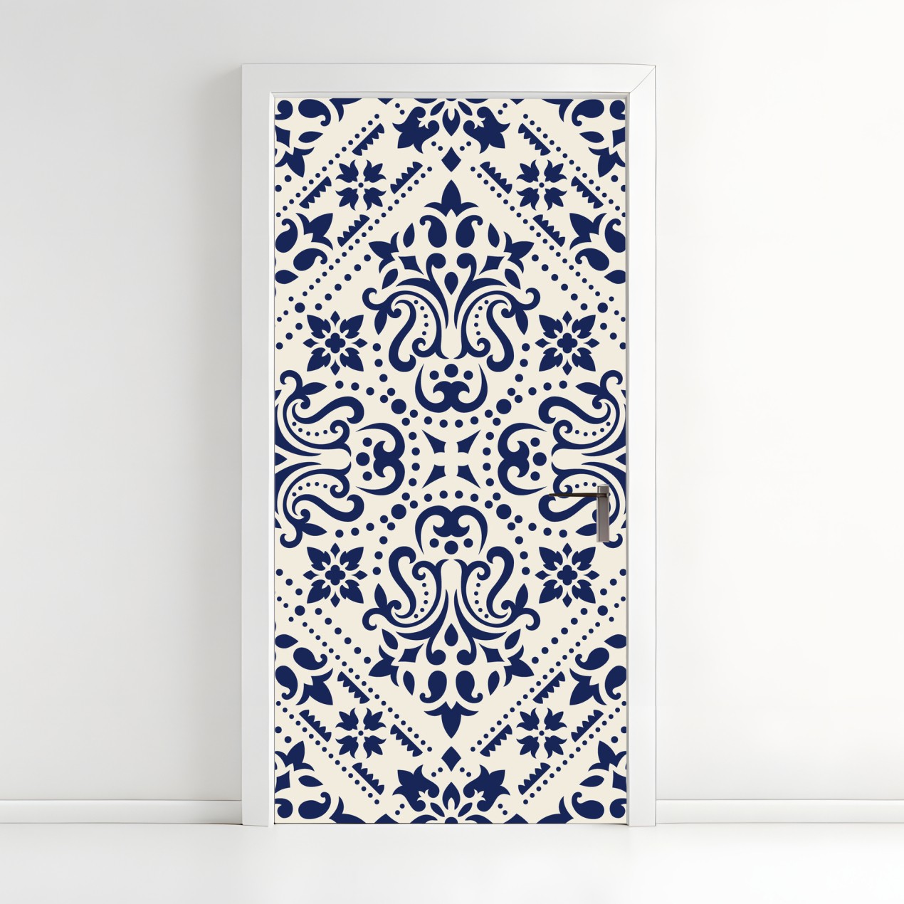 Türaufkleber Marineblaues damast-fliesenmuster