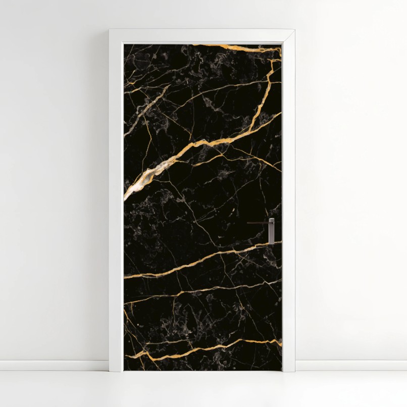 Türaufkleber Schwarzer marmor mit goldenen adern