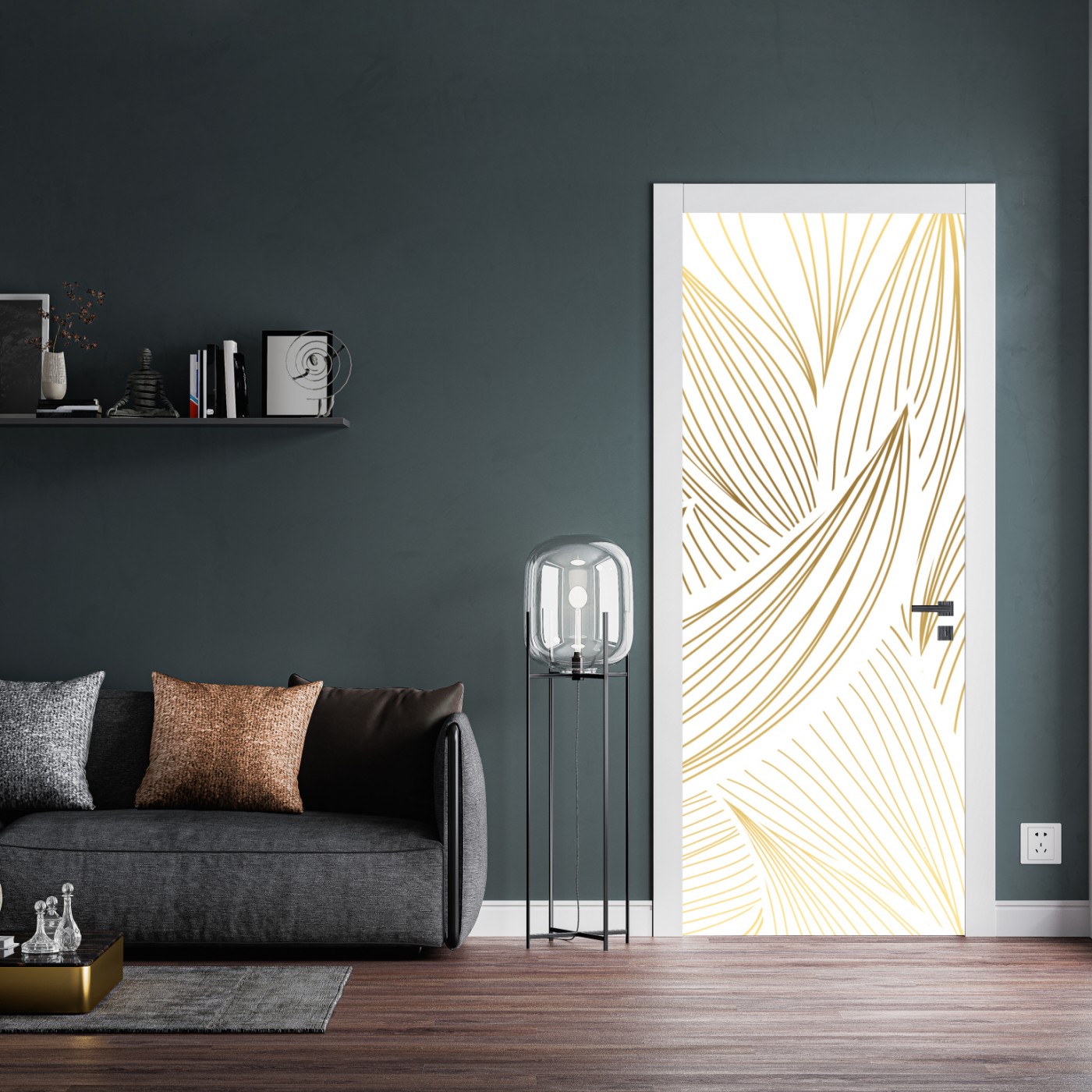 Türaufkleber Goldene blattlinien