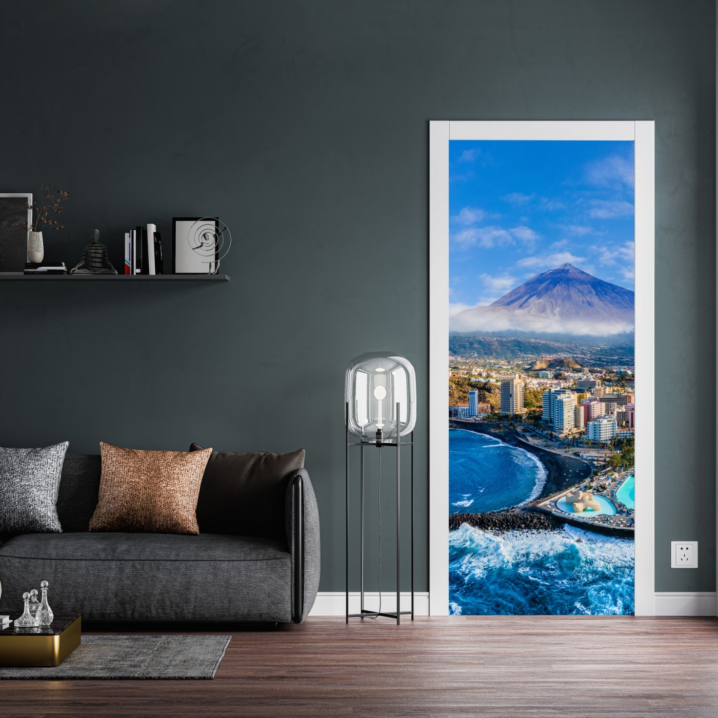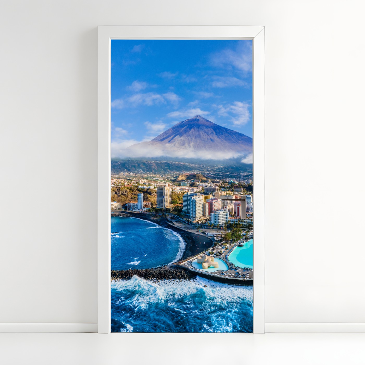 Türaufkleber Luftpanorama der küste von Teneriffa mit dem Mount Teide