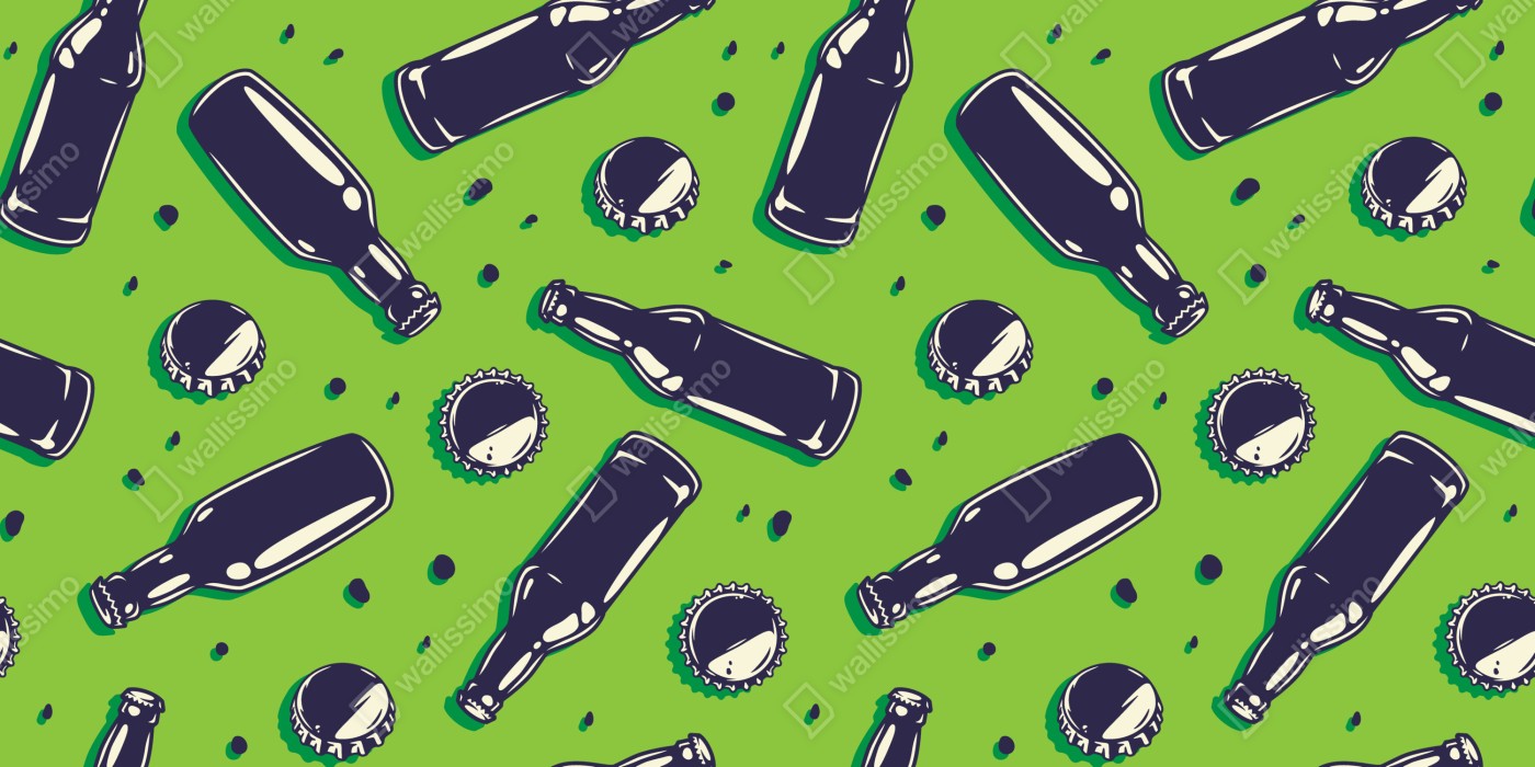 Türaufkleber Grünes pop-art-muster mit bierflaschen und kronkorken