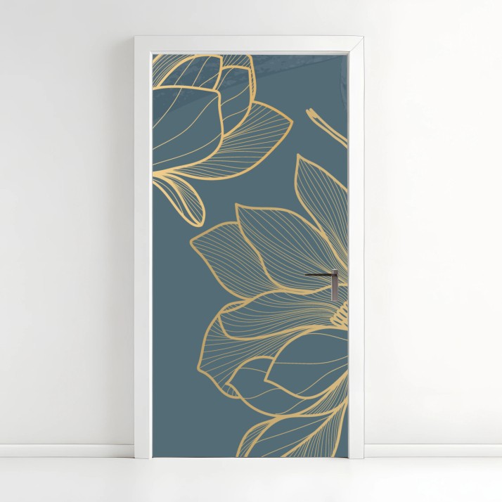 Türaufkleber Goldene magnolie auf türkisfarbenem hintergrund