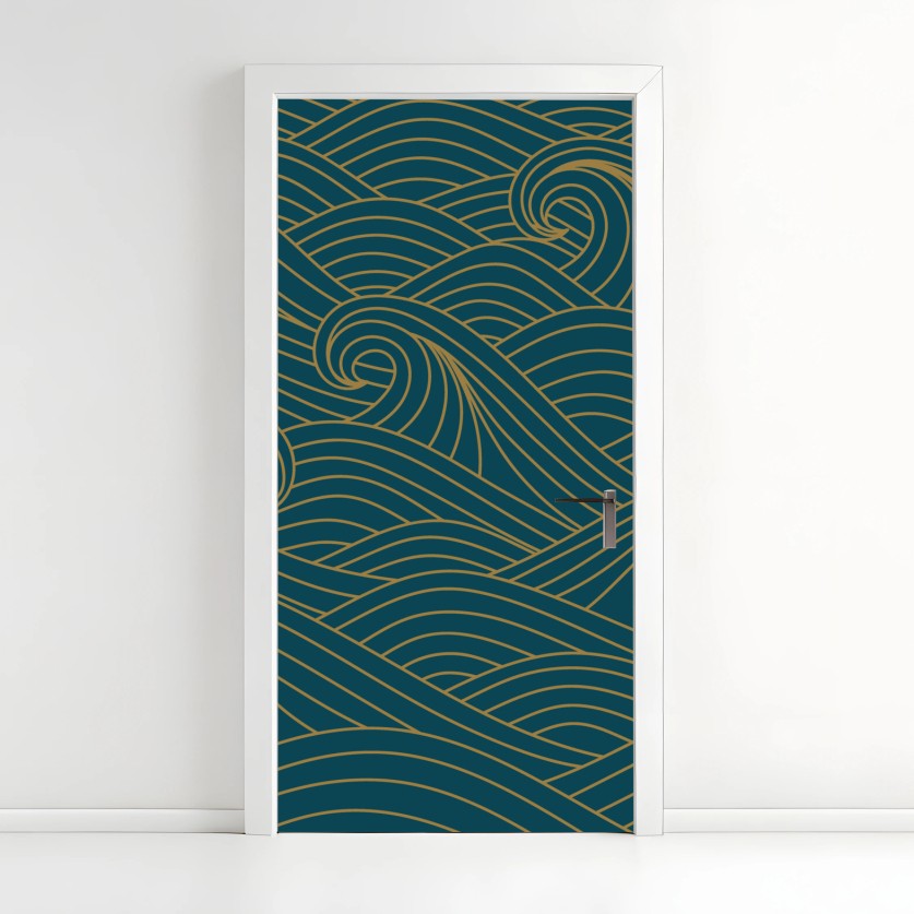 Türaufkleber Türkiswellenmuster mit goldlinien