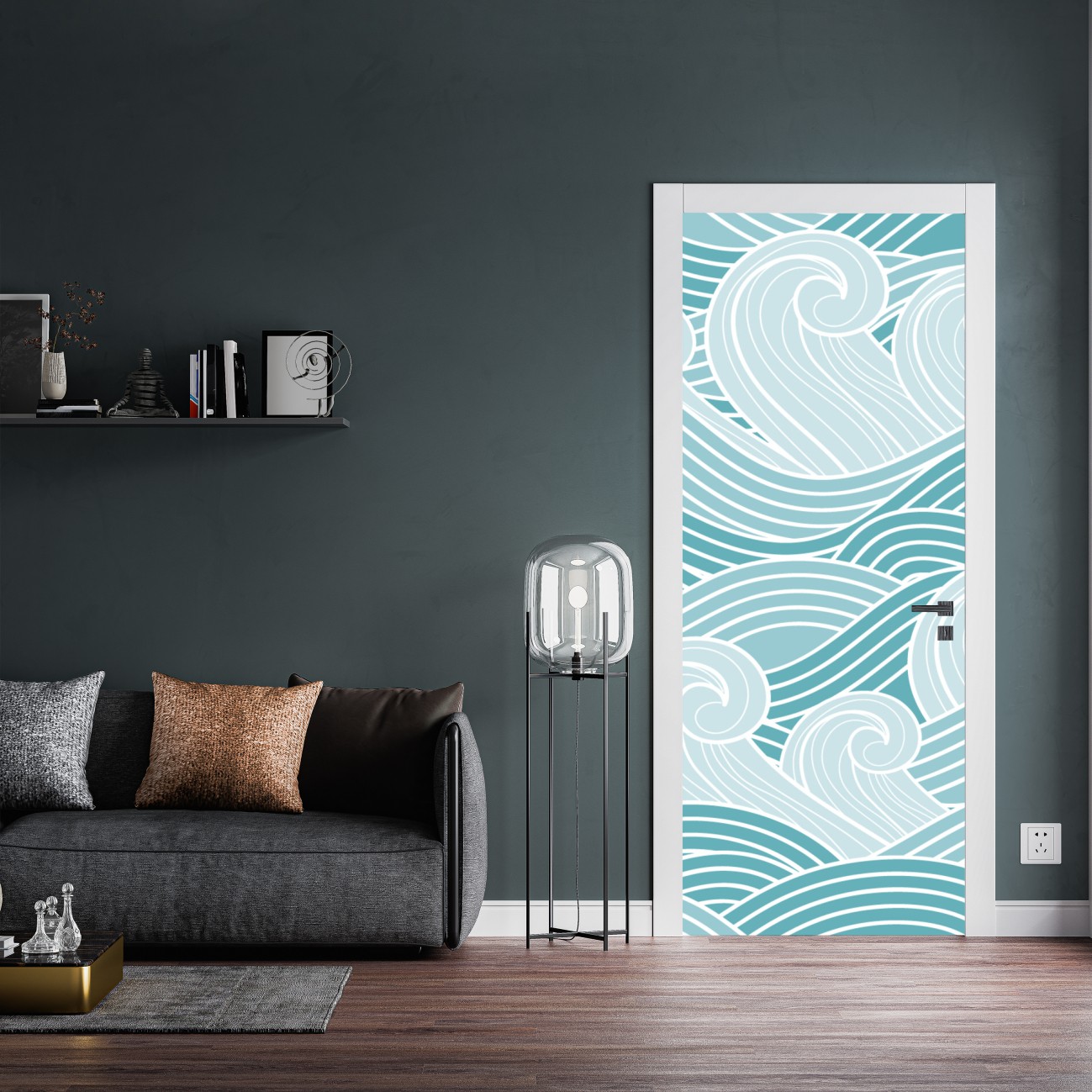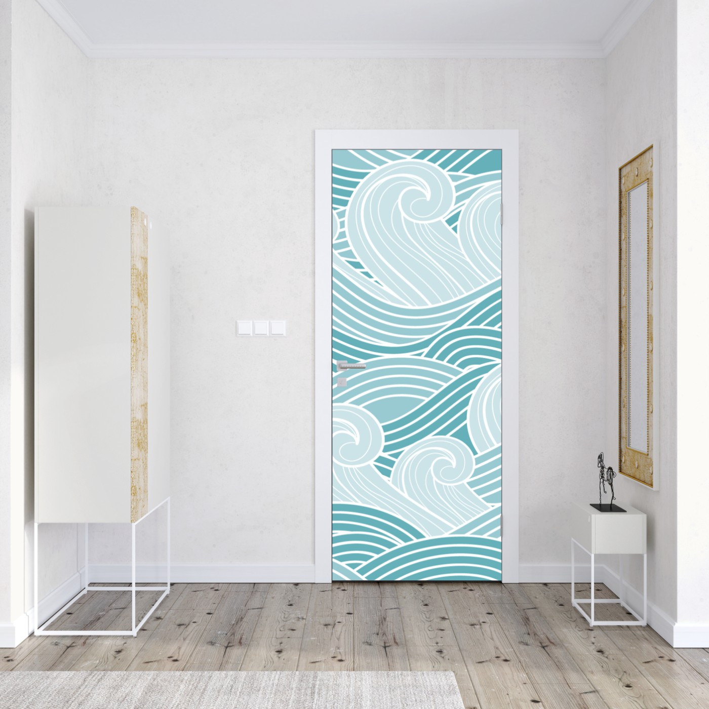 Türaufkleber Ruhiges türkisfarbenes wellenmuster