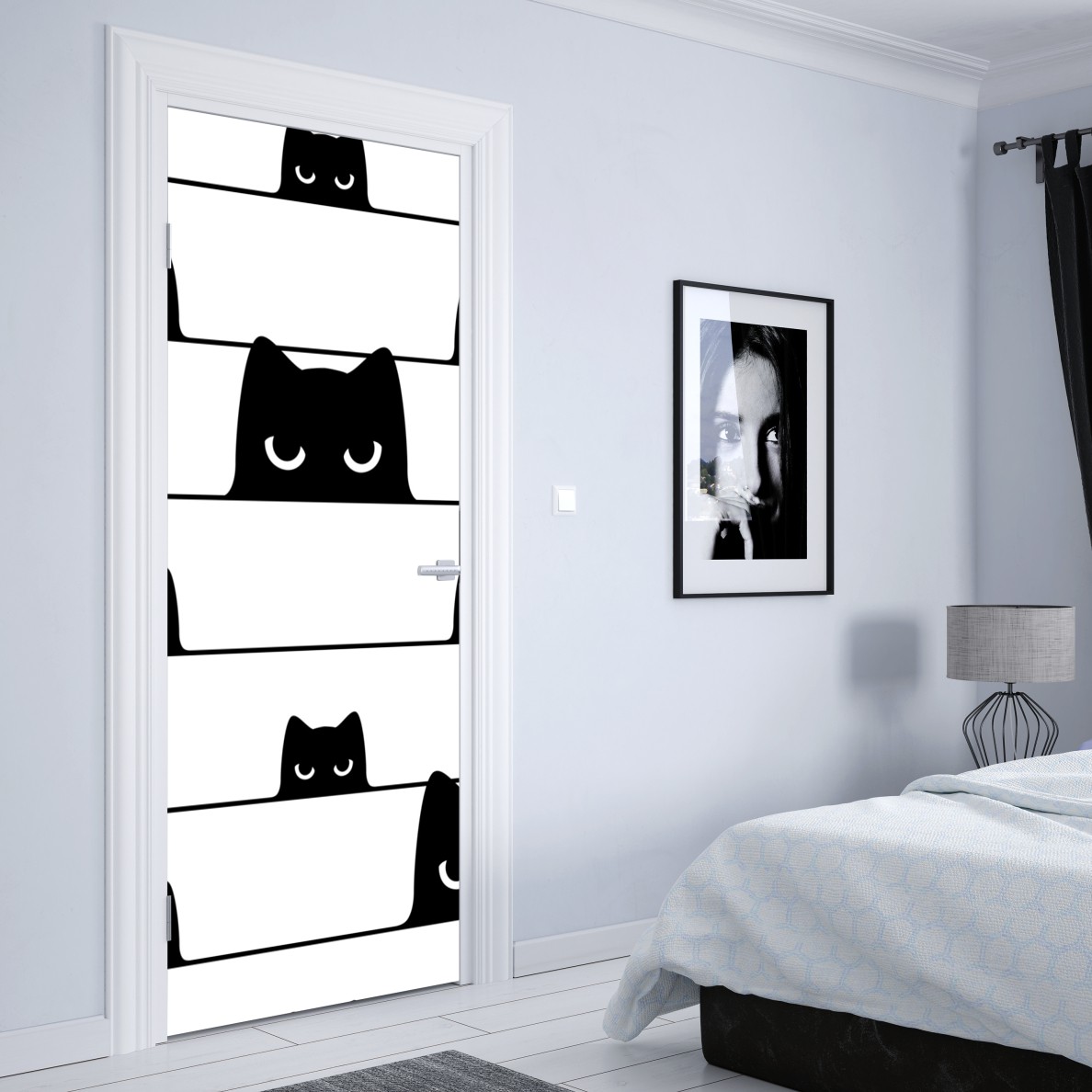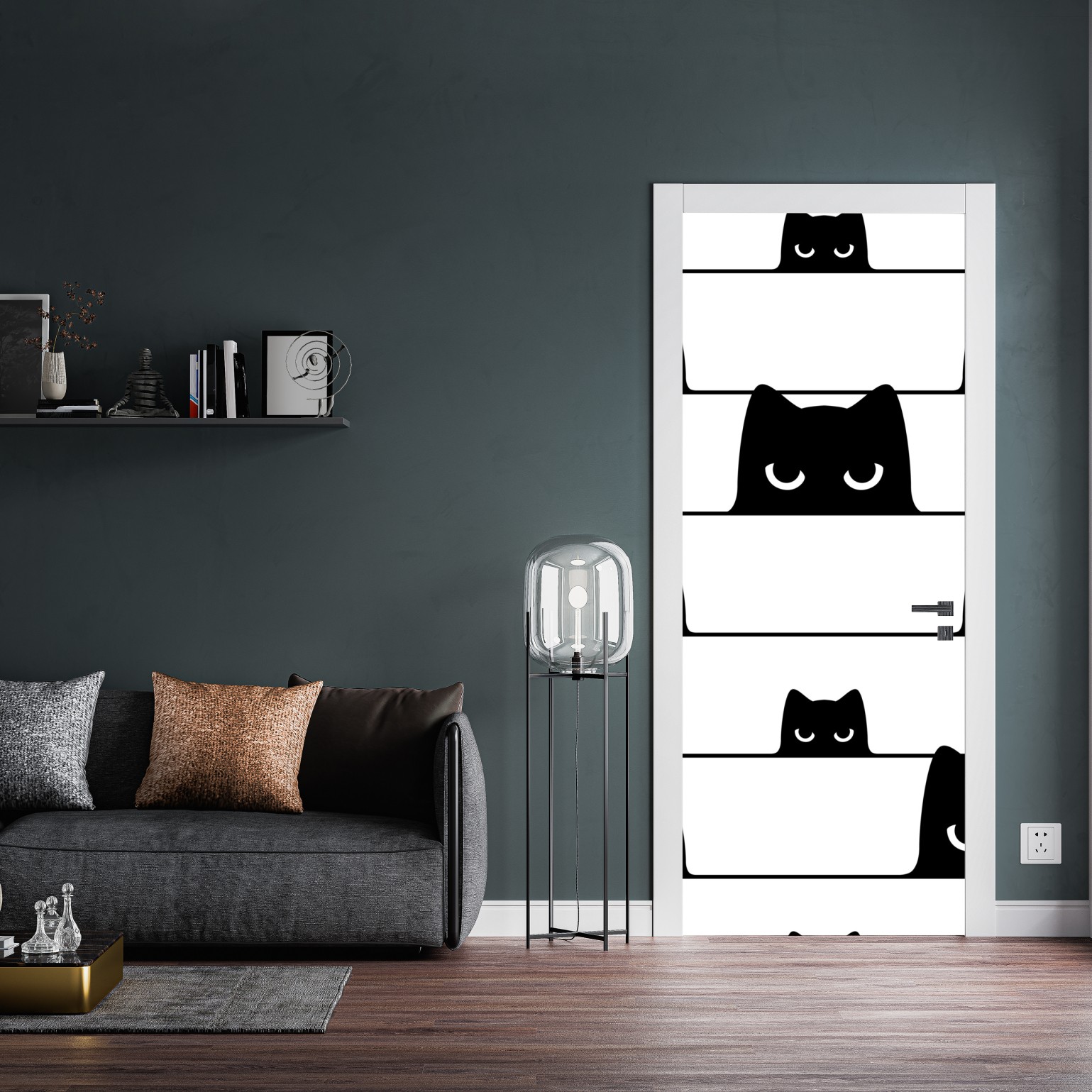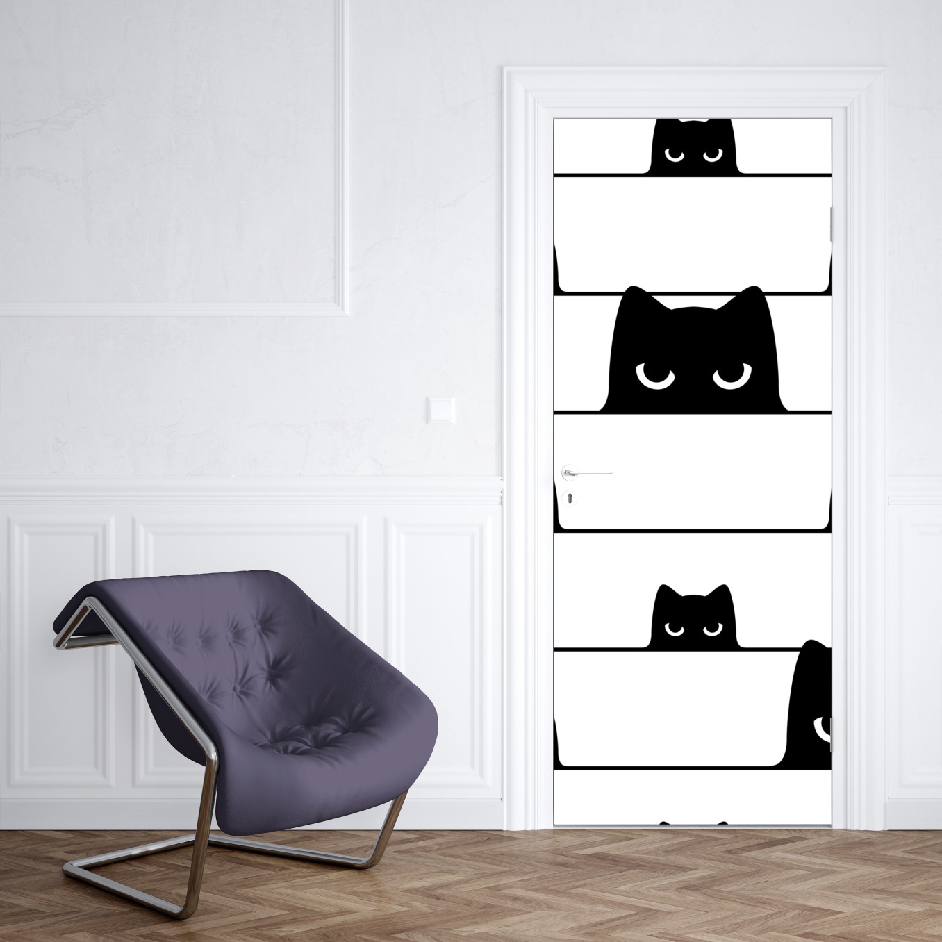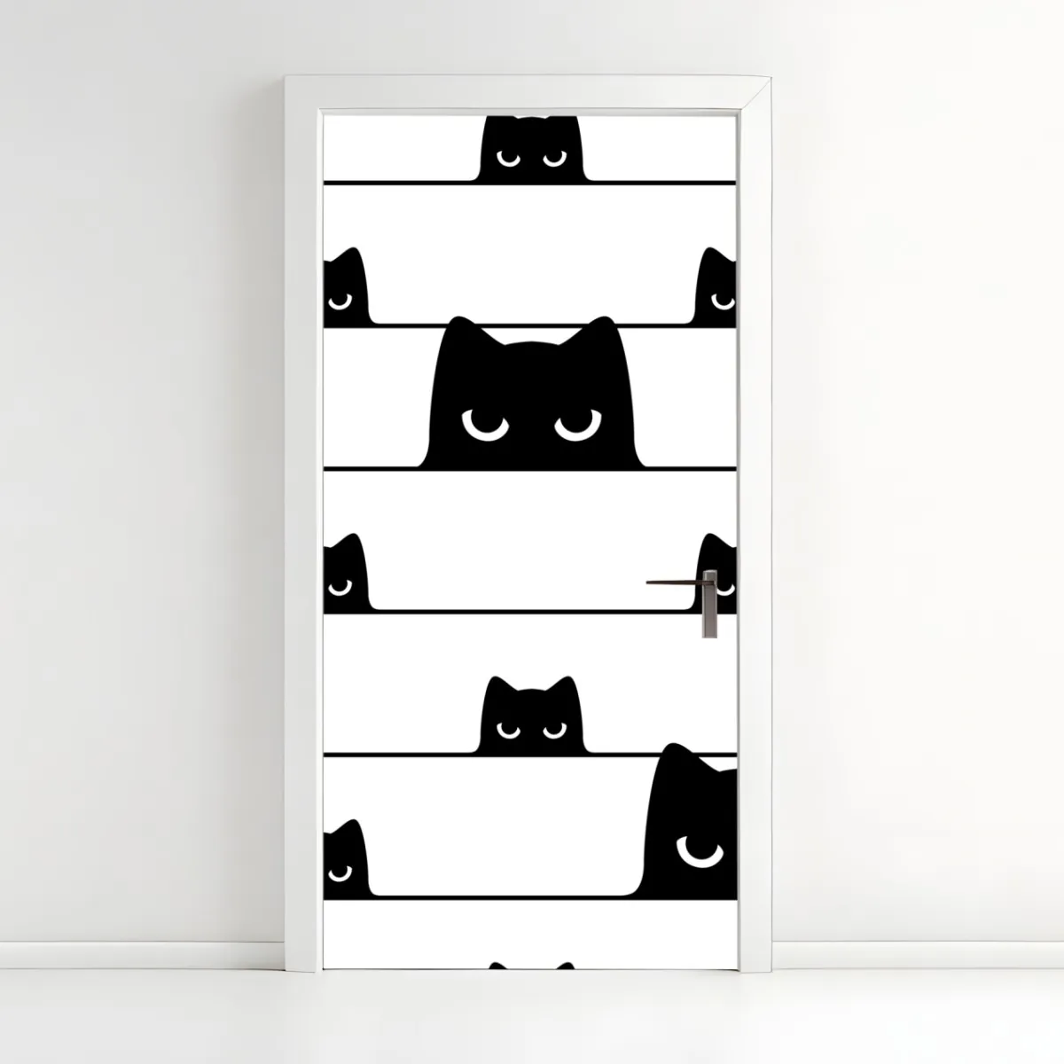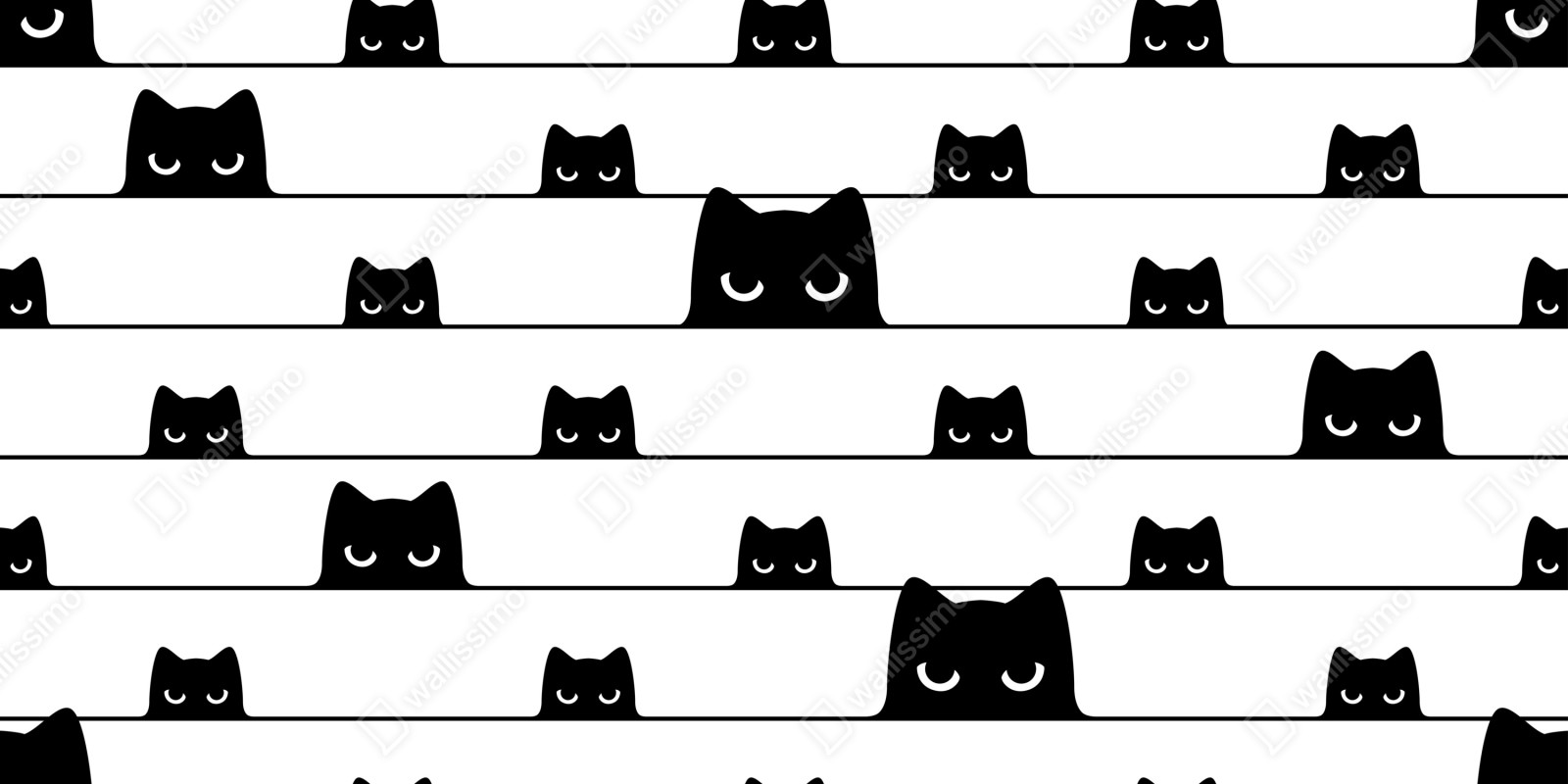 Charmantes minimalistisches Muster mit hervorblickenden Katzensilhouetten in Schwarzweiß, perfekt für verspielte und moderne Wohnräume.