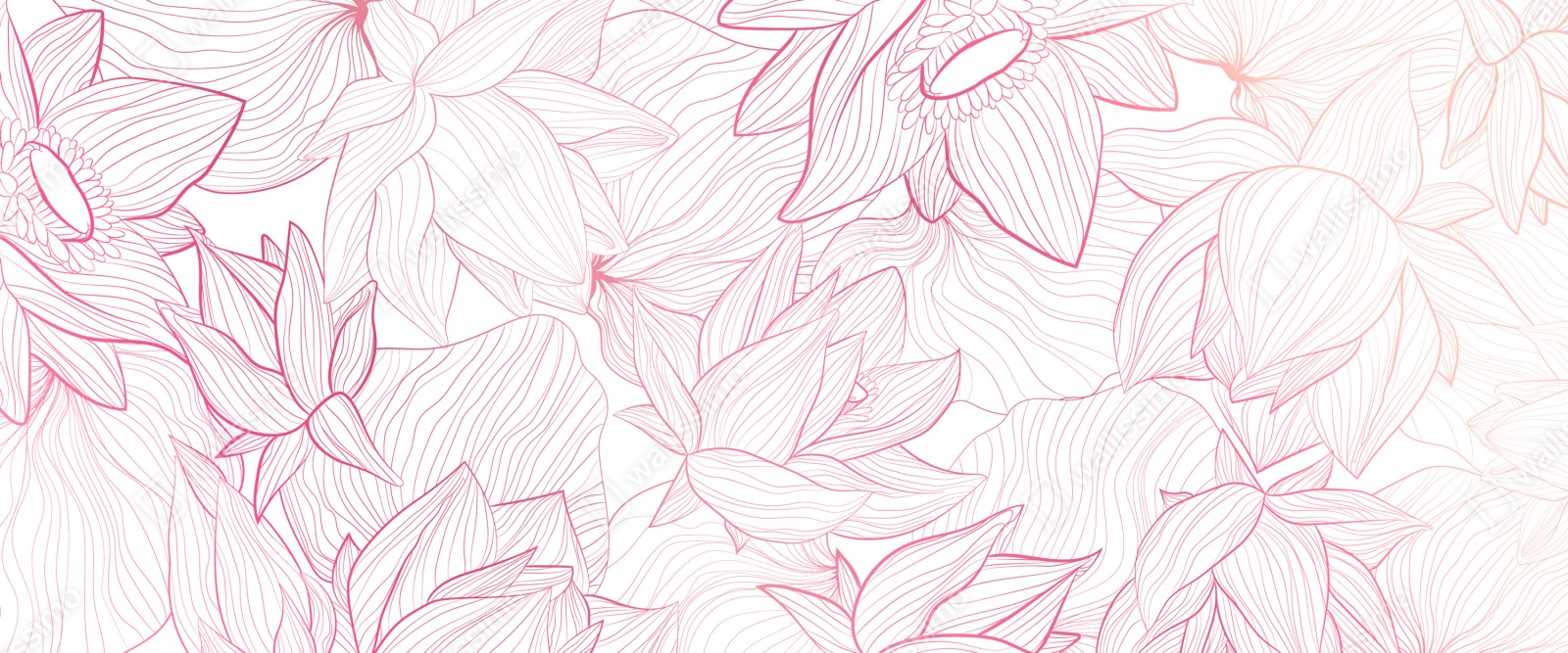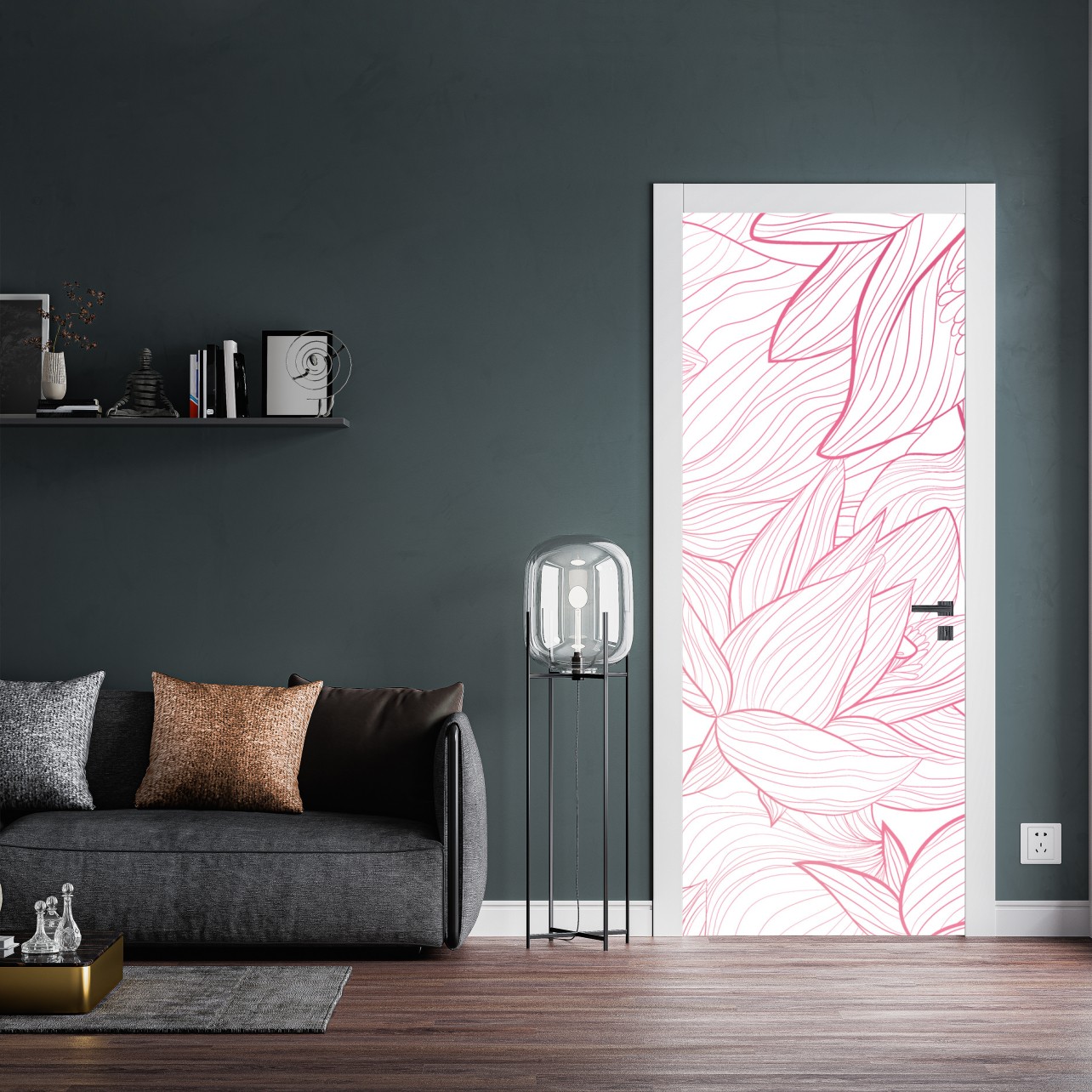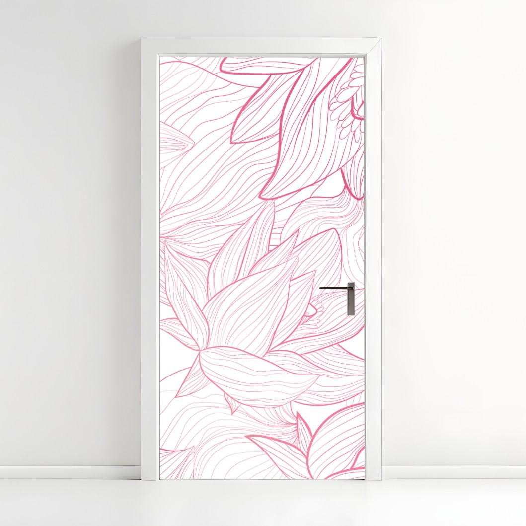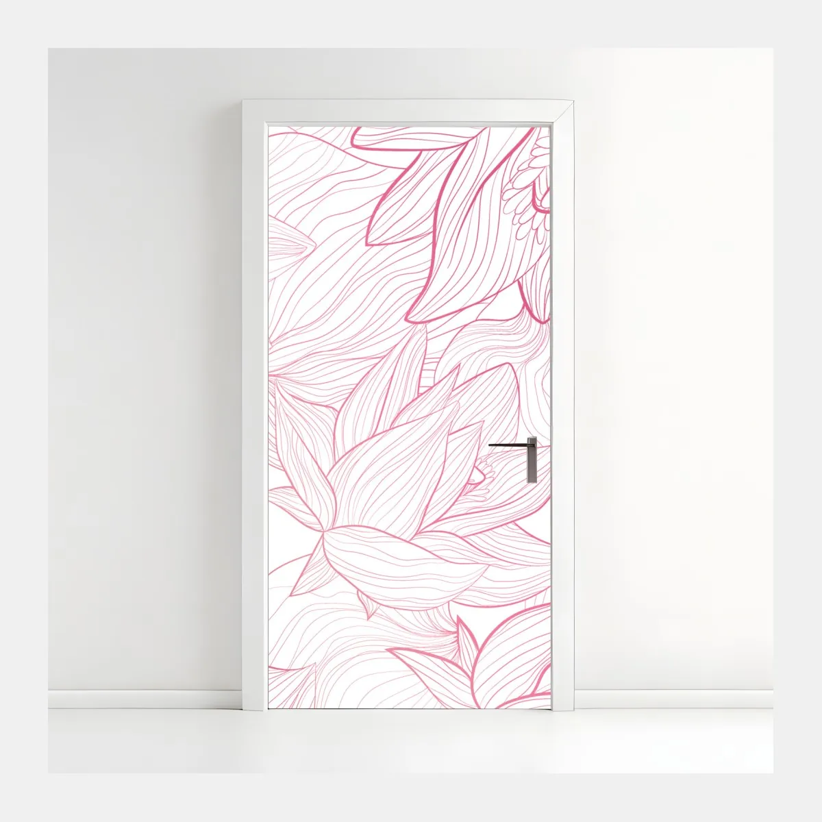 zartes rosa blumenmuster in linienzeichnung mit botanischen details, ideal um eine ruhige und moderne raumatmosphäre zu schaffen.