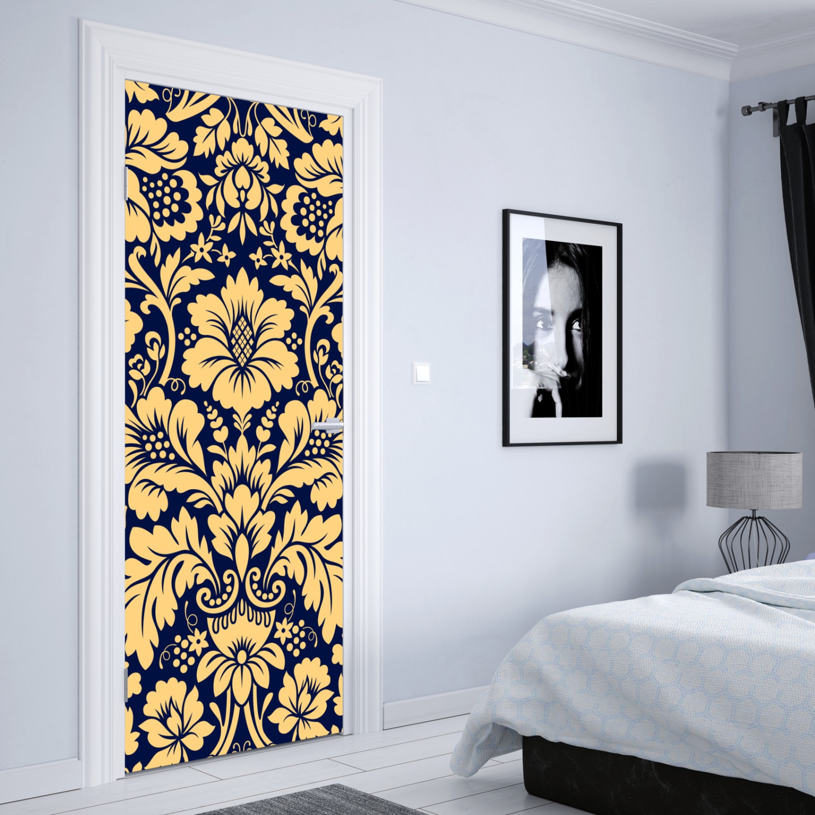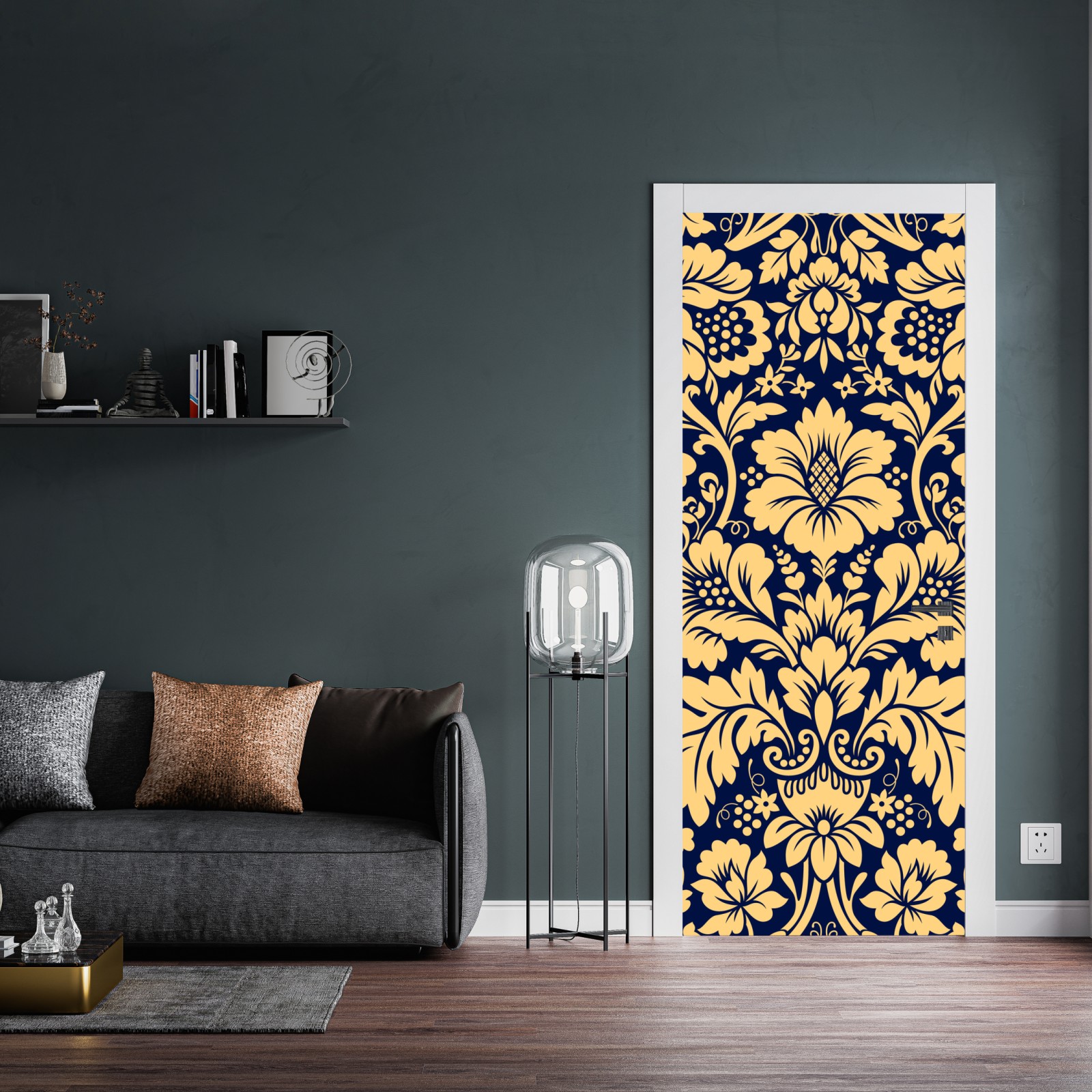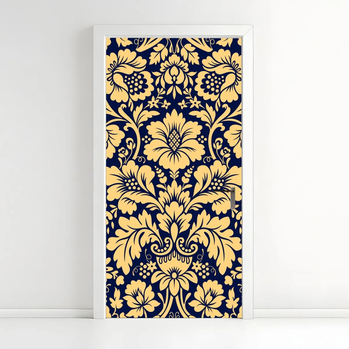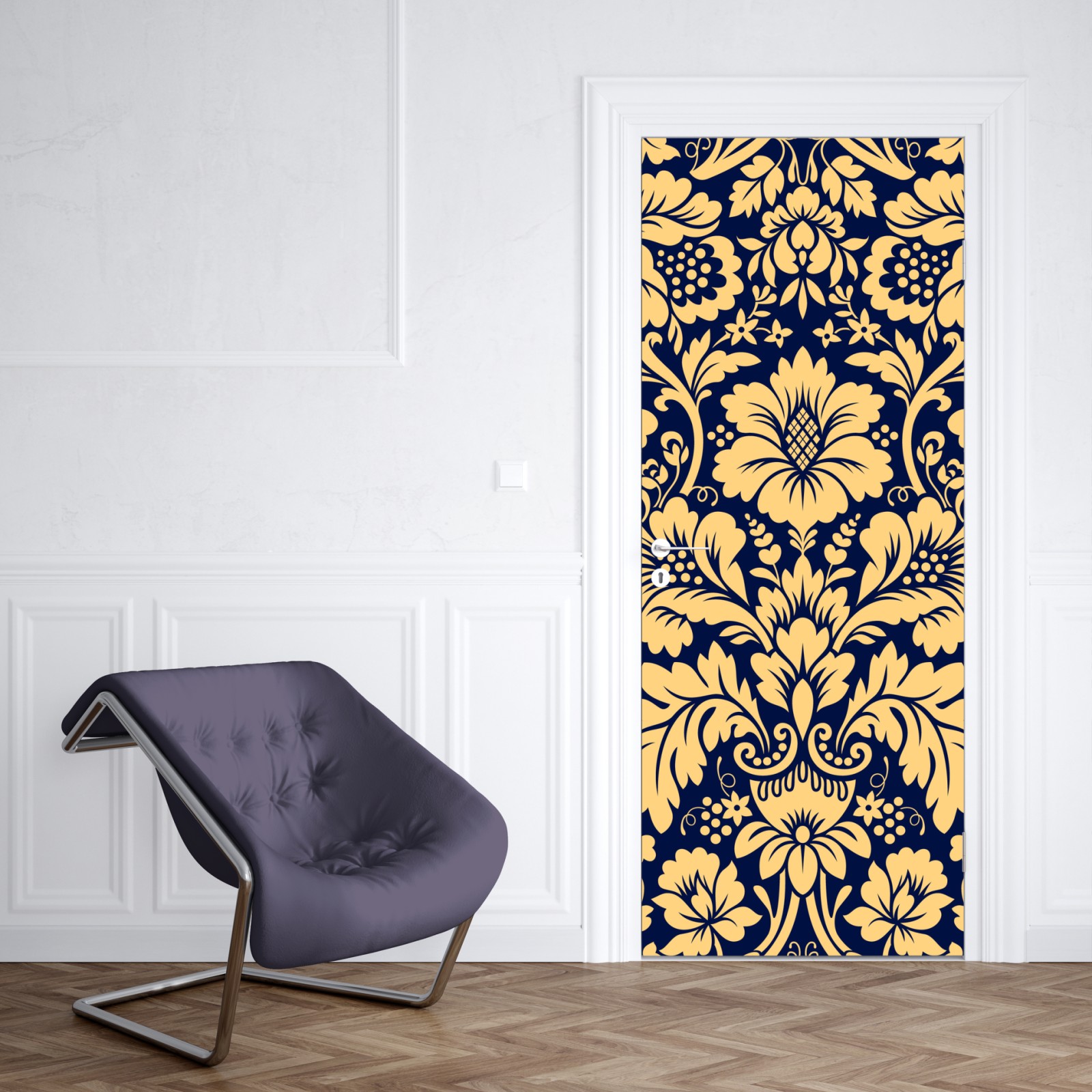 ornamentales dunkelblau-beiges damastmuster verleiht räumen klassische eleganz und passt ideal zu vintage-interieurs.
