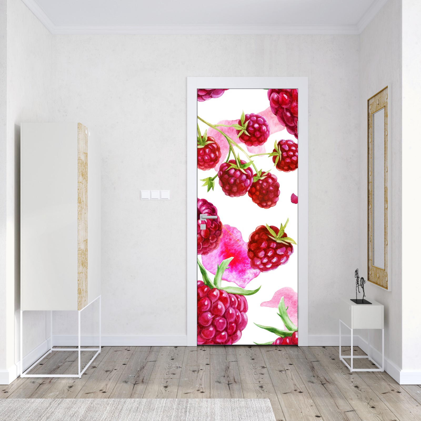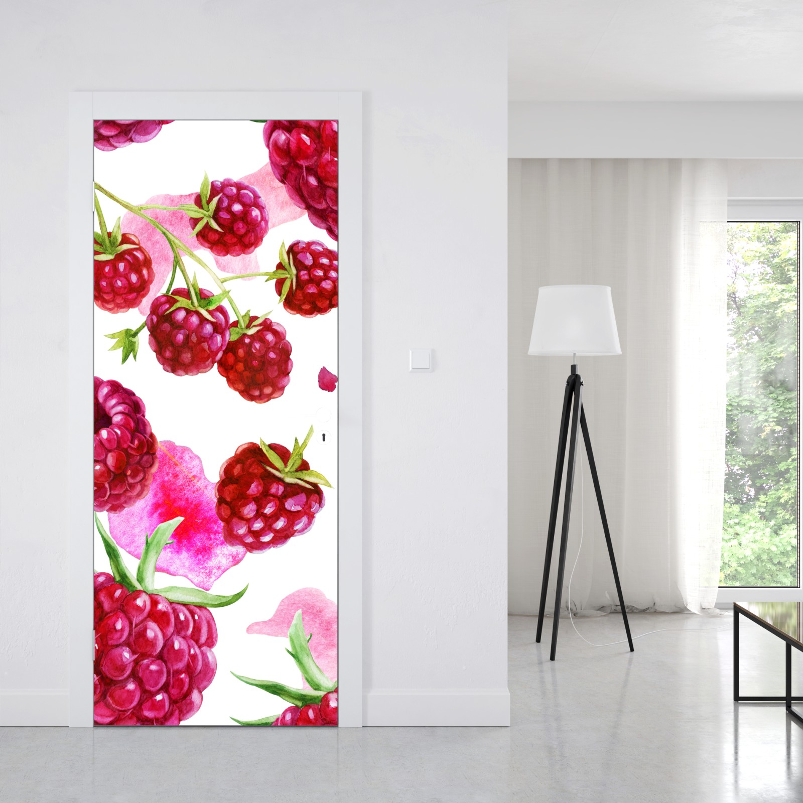 lebhafte aquarell himbeeren bilden ein frisches, verspieltes muster, das küche und esszimmer aufhellt.