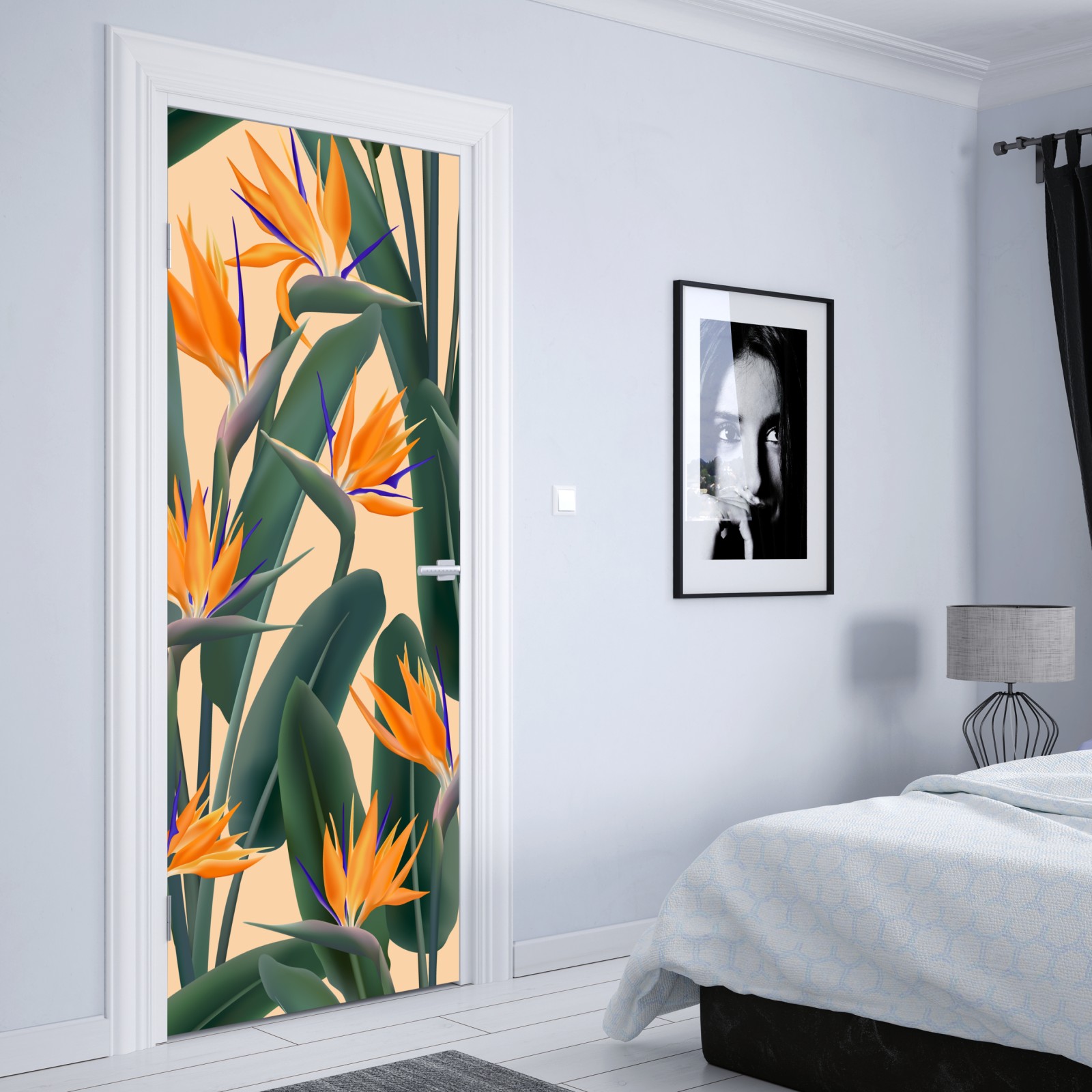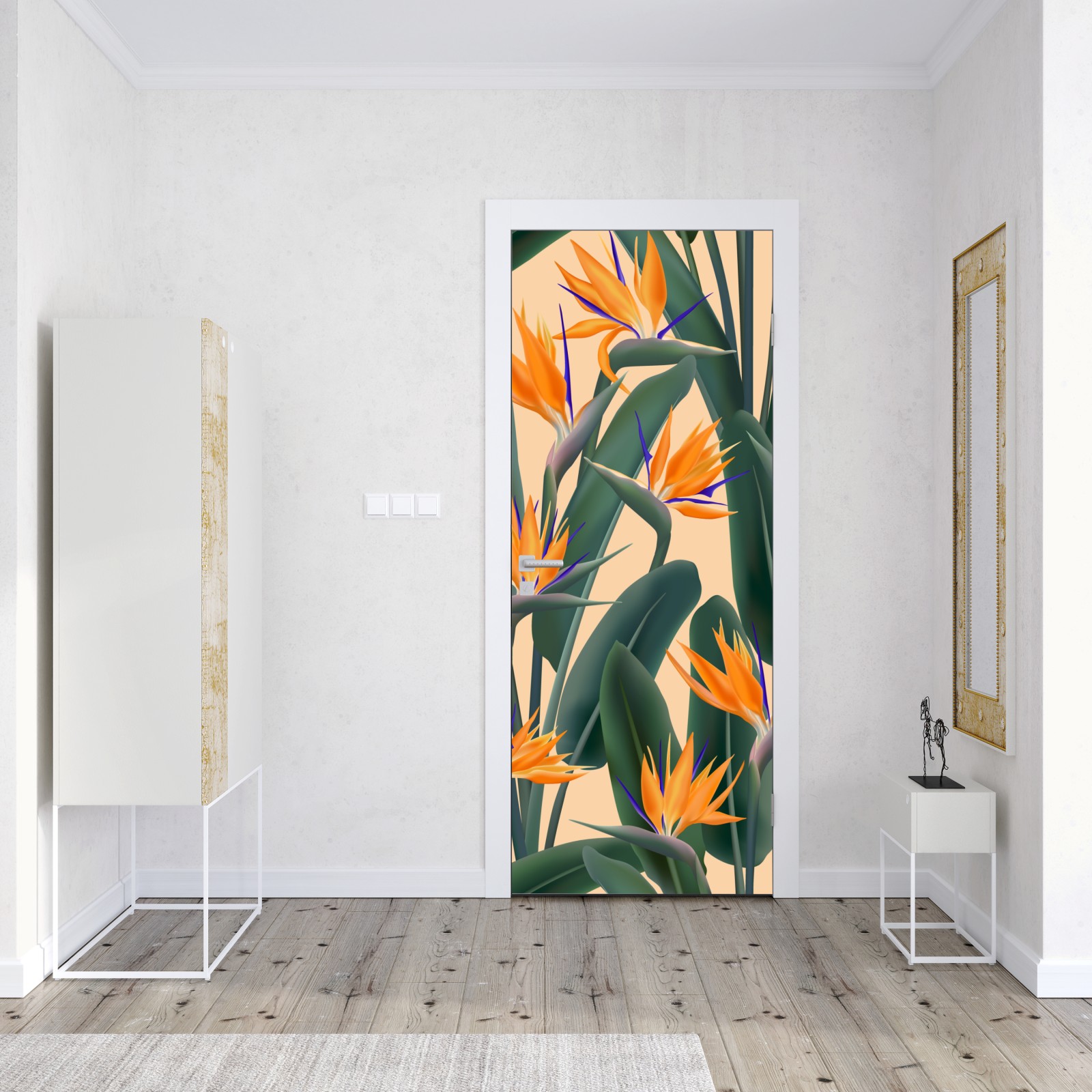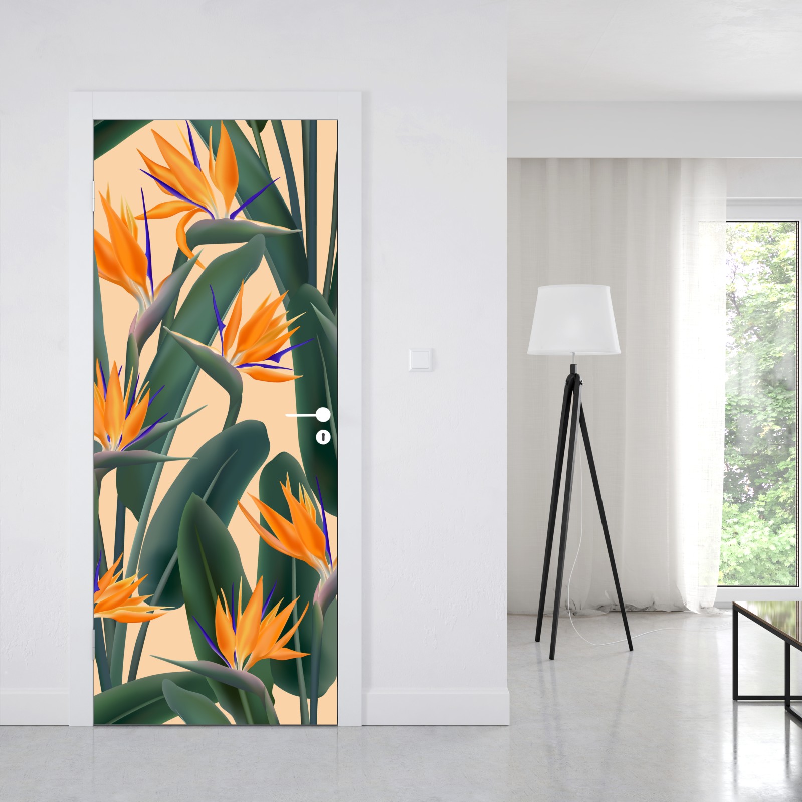 Türaufkleber tropisches muster mit strelitzie