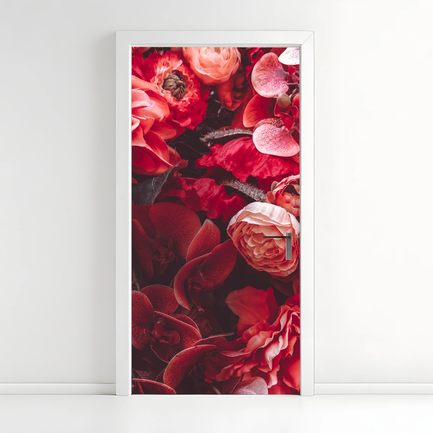 Türaufkleber Prächtiges blütenmeer in tiefroten tönen