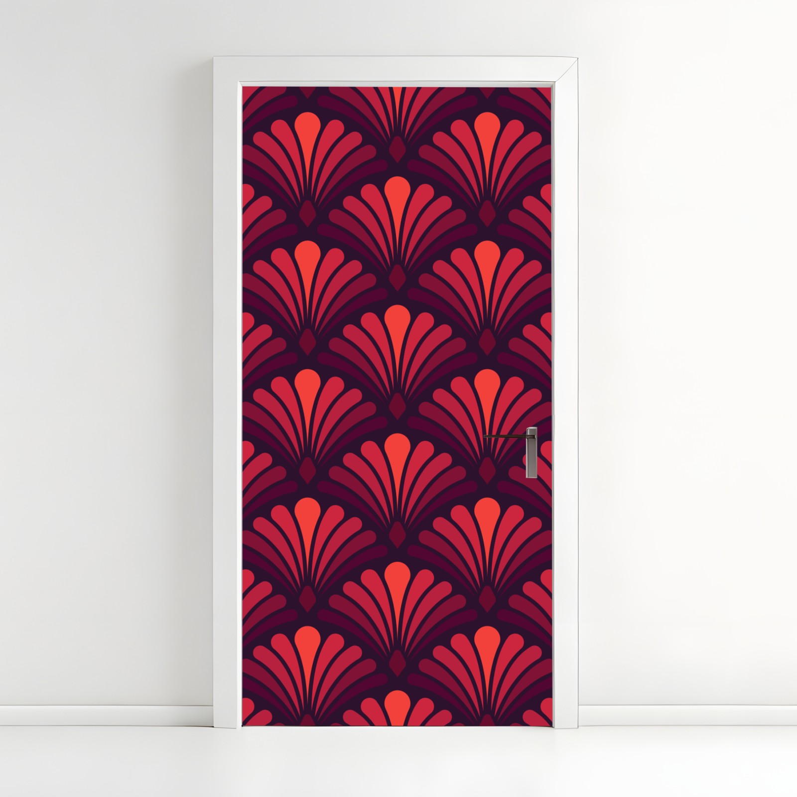 Türaufkleber geometrisches art-déco fächermuster in warmen rot- und violetttönen