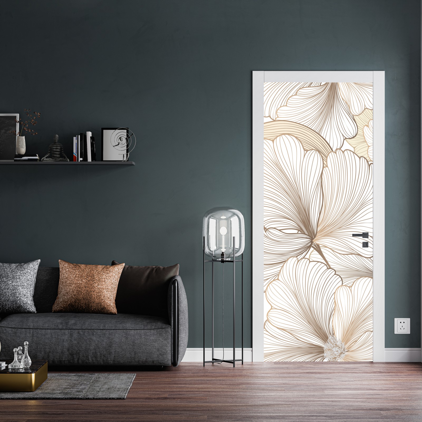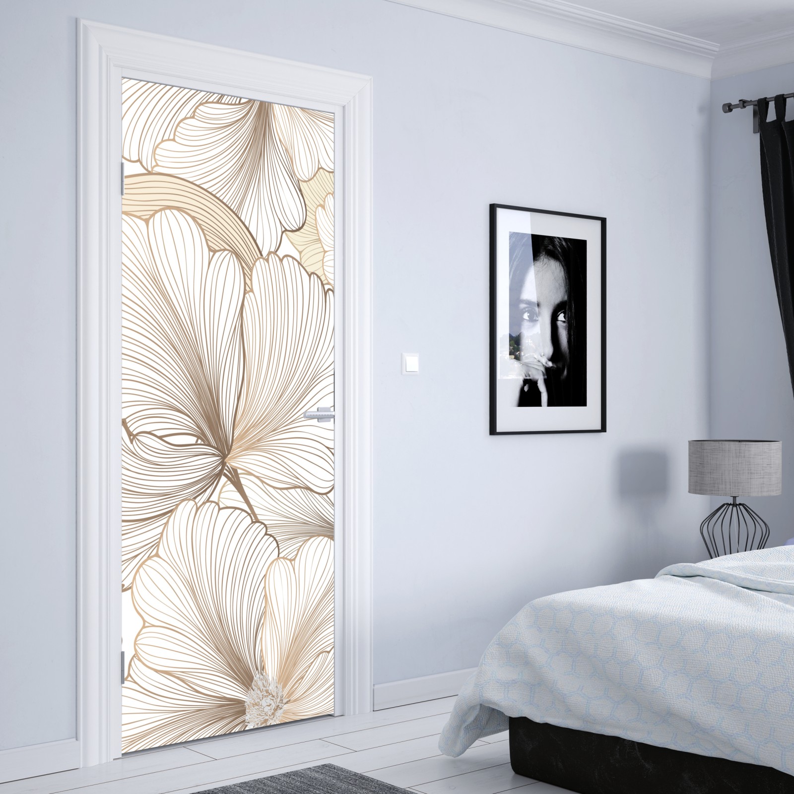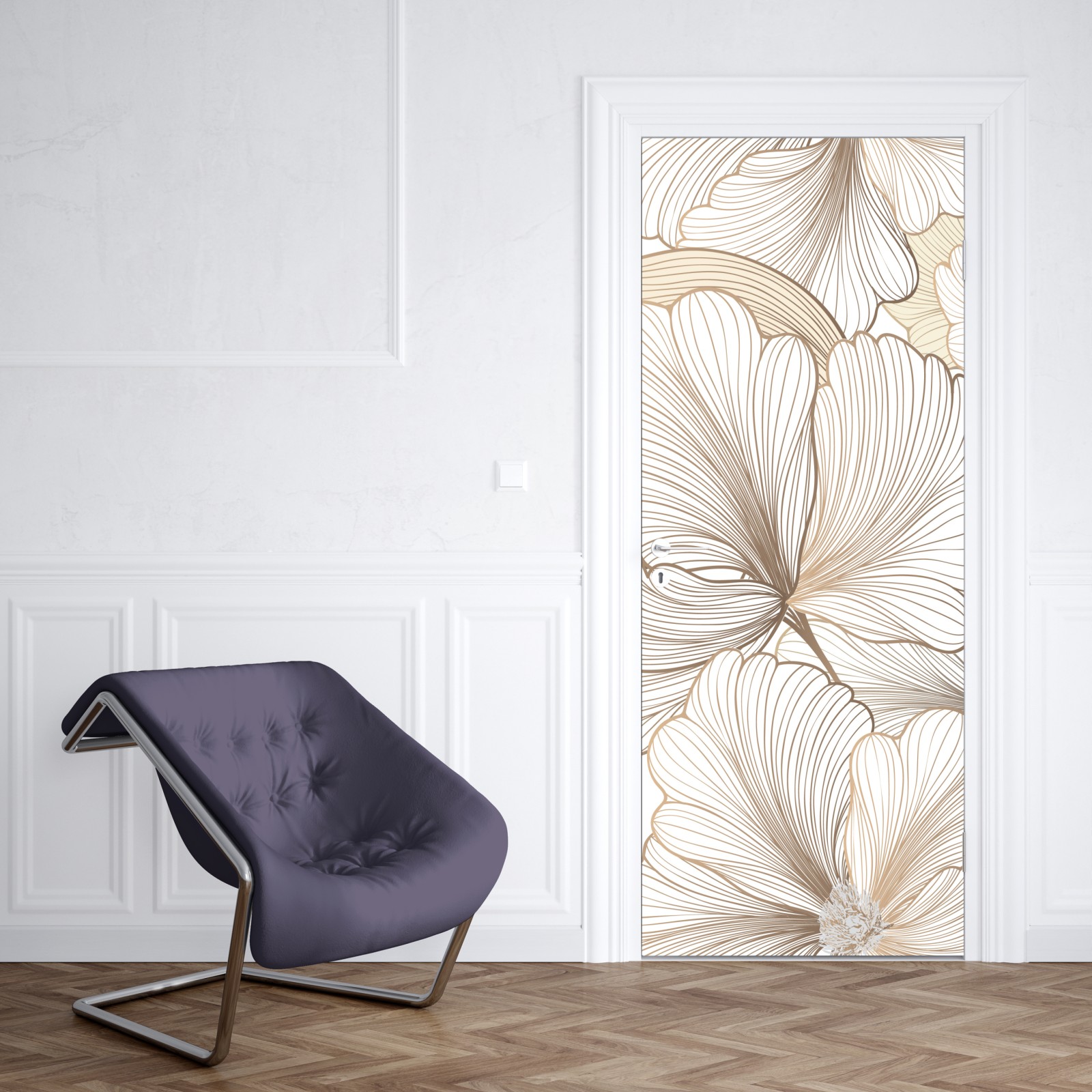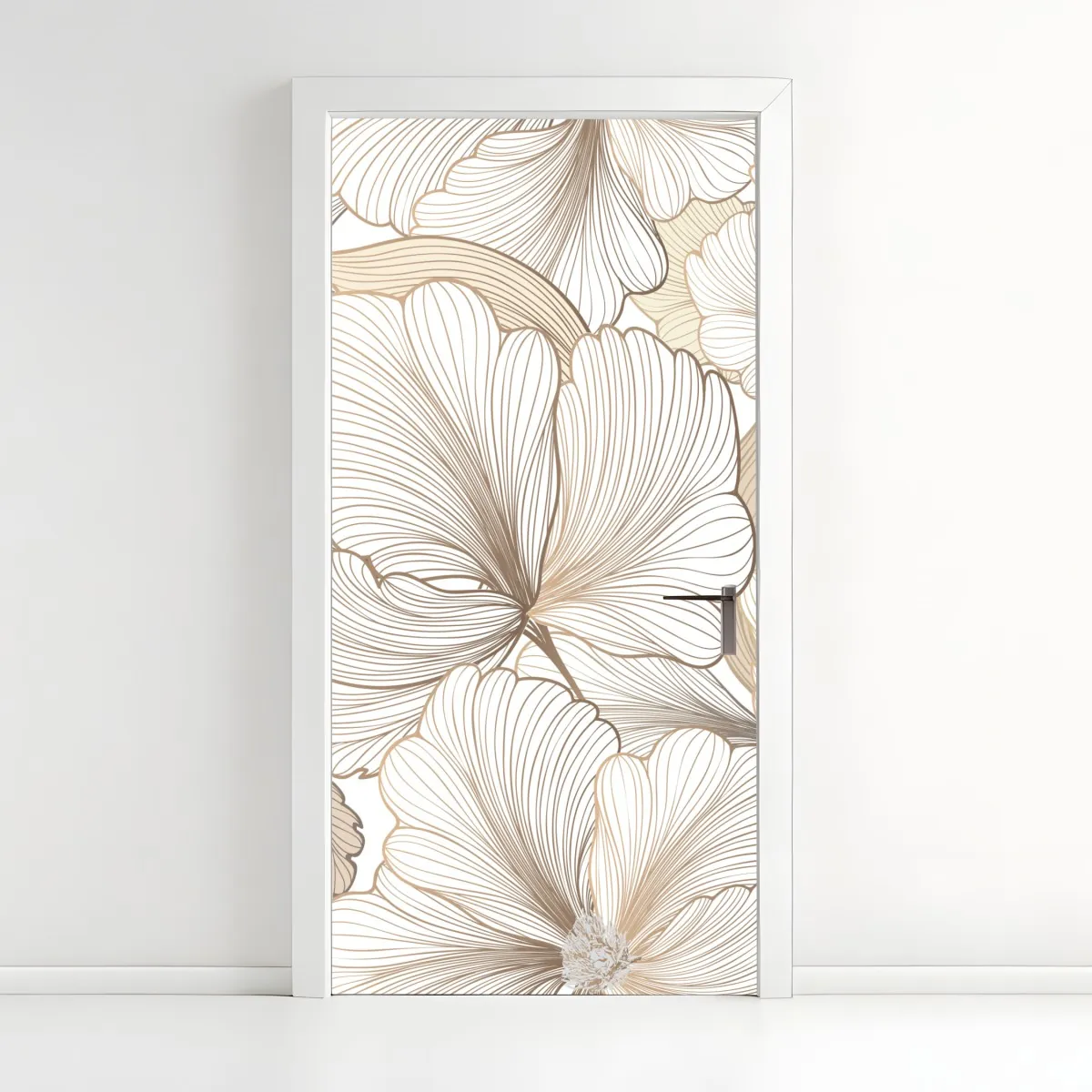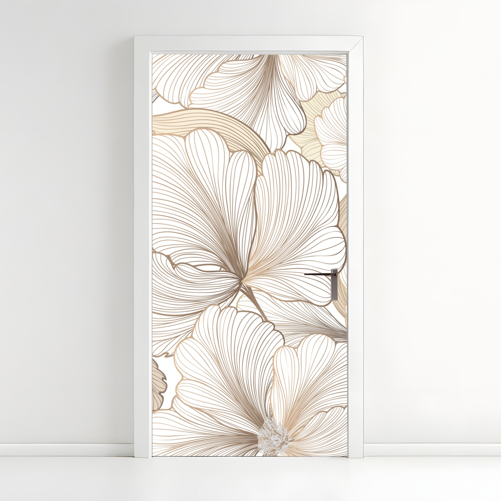 Elegante handgezeichnete beige Blumen schaffen ein ruhiges, modernes Muster, ideal für Schlafzimmer und Wohnzimmer.