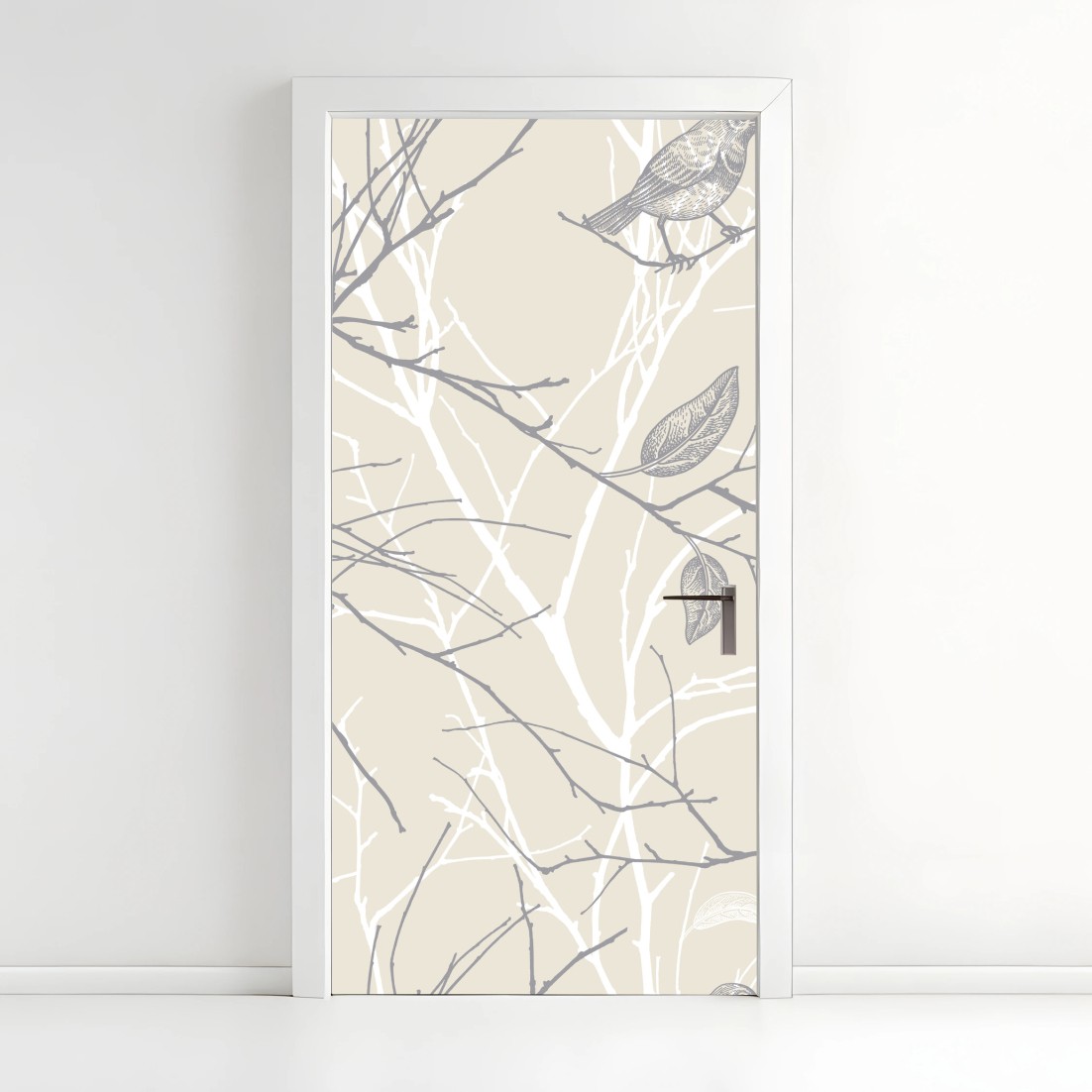 Türaufkleber Zartes beiges muster mit vögeln und ästen