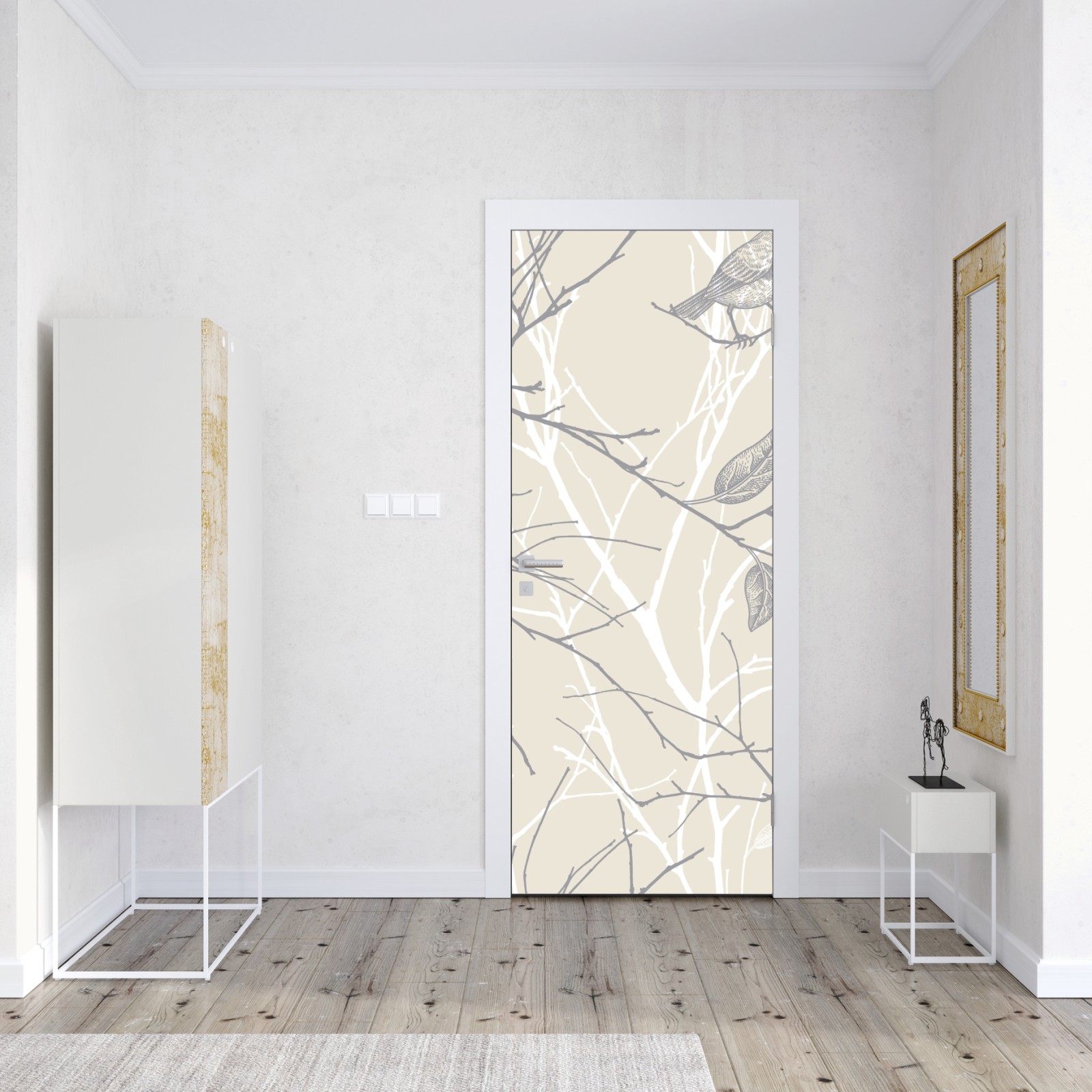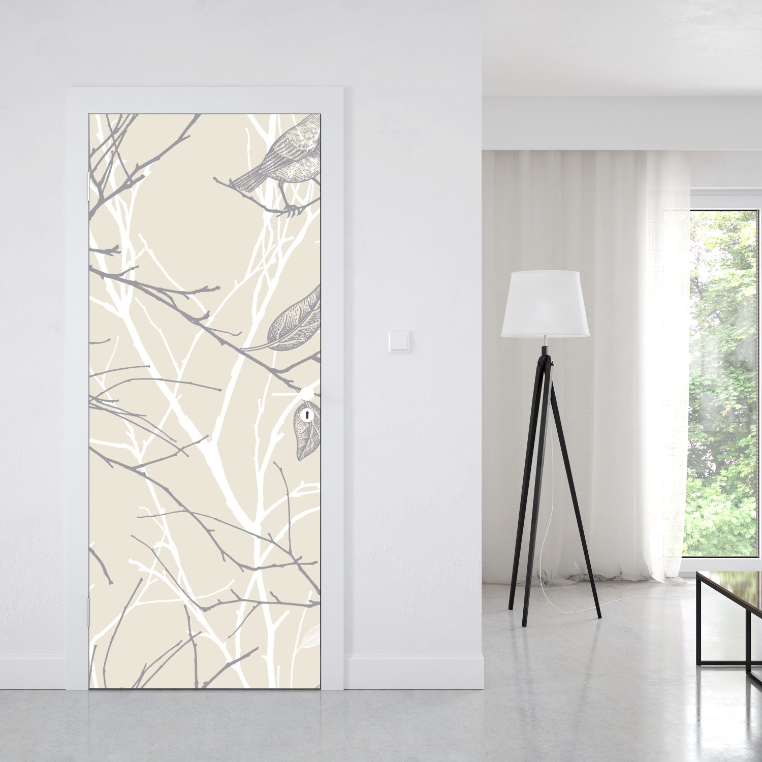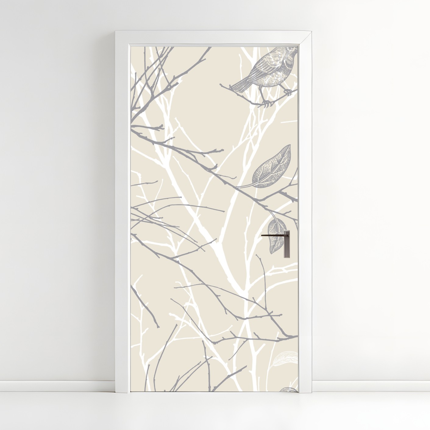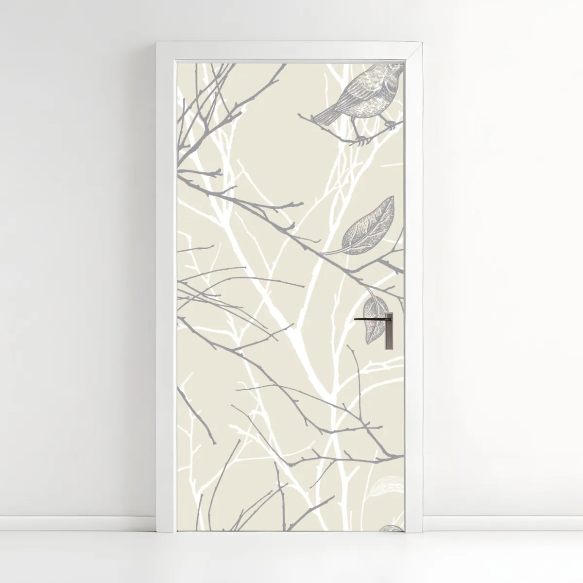 Türaufkleber zartes beiges muster mit vögeln und ästen
