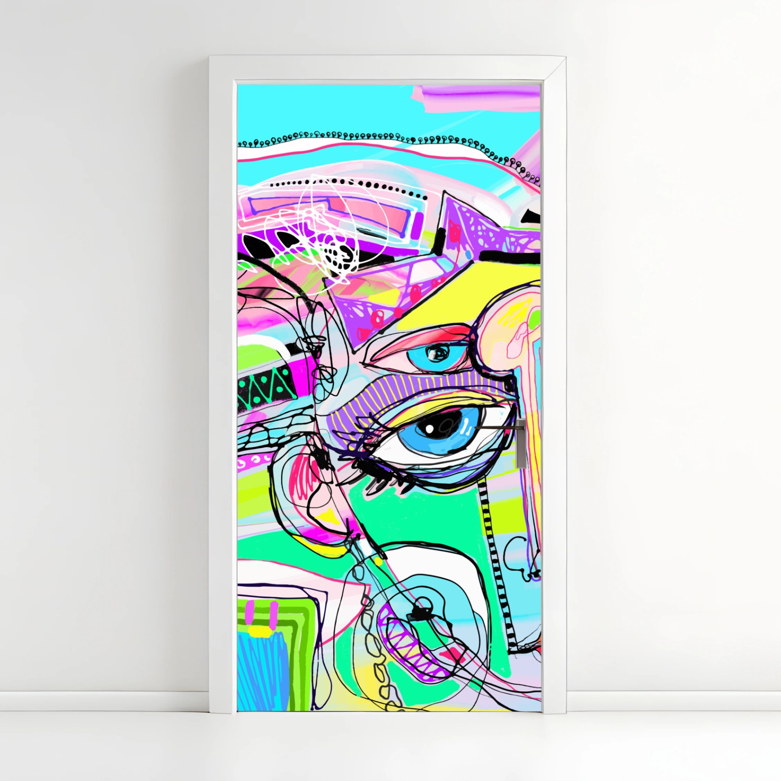 Türaufkleber Buntes abstraktes gesichtsporträt
