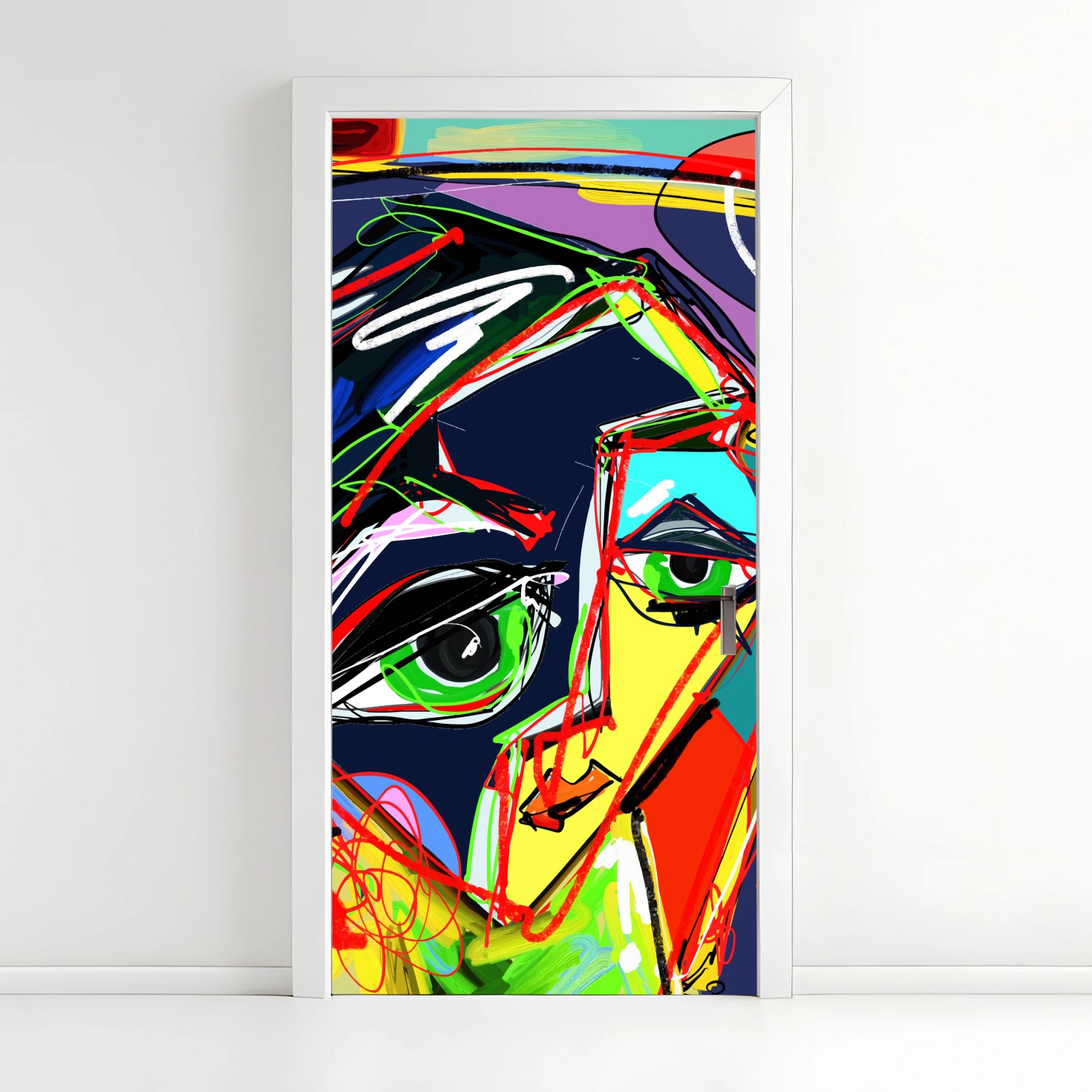 Türaufkleber Farbenfrohes abstraktes gesichtsporträt