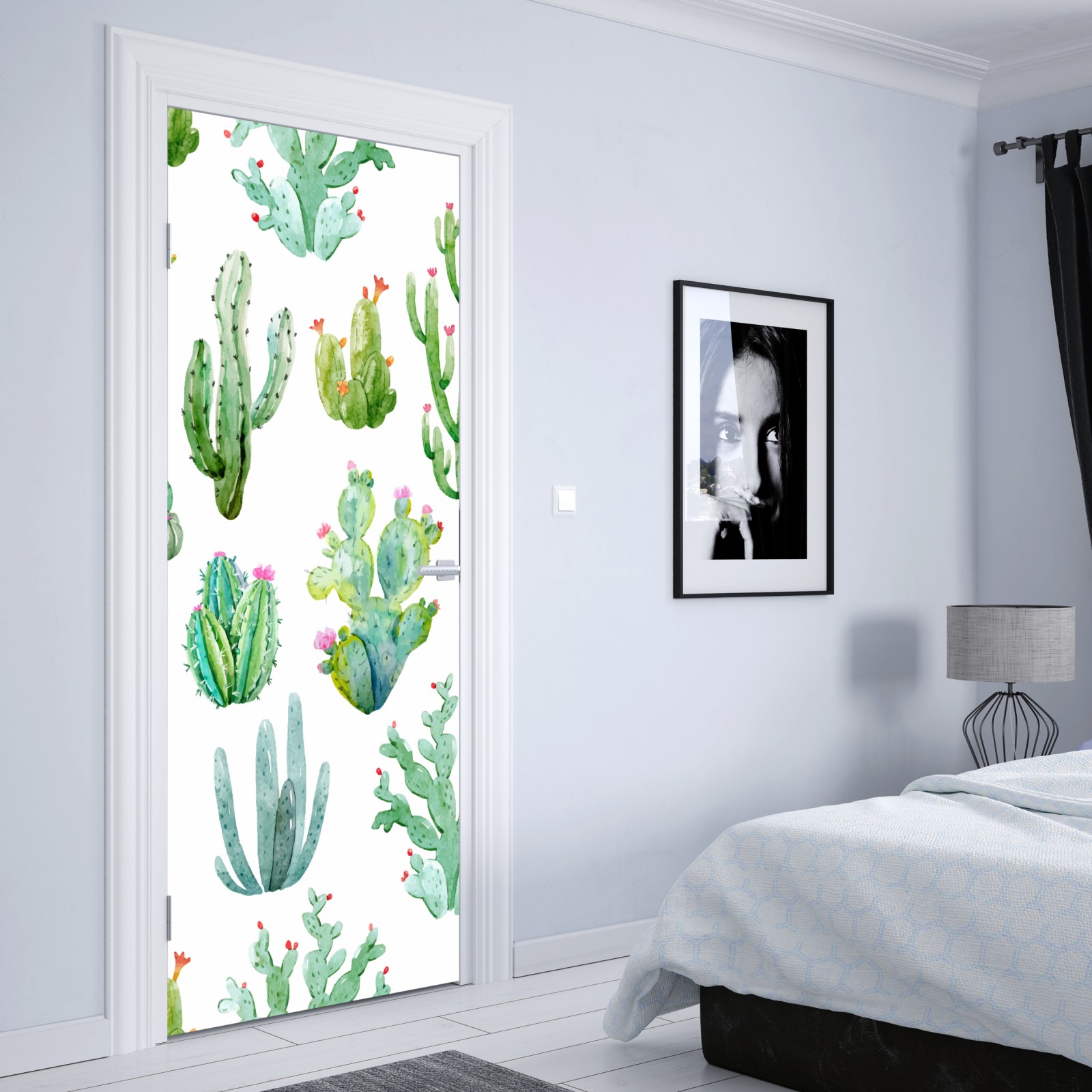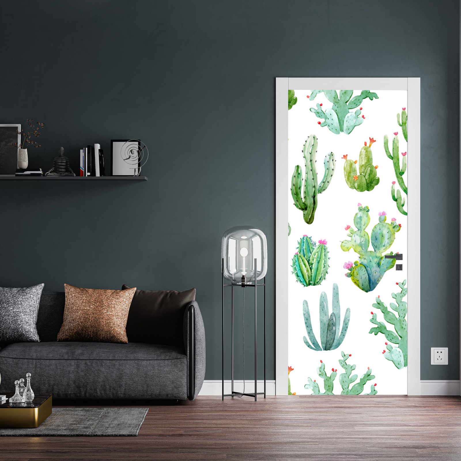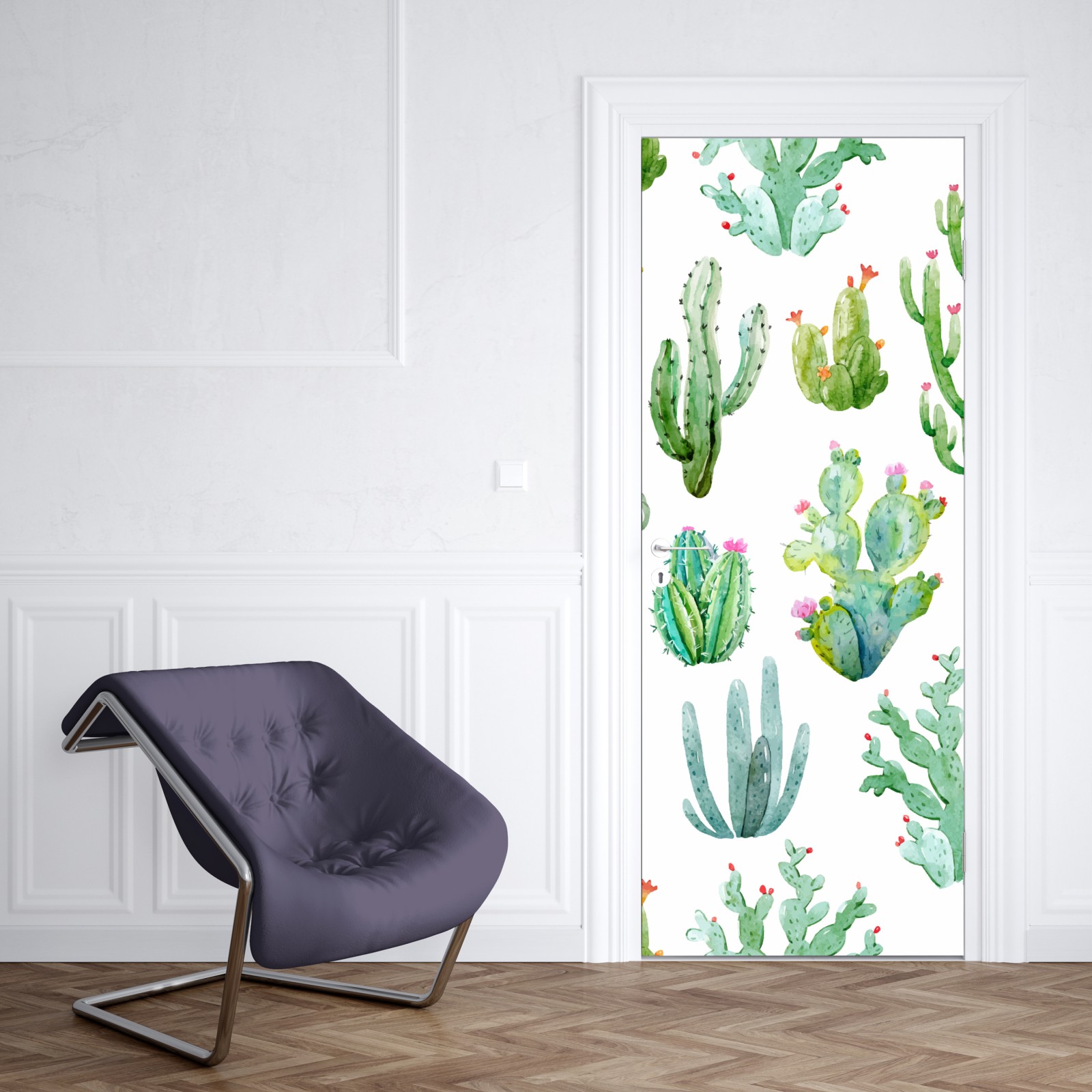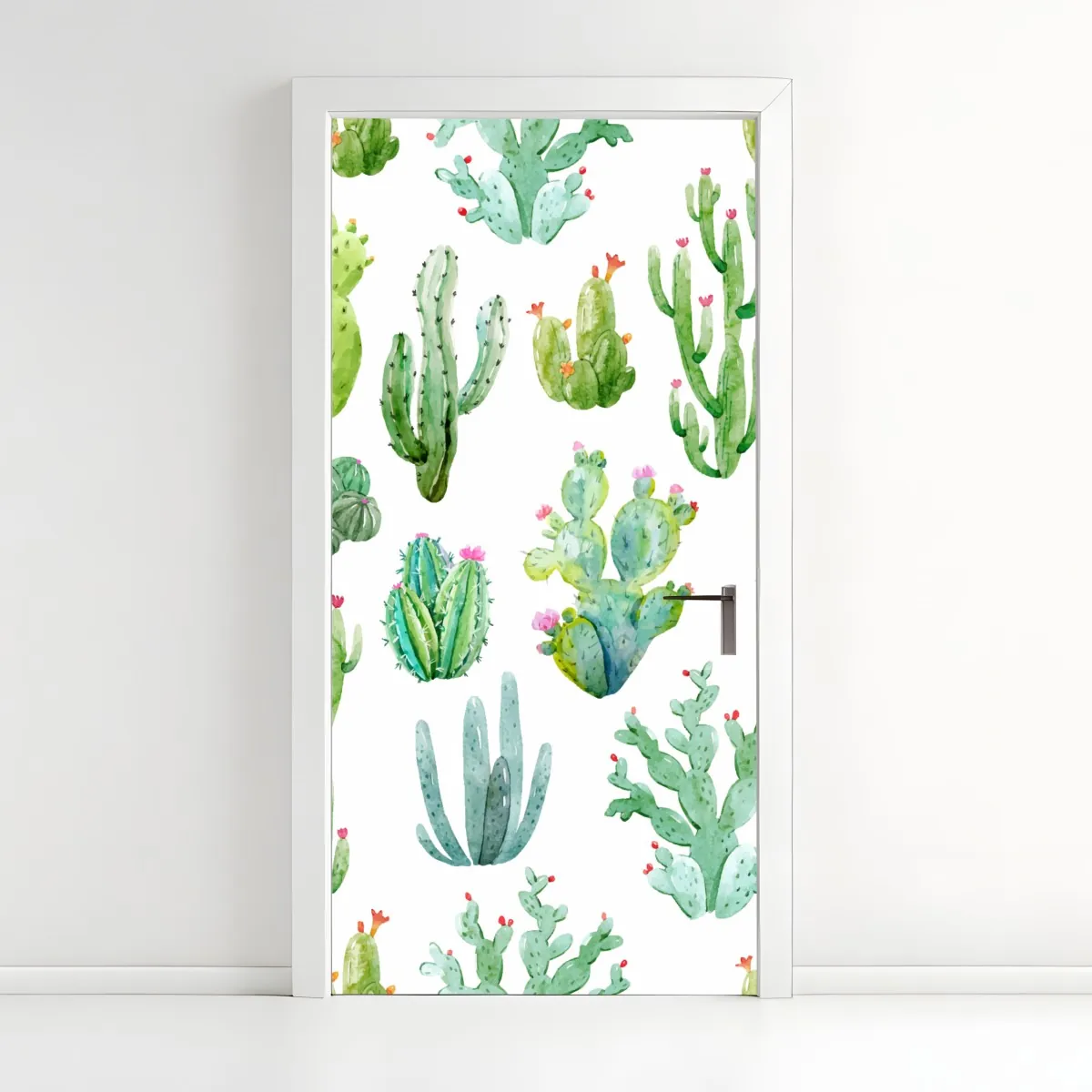 Feines Aquarell-Kaktusmuster bringt botanischen Charme und eine beruhigende Grünpalette an Ihre Wände, ideal für Kinderzimmer, Schlafzimmer oder Wohnräume.