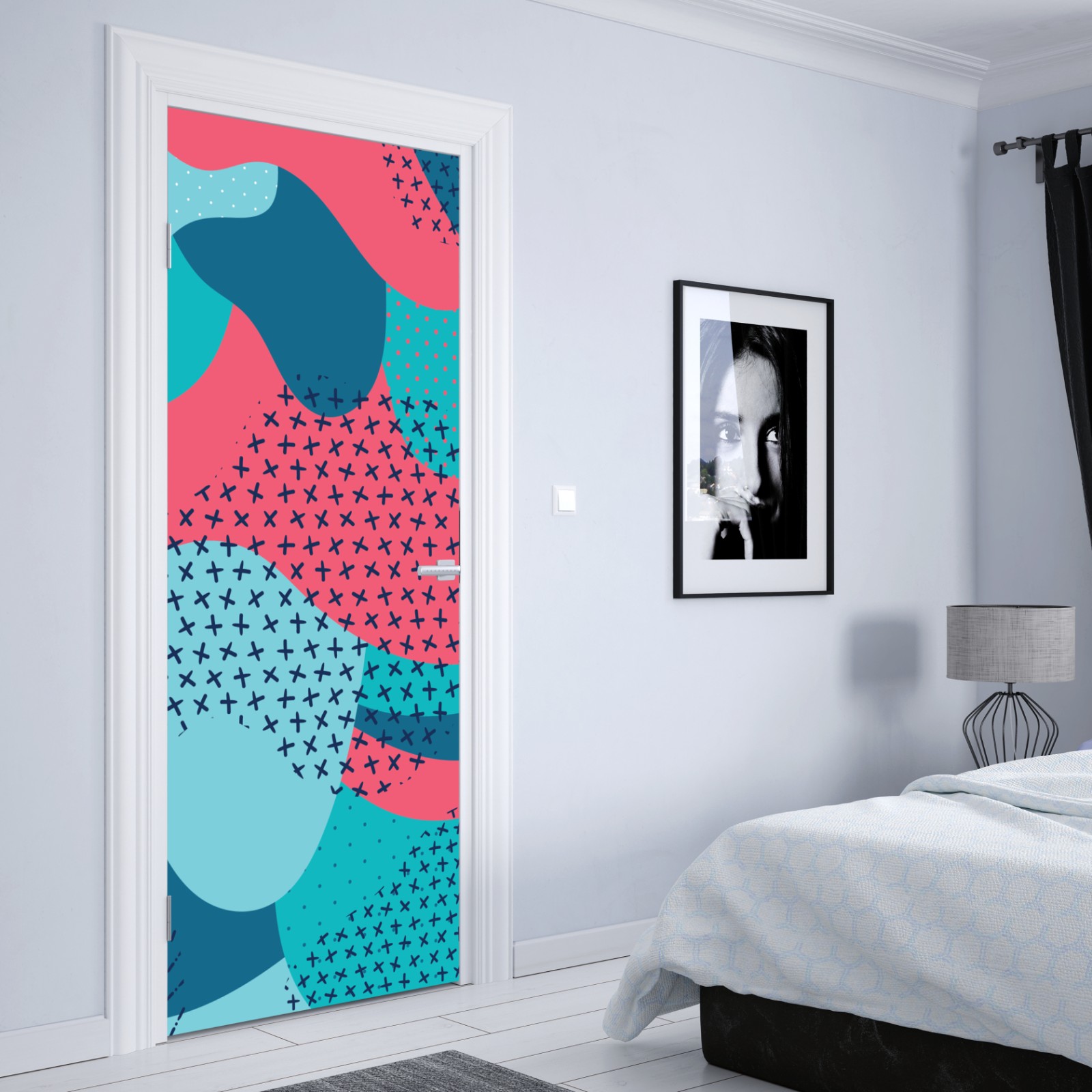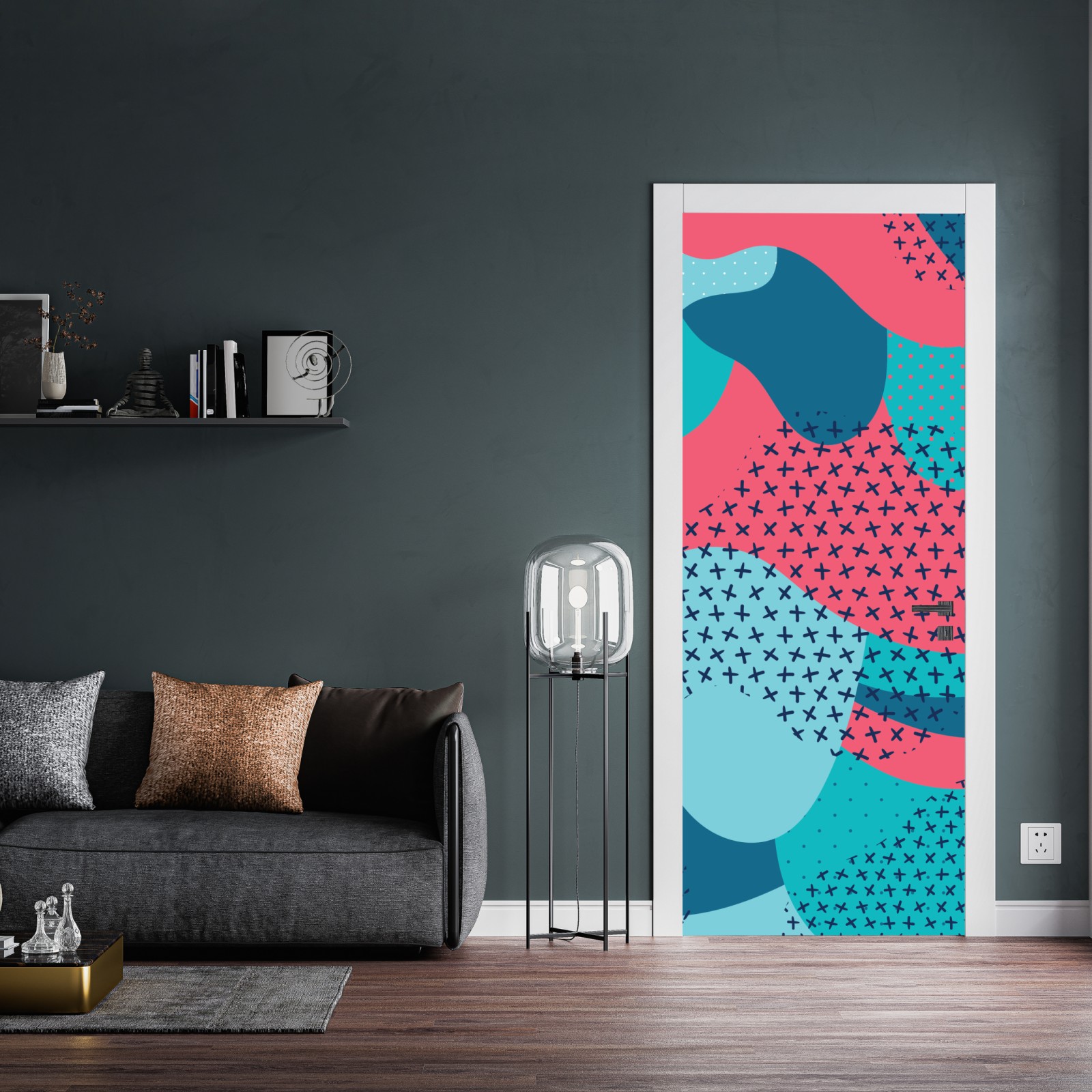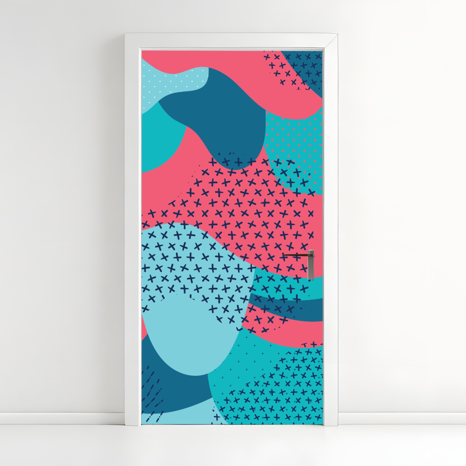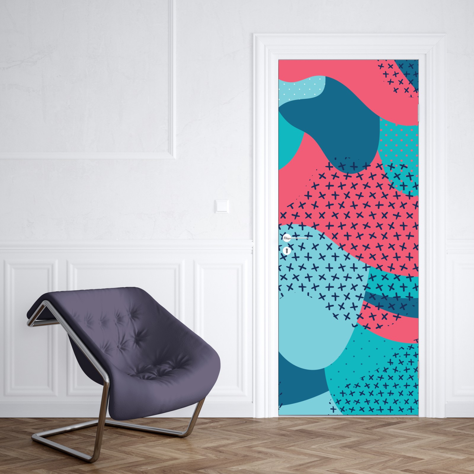 Türaufkleber verspieltes türkisfarbenes abstraktes muster