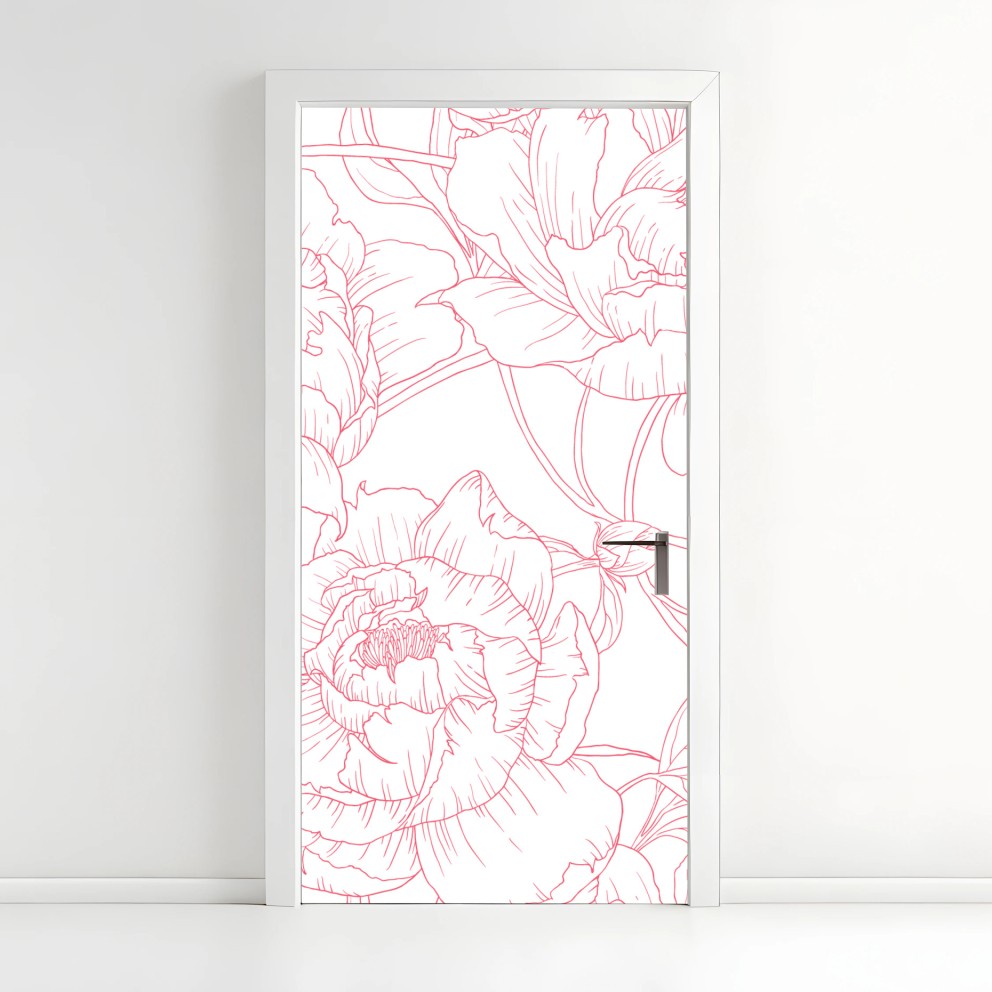 Türaufkleber Zartes rosa paeonien-line-art-muster