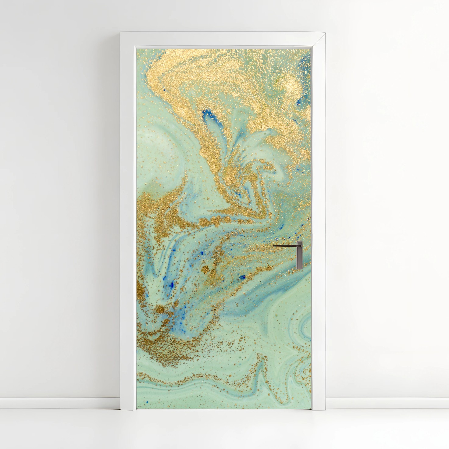 Türaufkleber Türkiser marmor mit goldenen akzenten