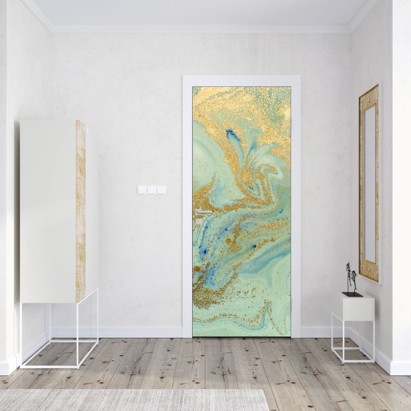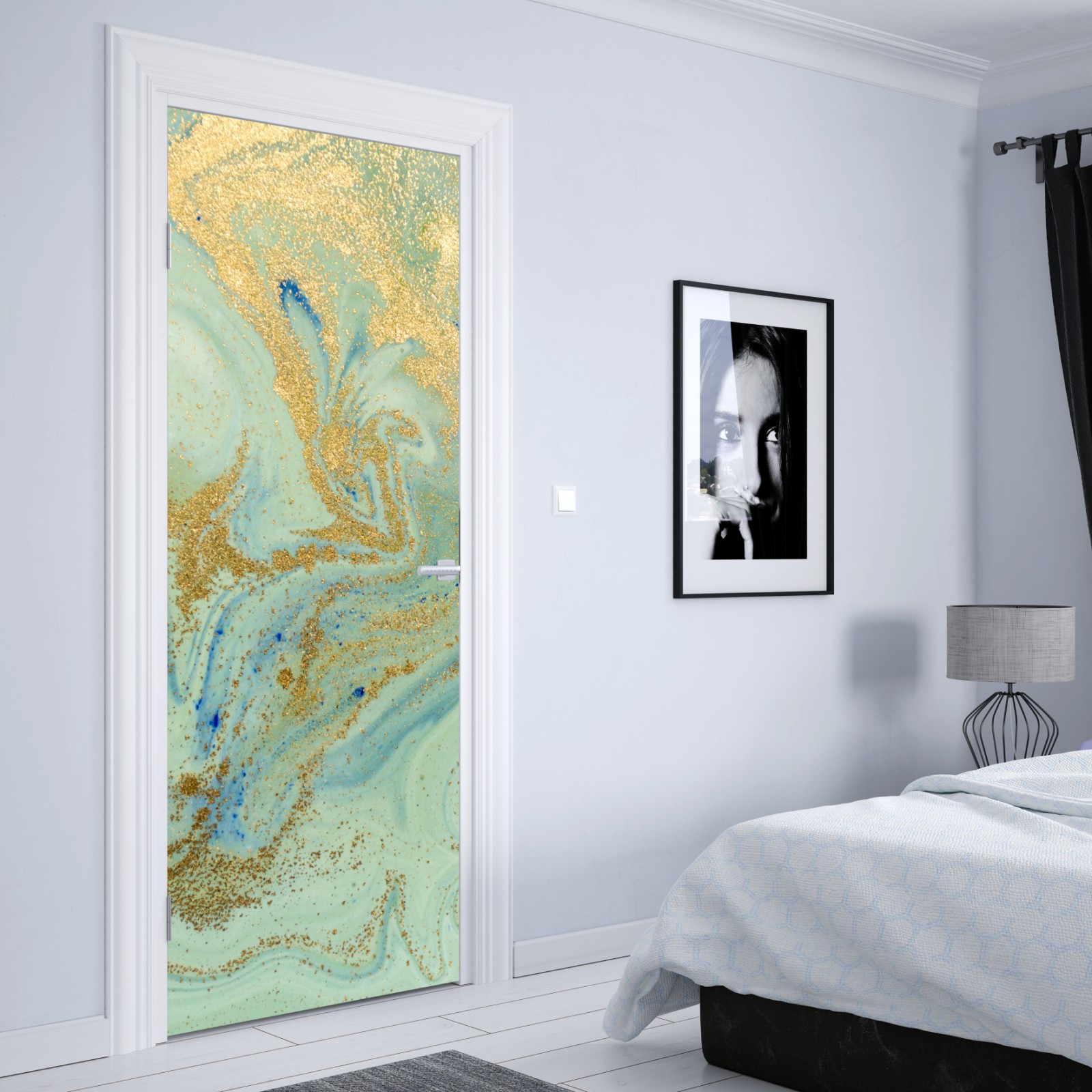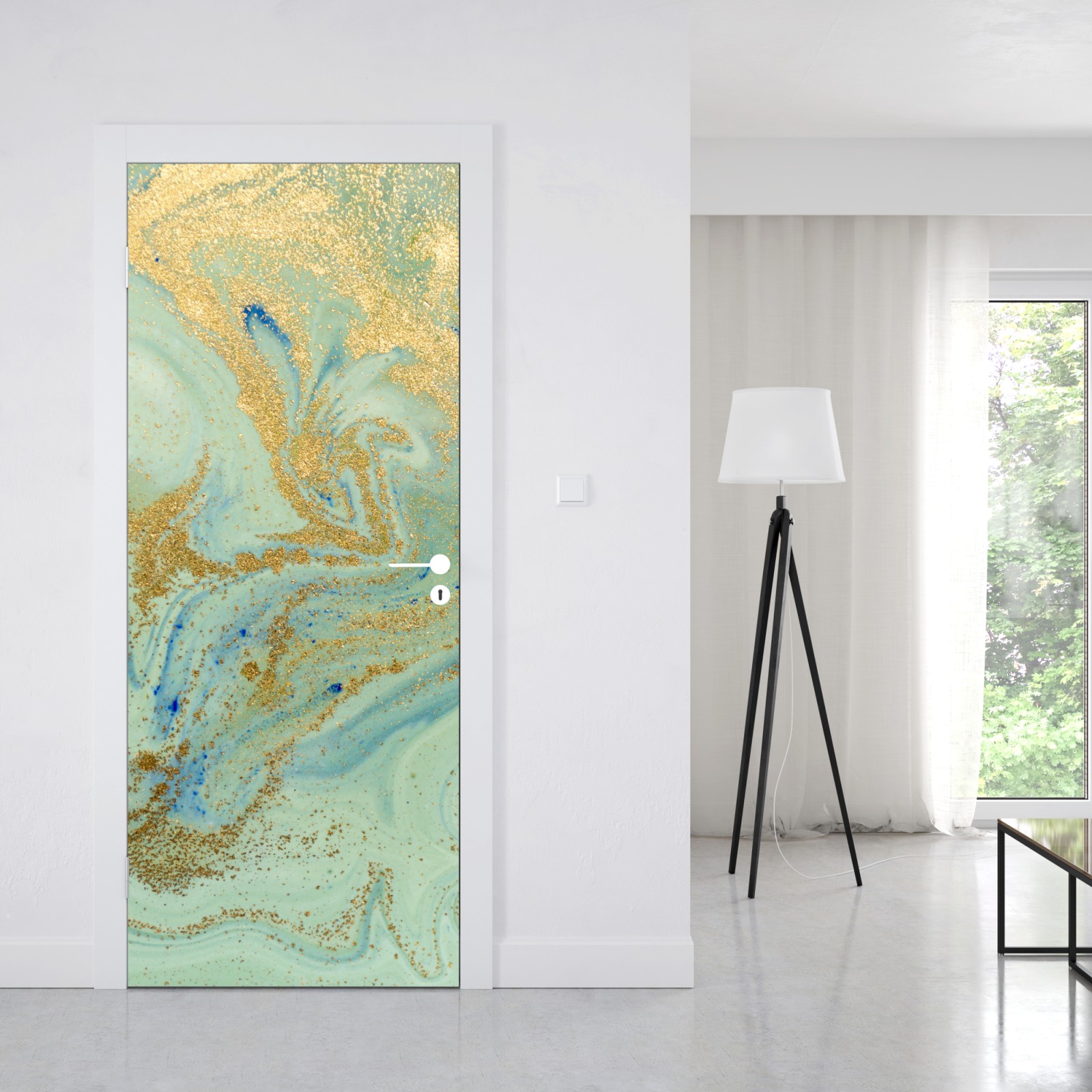 Türaufkleber türkiser marmor mit goldenen akzenten