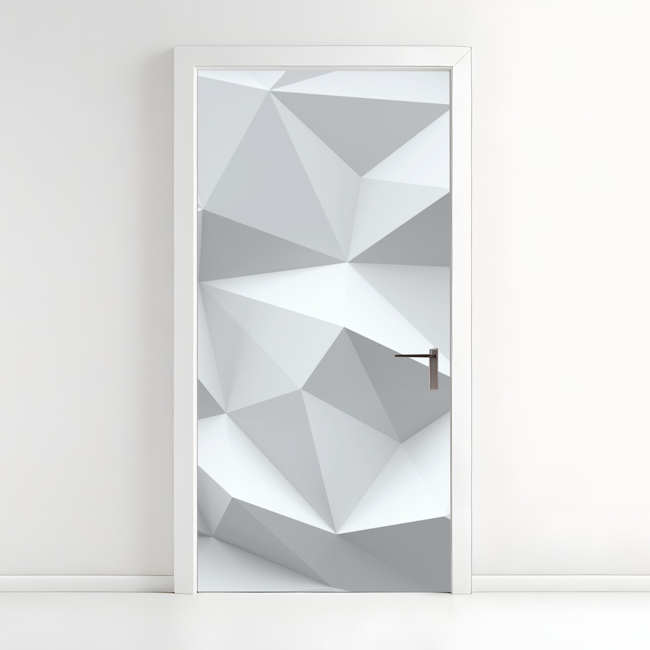 Türaufkleber weißes dreidimensionales low-poly geometrisches muster