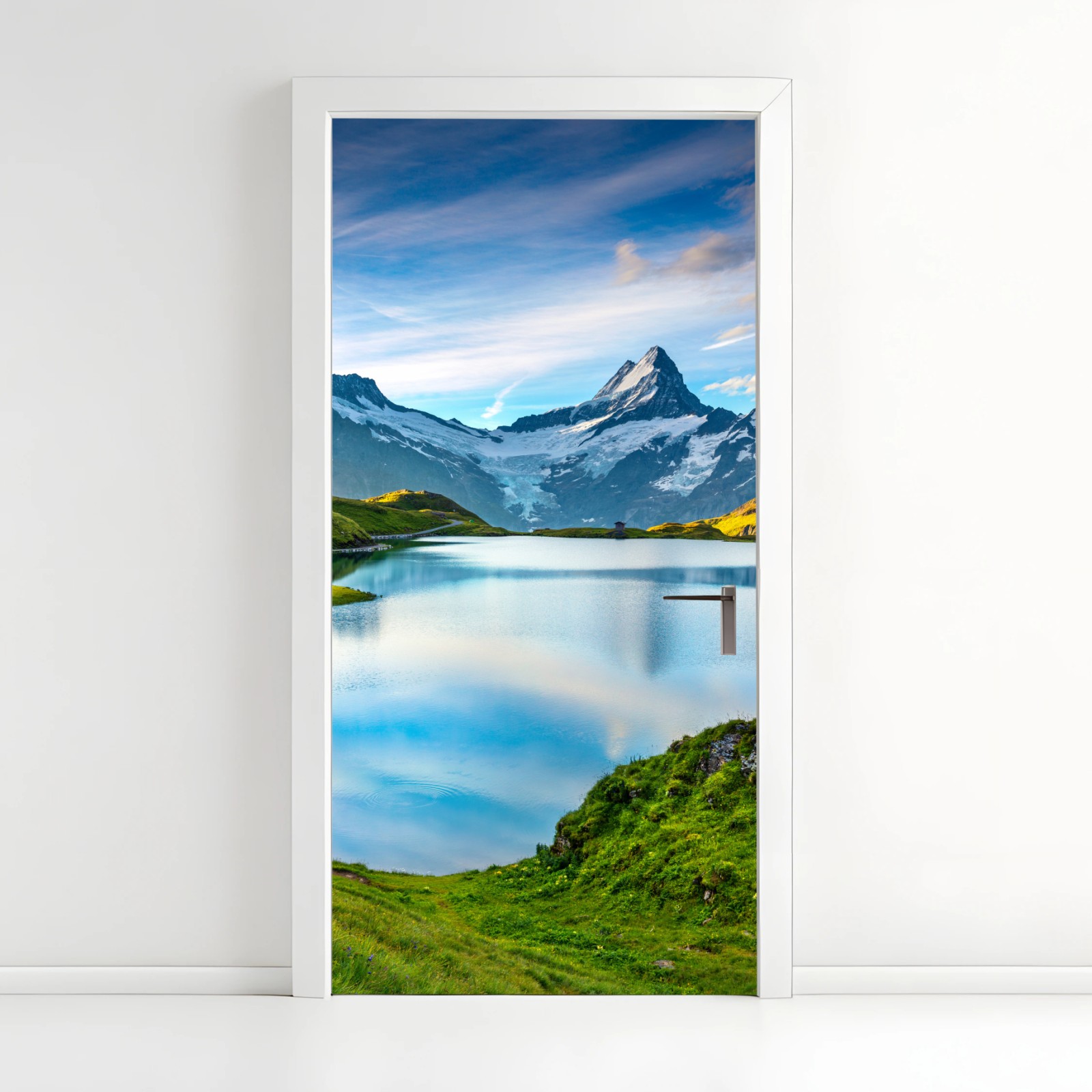 Türaufkleber Ruhiger alpensee vor dem Wetterhorn, Schweiz