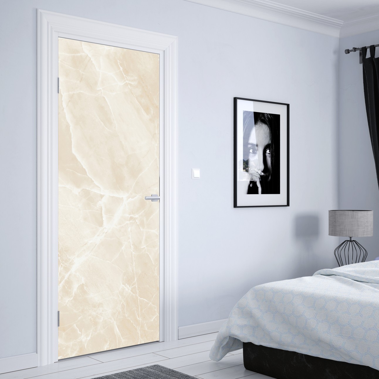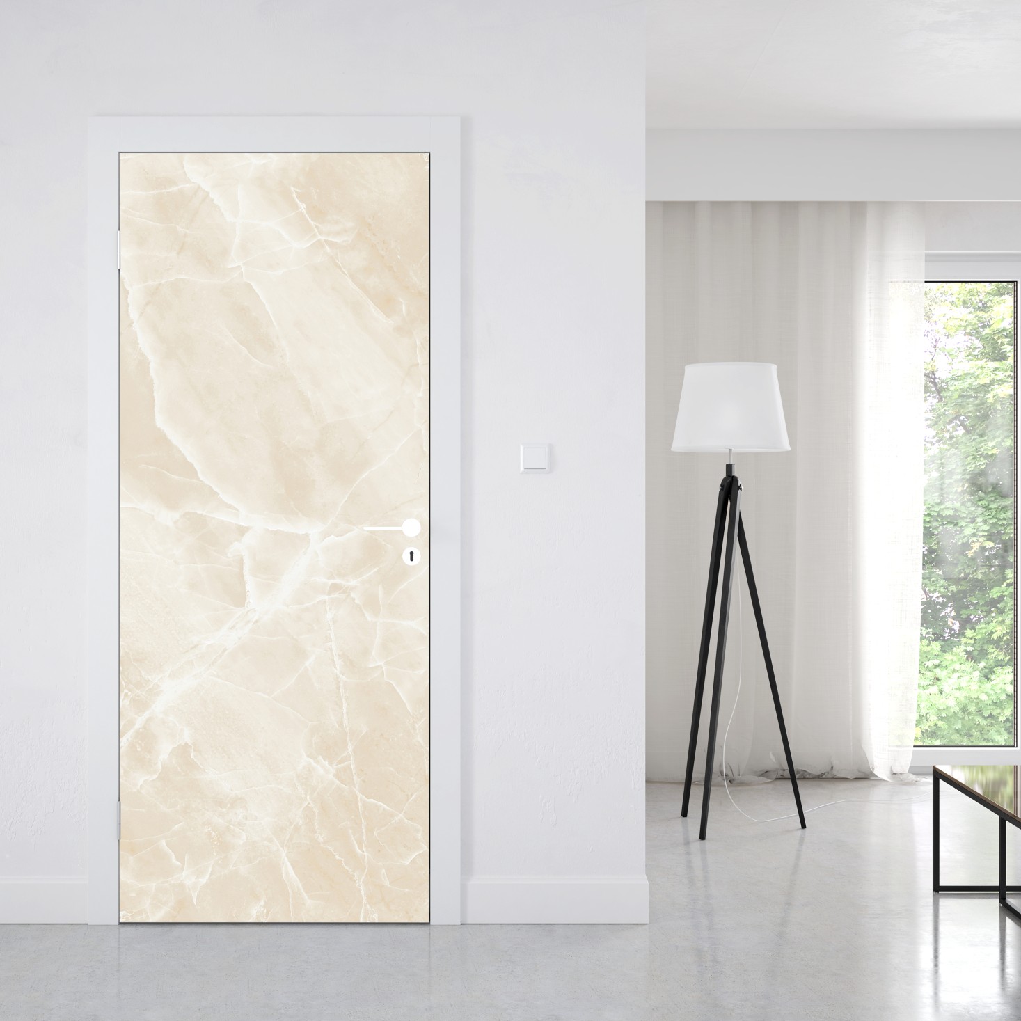 Türaufkleber beige marmorstruktur mit weißen adern