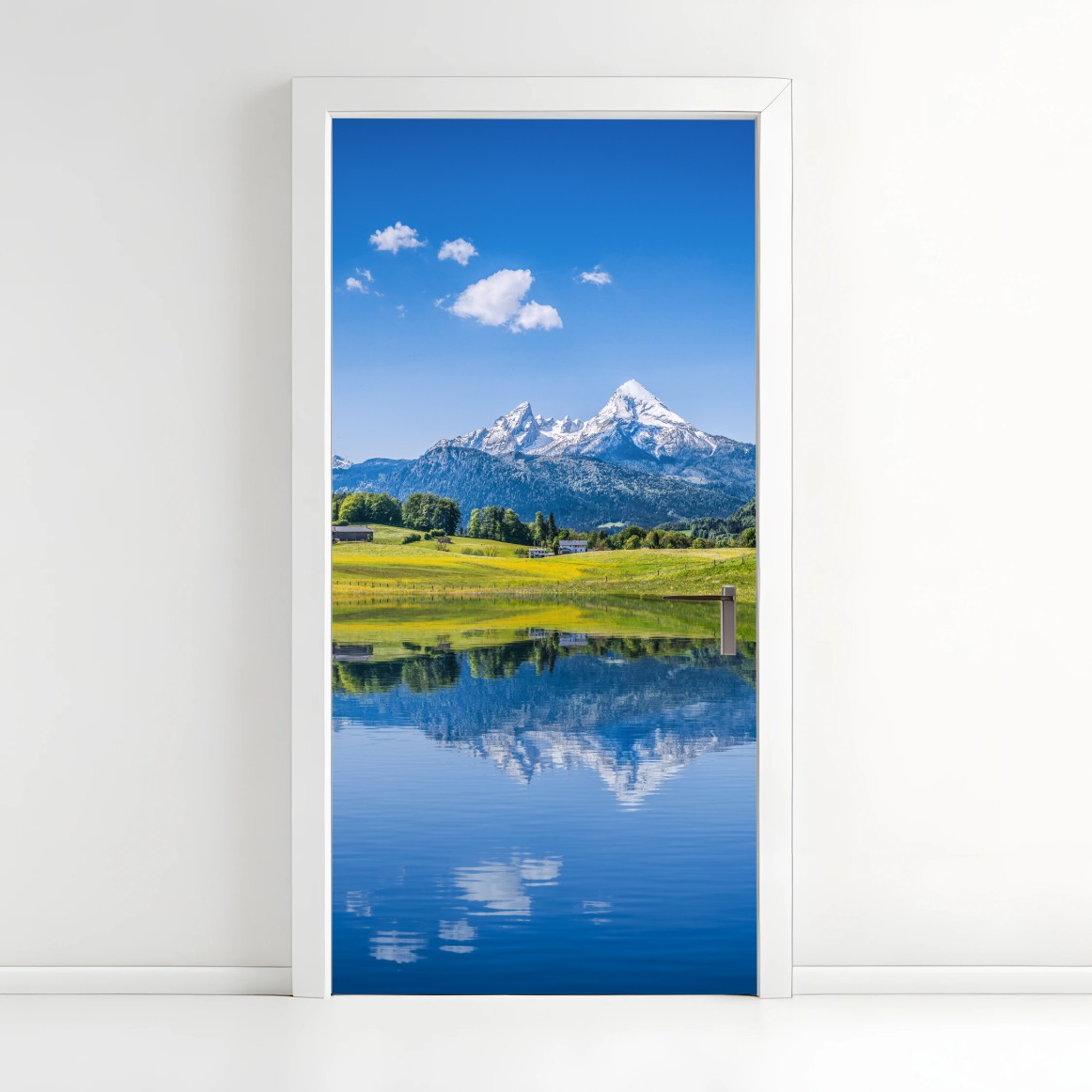 Türaufkleber Alpine spiegelung: ruhige berglandschaft