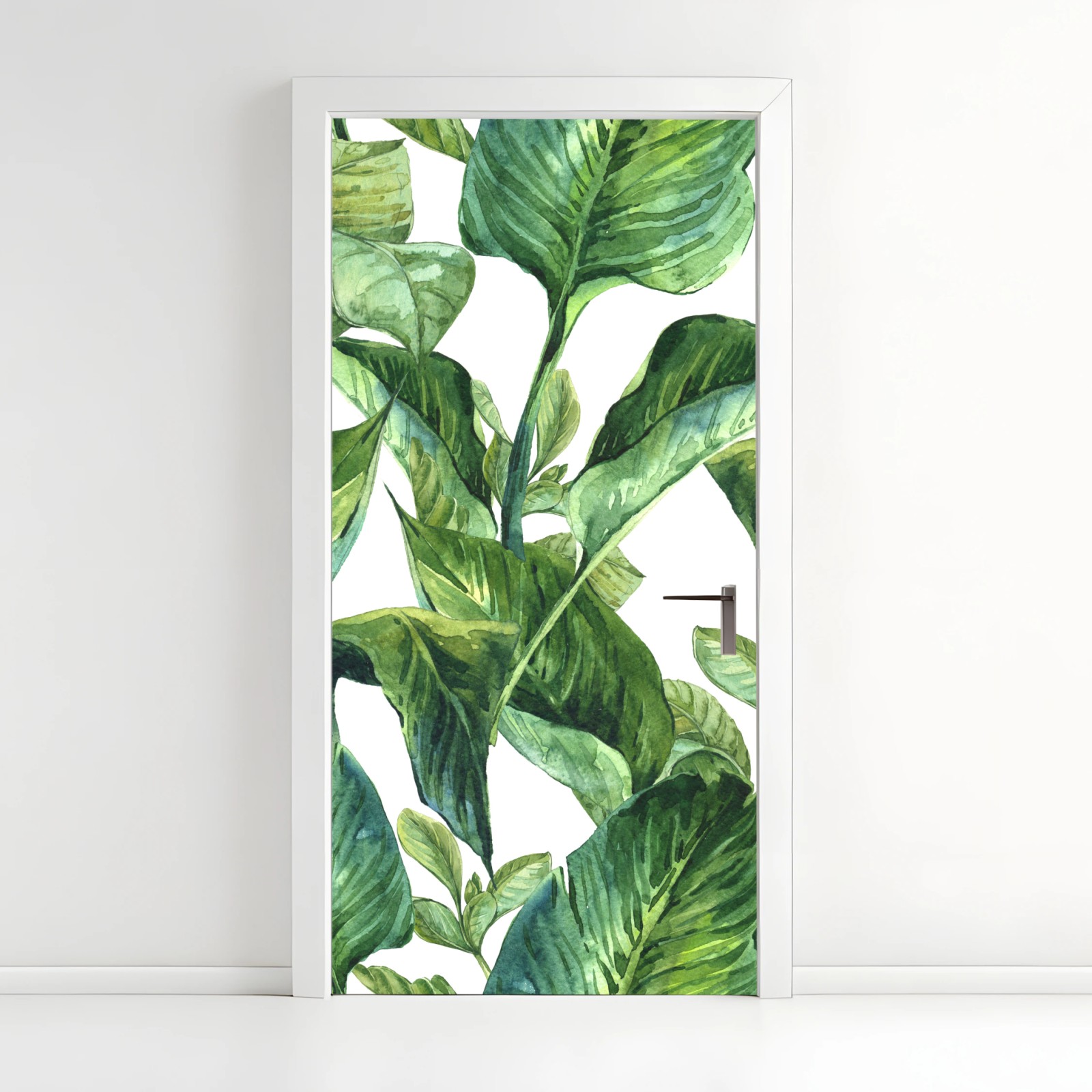 Türaufkleber Üppiges aquarellmuster tropischer blätter