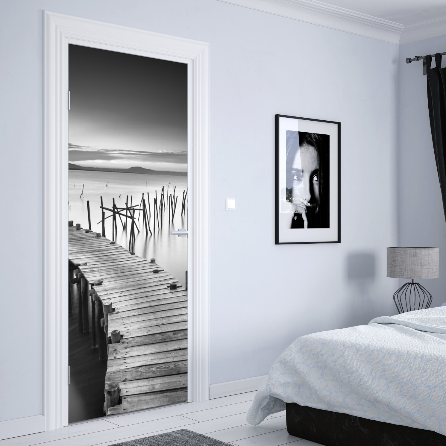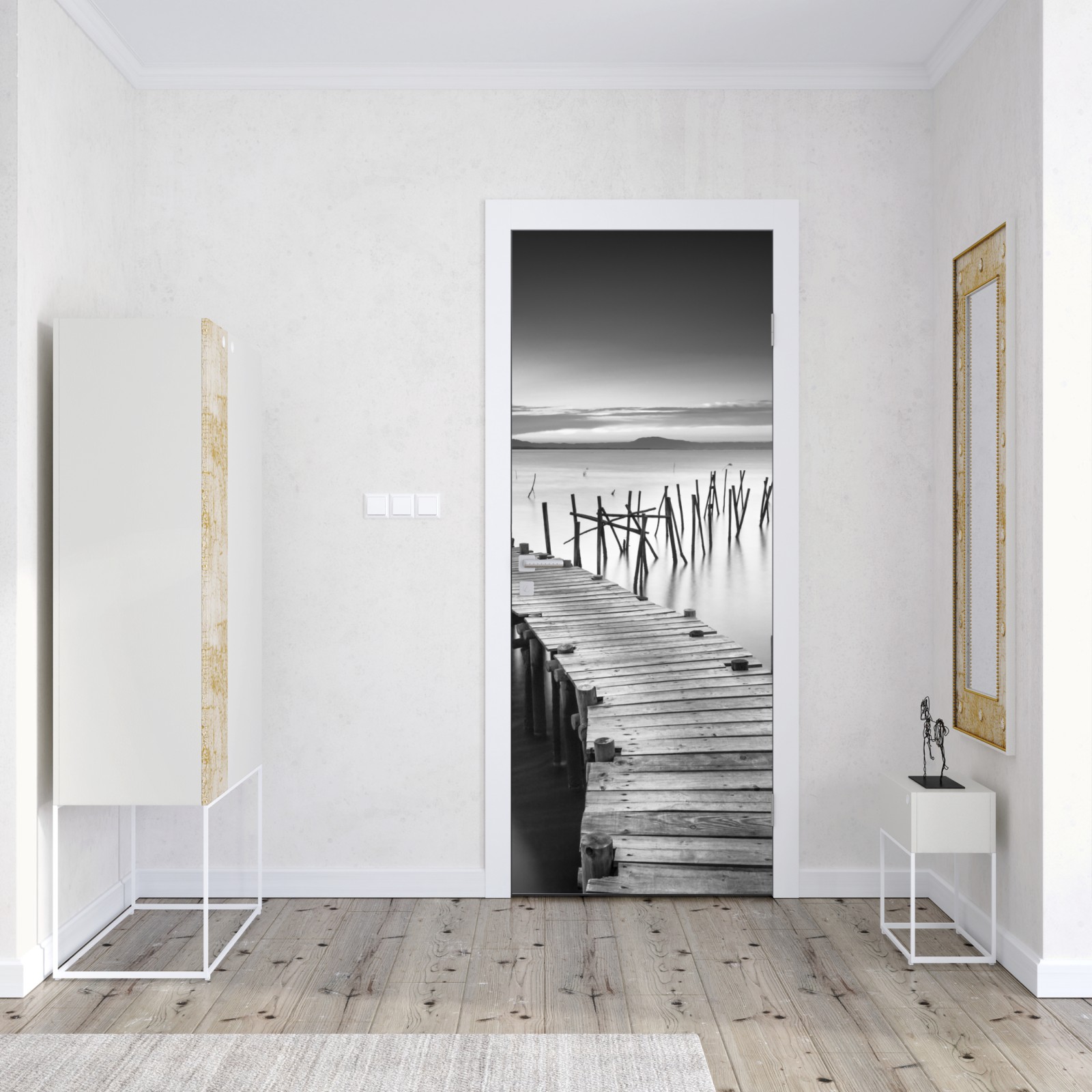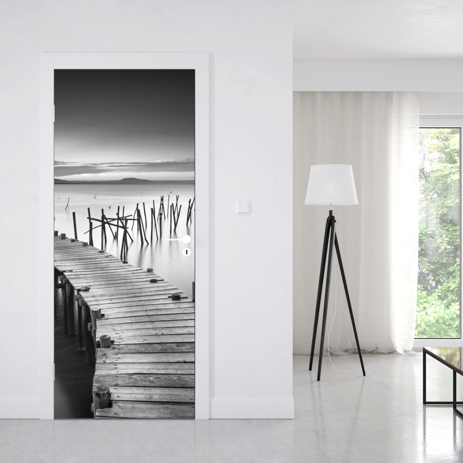 Türaufkleber ruhiger hölzerner steg bei dämmerung