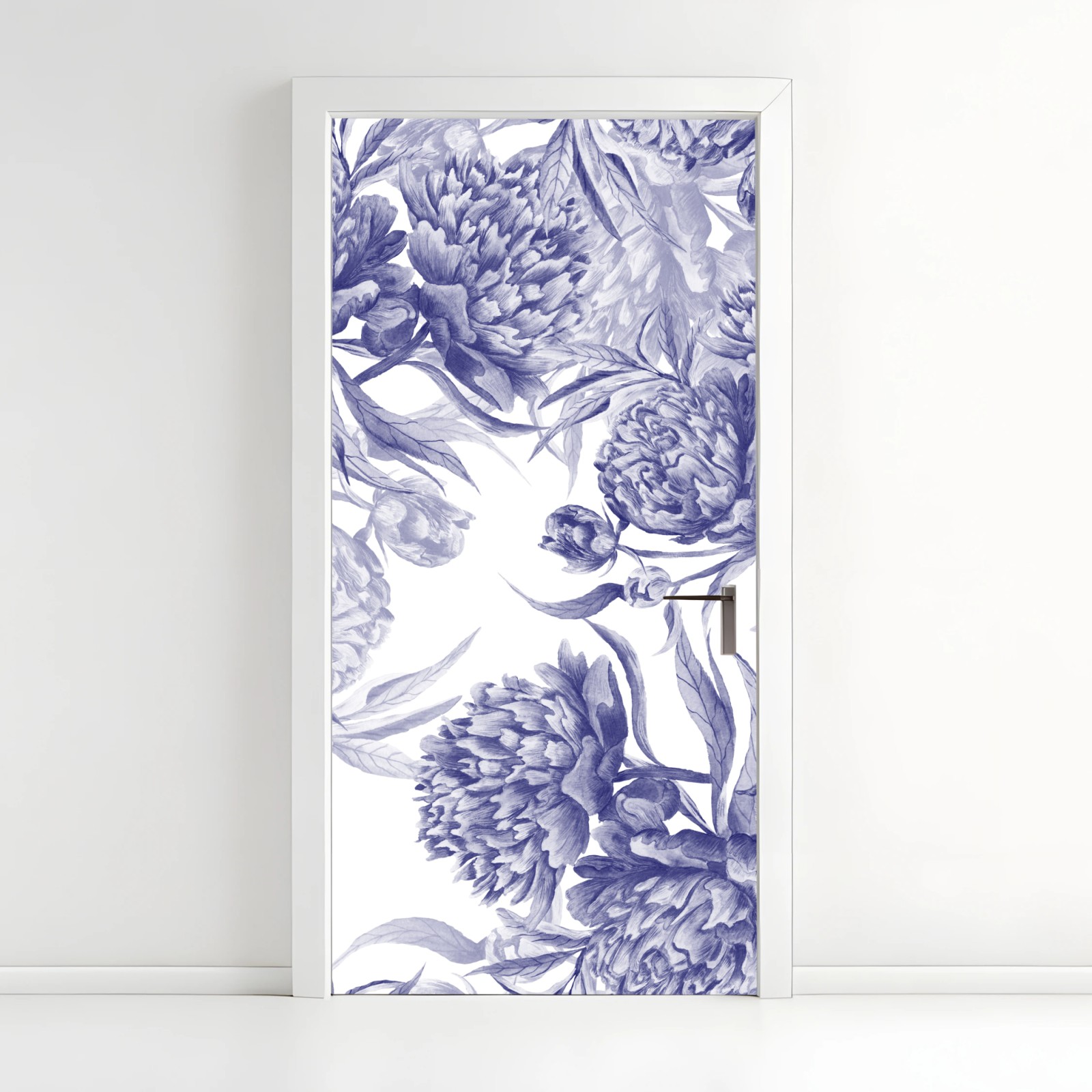 Türaufkleber Blaue pfingstrosen botanisches muster