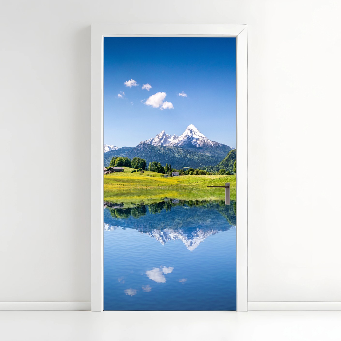 Türaufkleber Alpenpanorama mit spiegelung im see