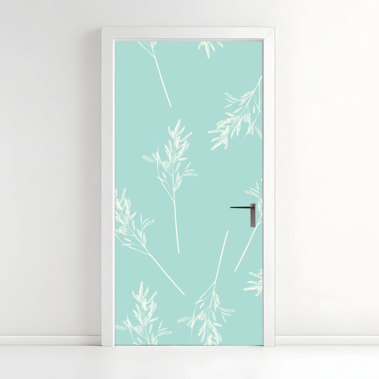 Türaufkleber Zartes türkisfarbenes botanisches muster