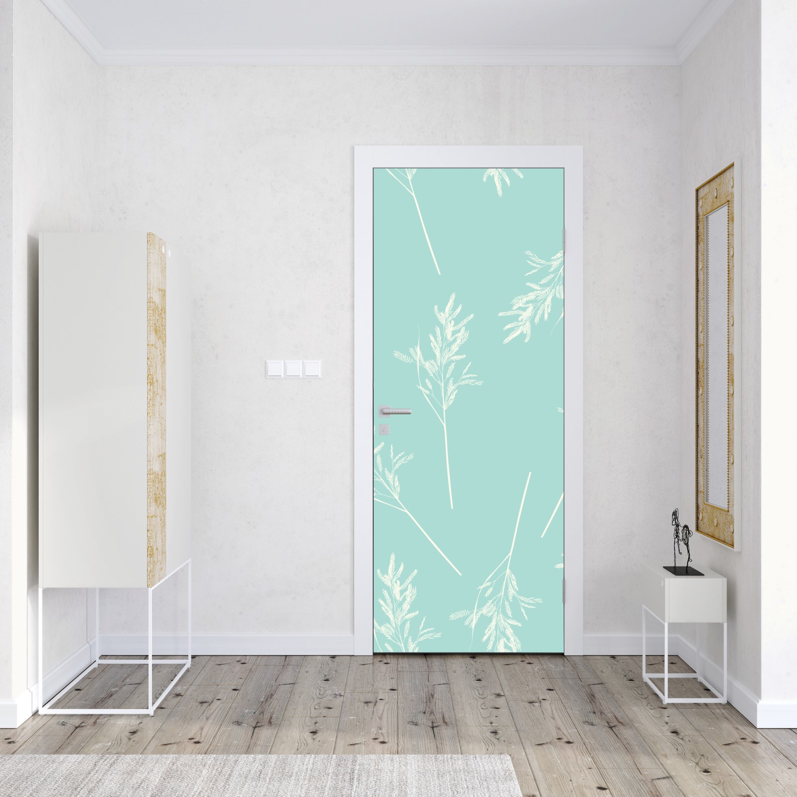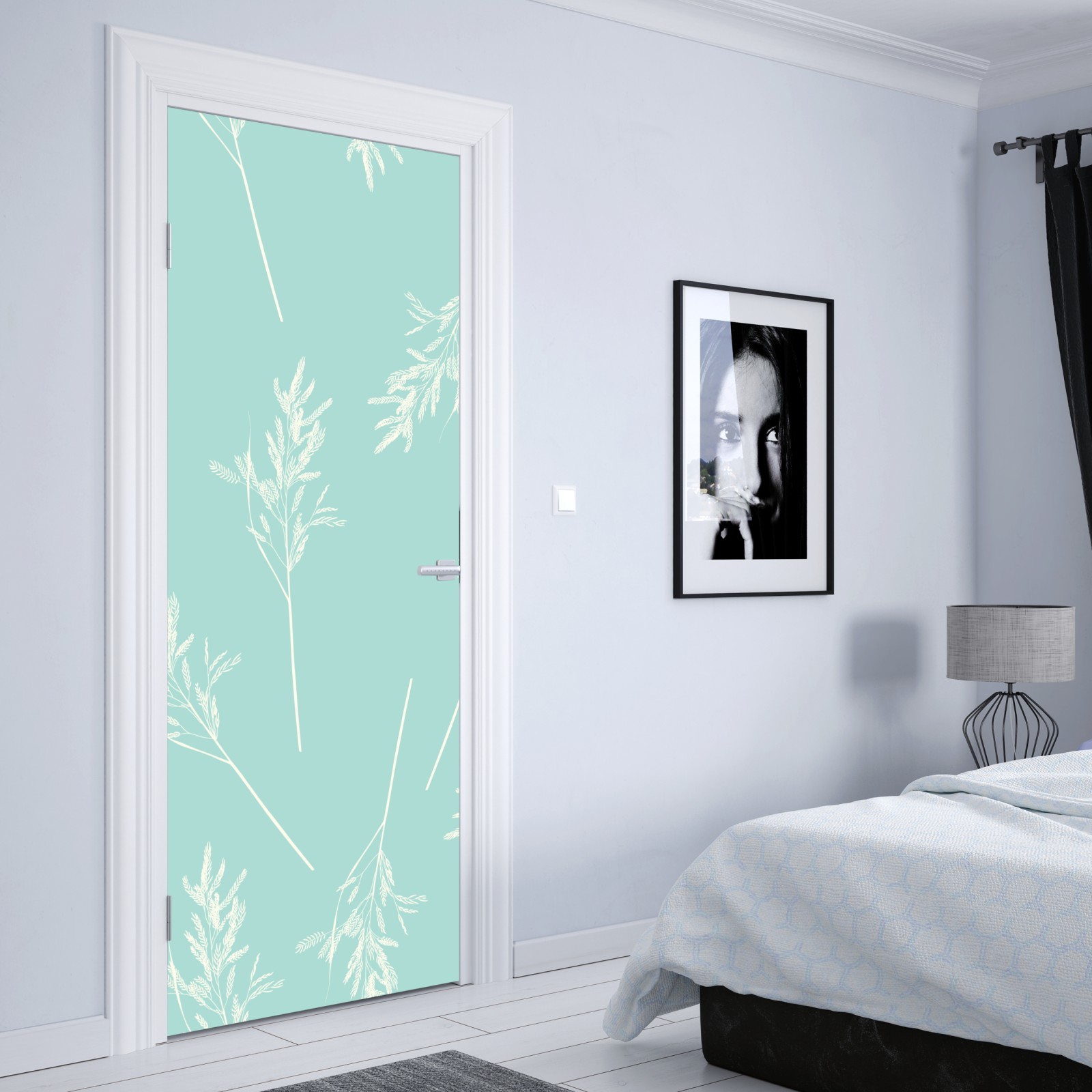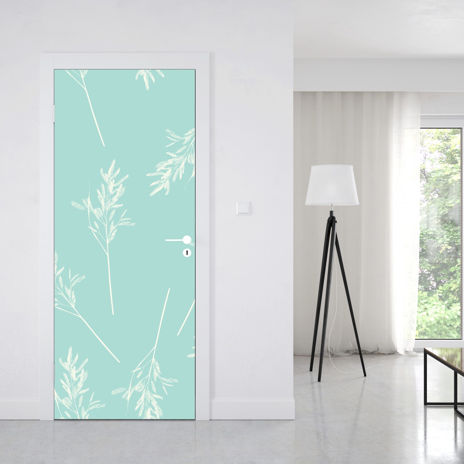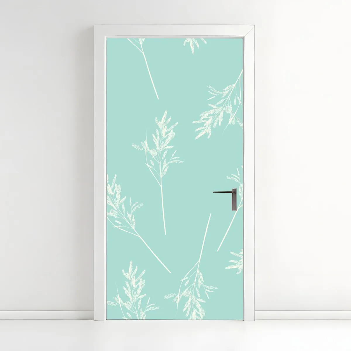 Türaufkleber zartes türkisfarbenes botanisches muster
