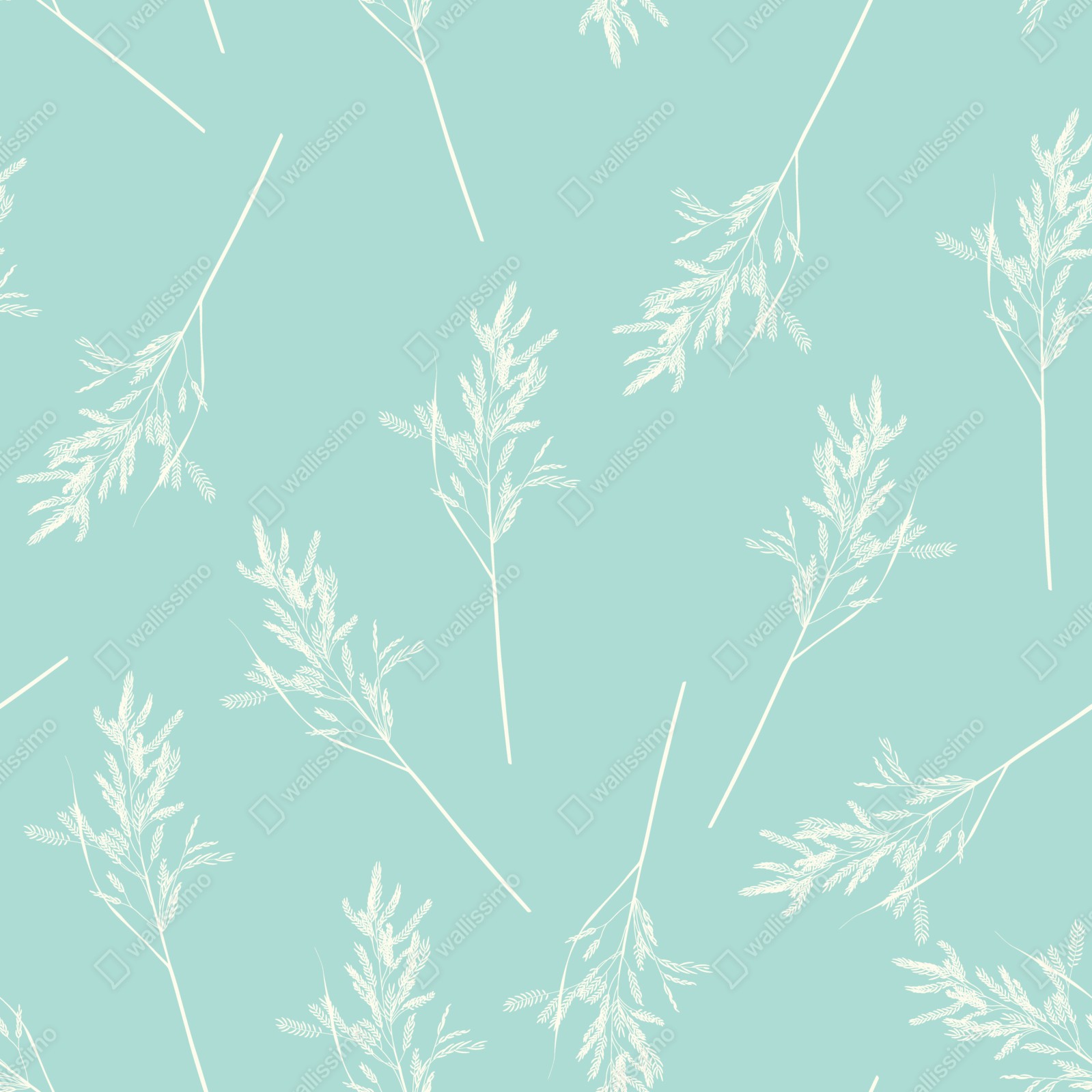 Sanfter türkisfarbener Hintergrund mit zarten weißen Zweigen schafft einen beruhigenden, modernen Akzent für Schlafzimmer und Wohnzimmer.