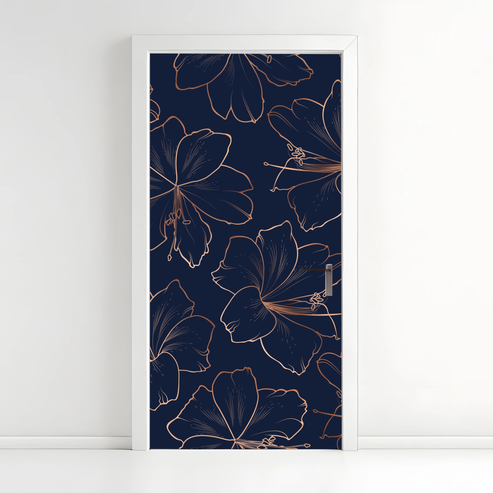 Türaufkleber Dunkelblaues muster mit goldenen blumenkonturen