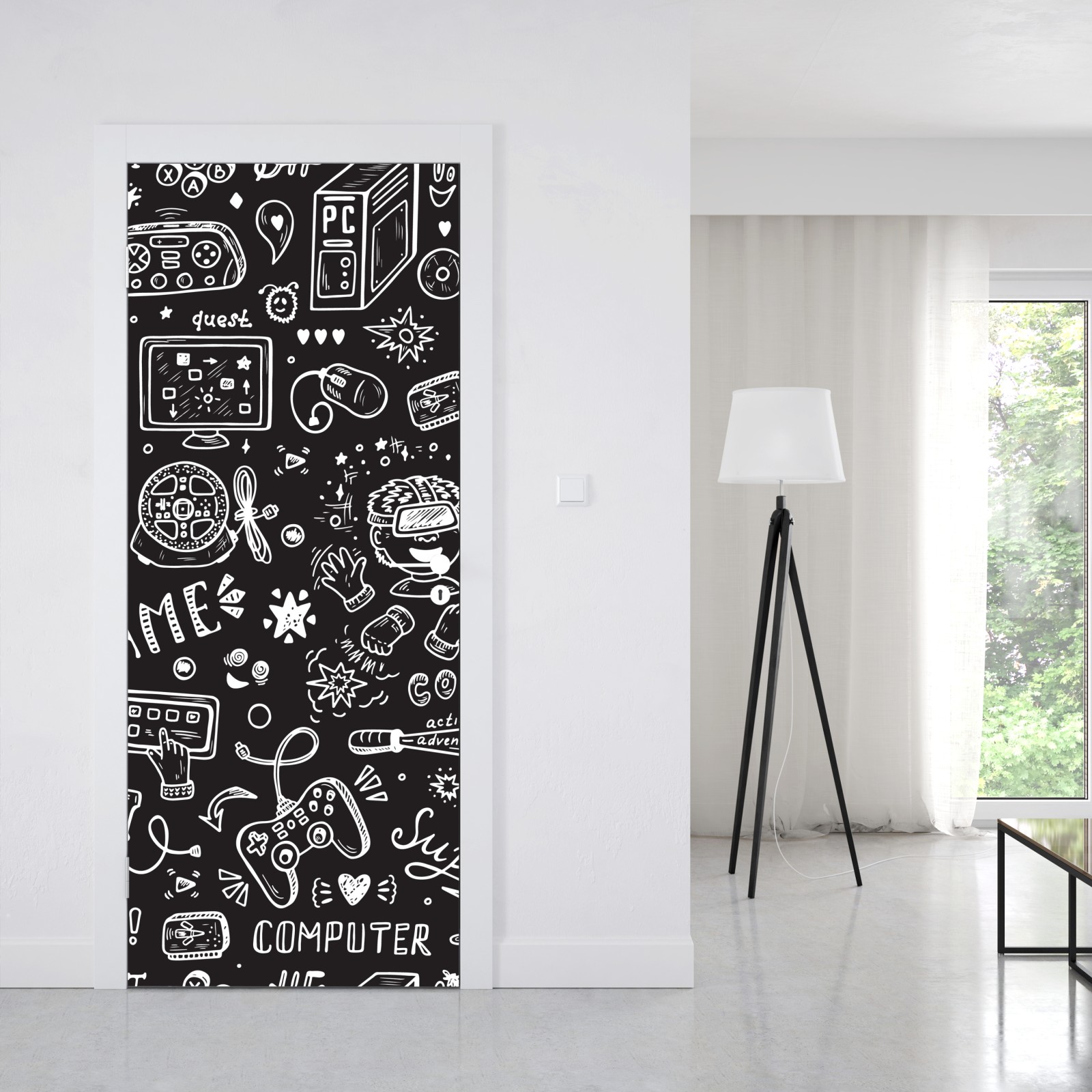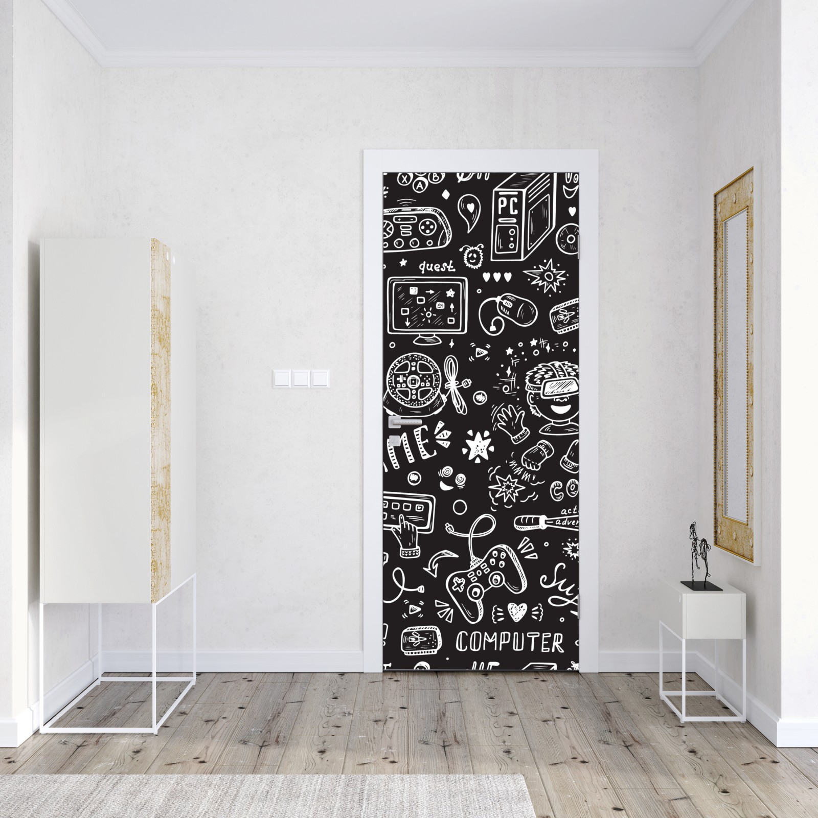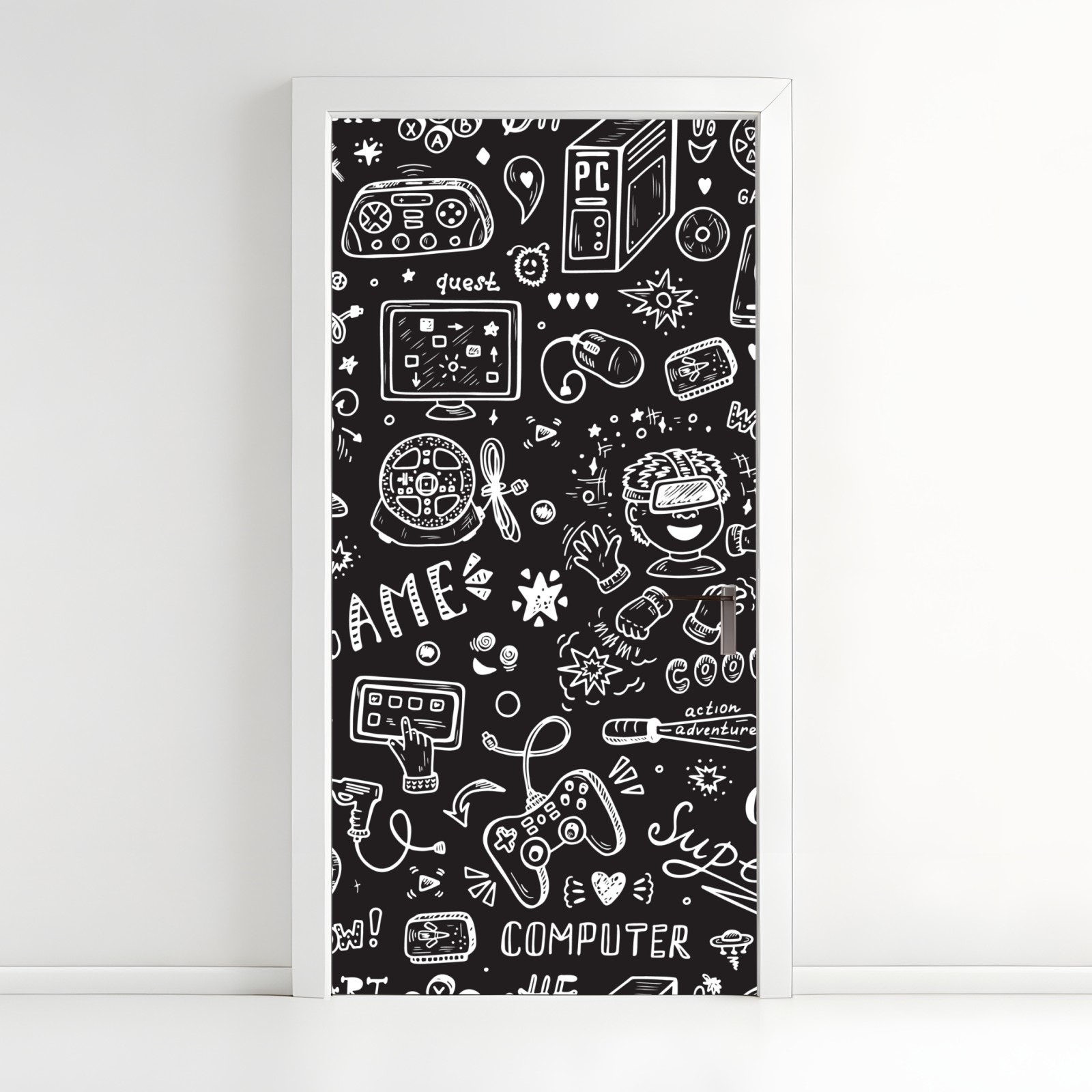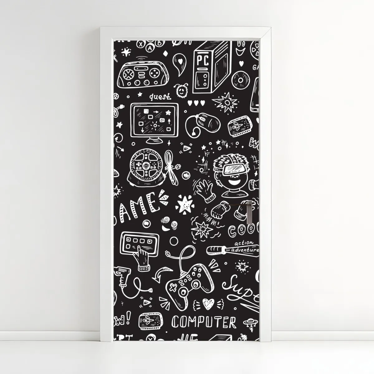 Verspieltes schwarz-weiß Gaming-Muster, ideal zur Dekoration von Spielerzimmern oder kreativen Arbeitsbereichen.