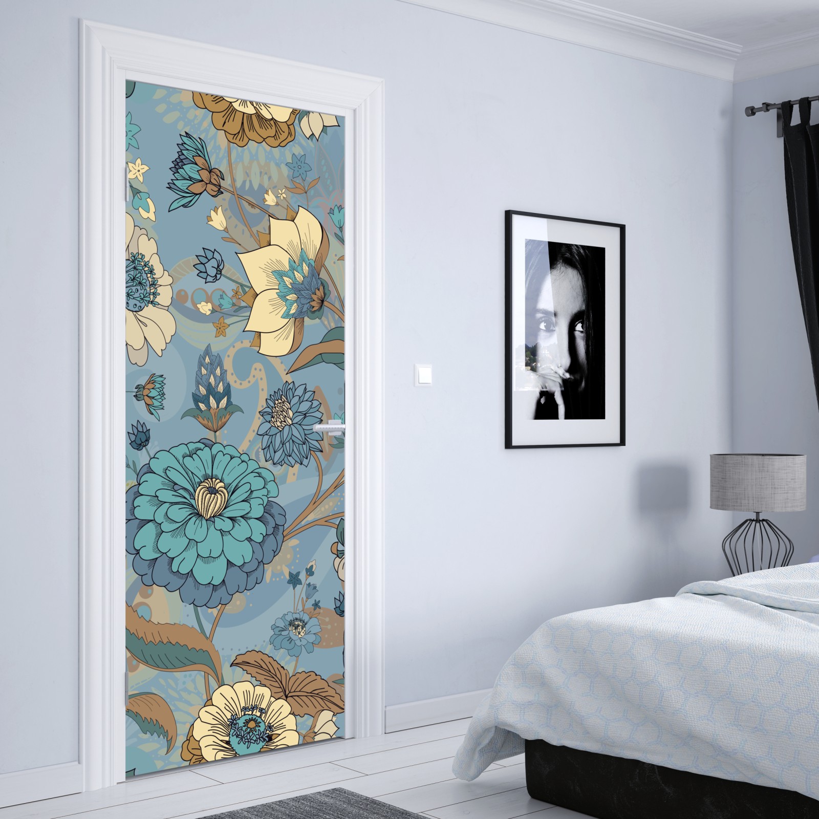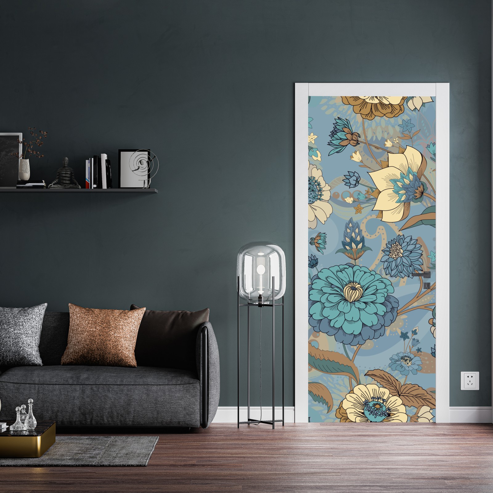Türaufkleber vintage-blumenmuster in gedämpften blau- und beigetönen