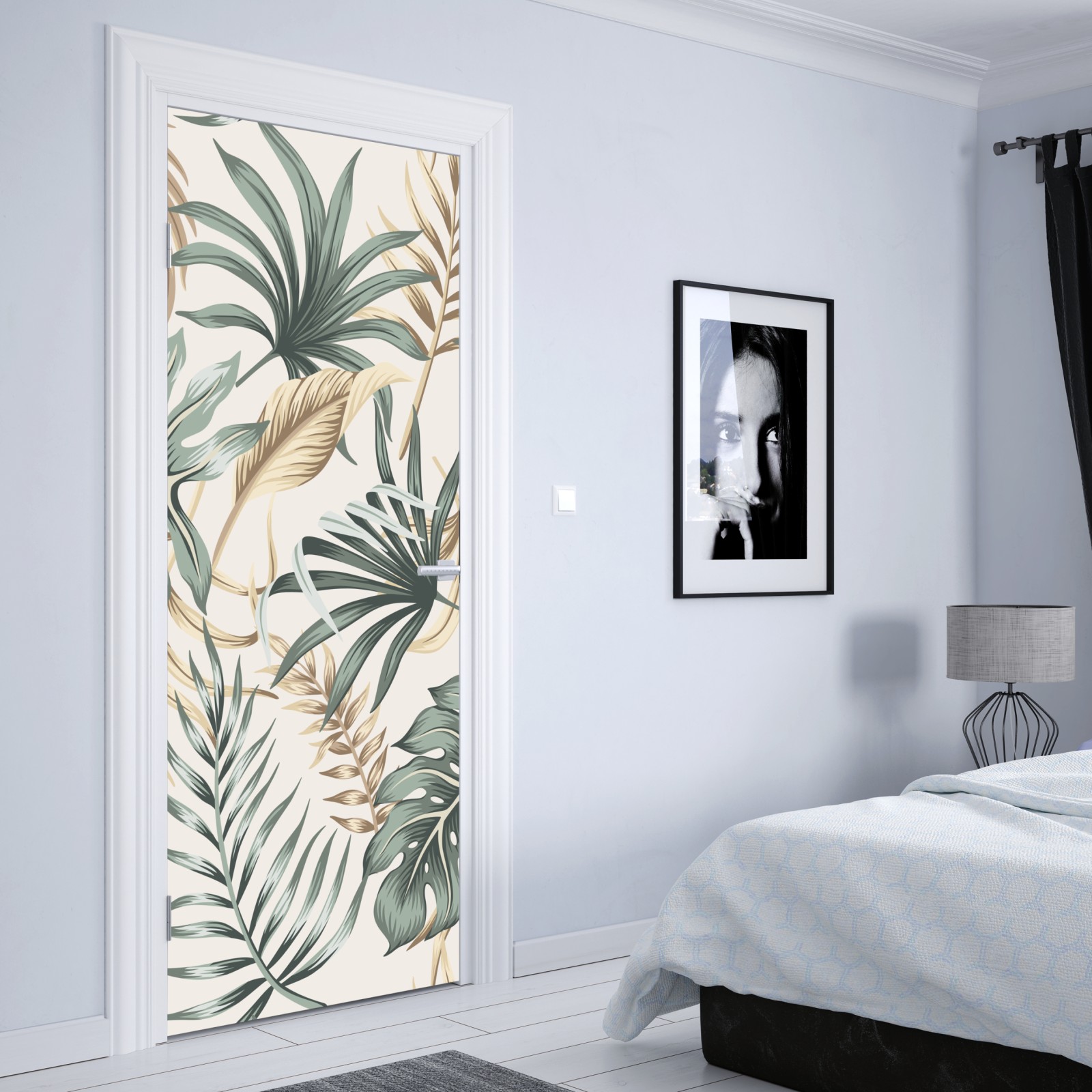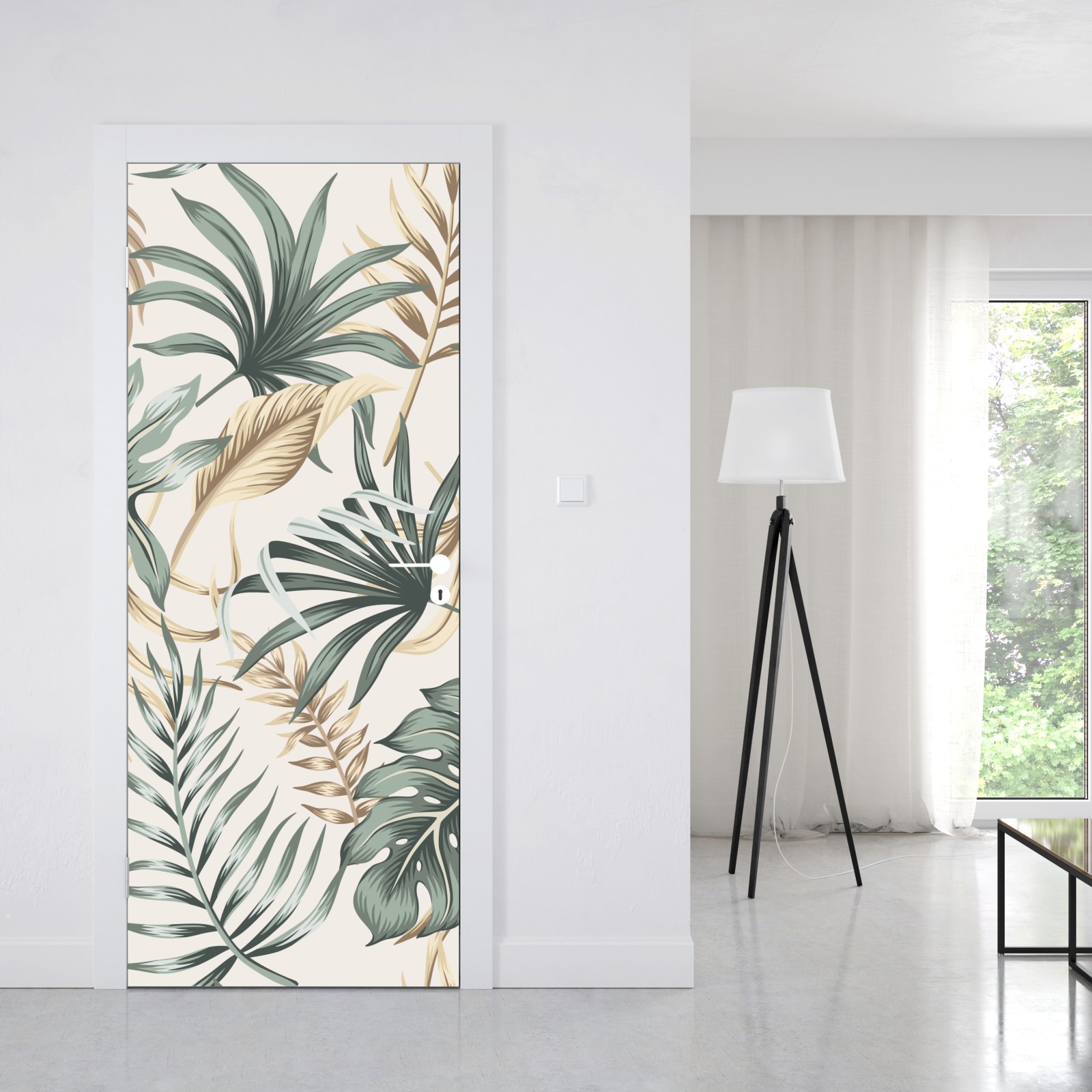 Türaufkleber tropisches botanisches blättermuster
