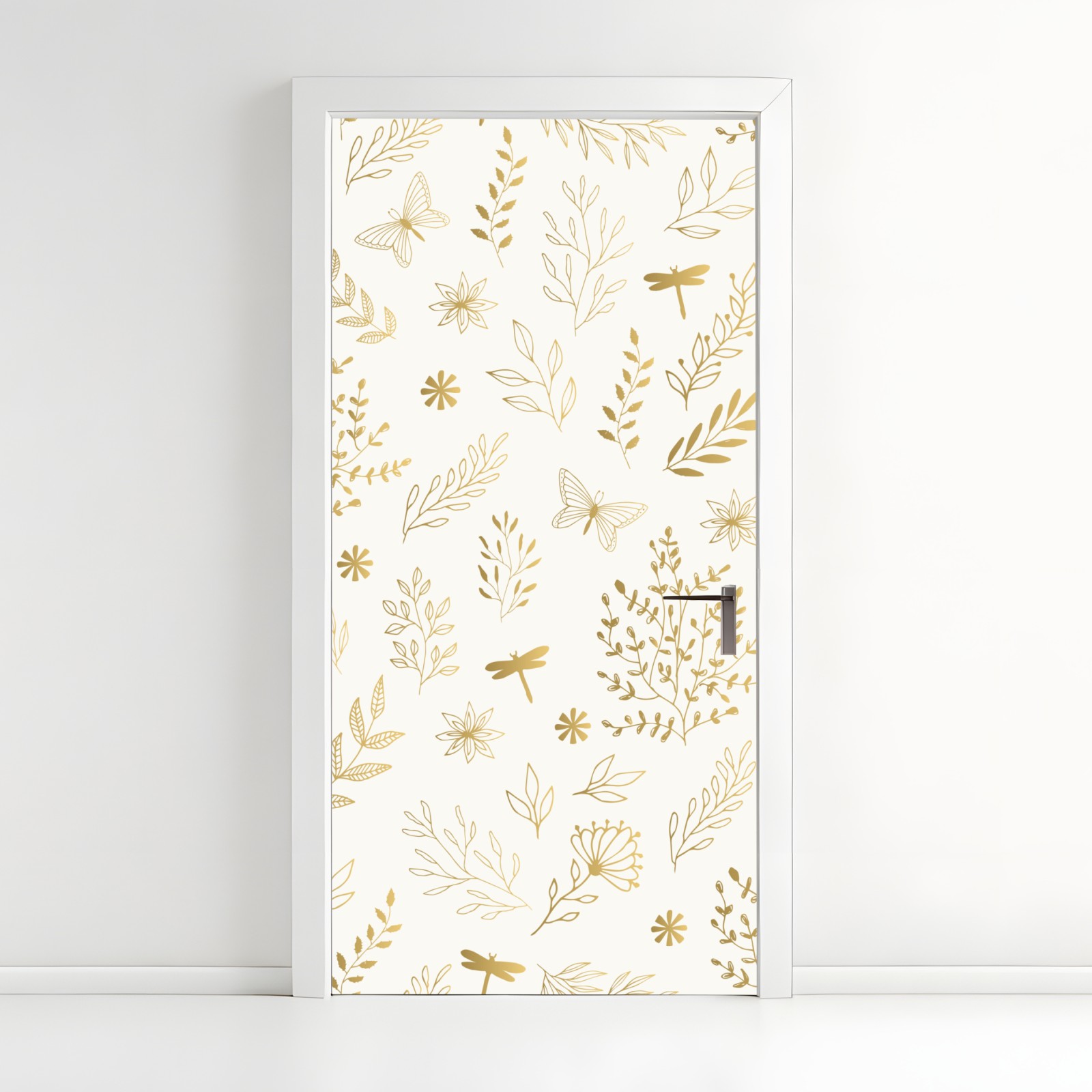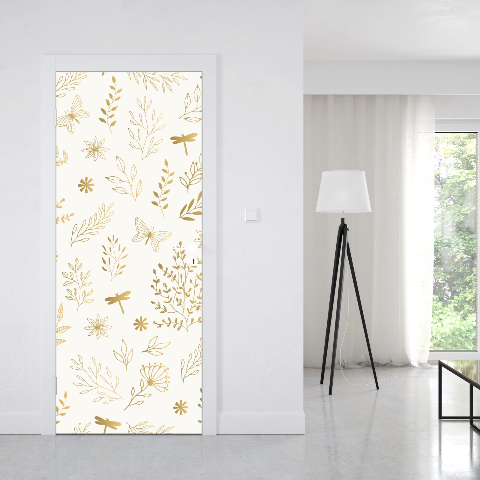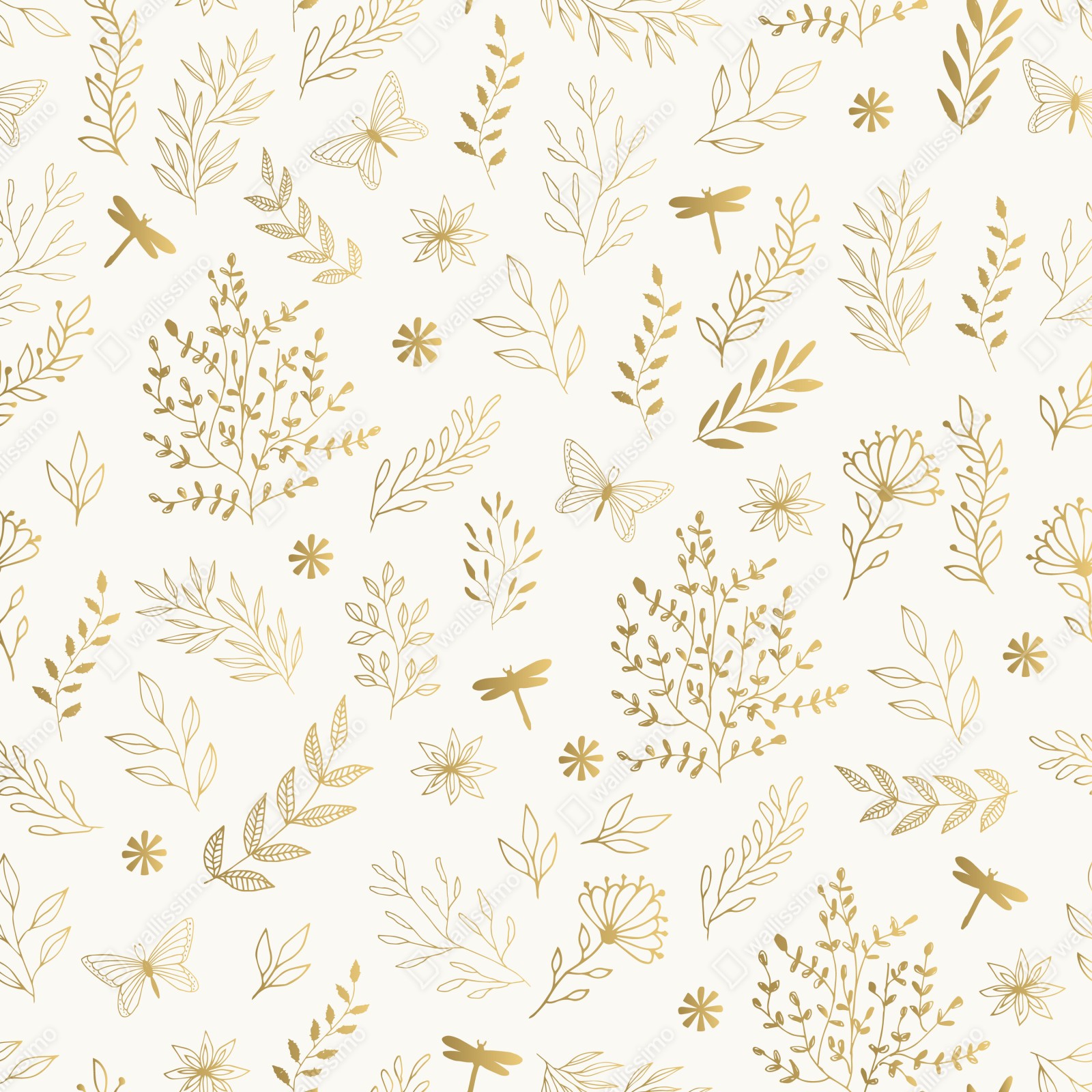 zarte goldene botanische Illustrationen auf cremefarbenem Hintergrund schaffen ein elegantes, minimalistisches Muster, ideal für ruhige Wohnräume.