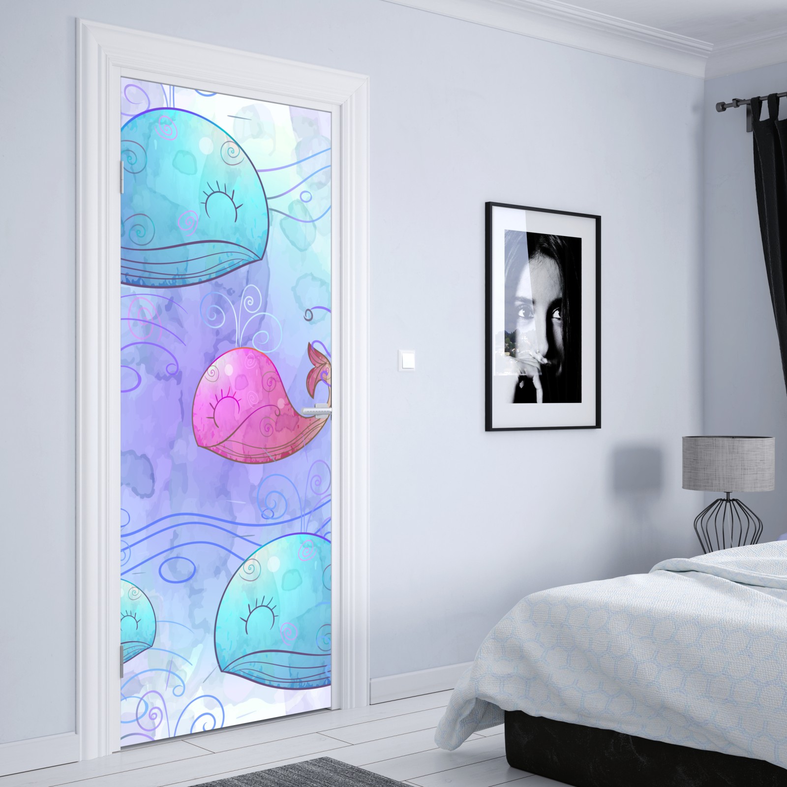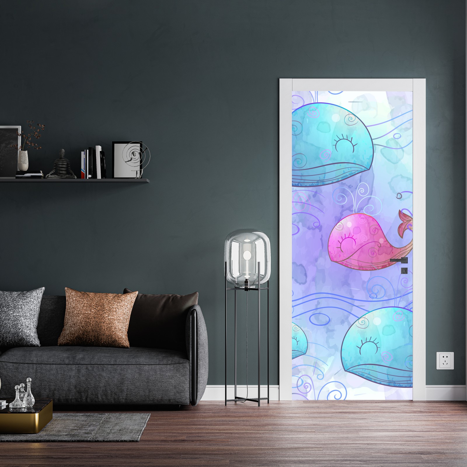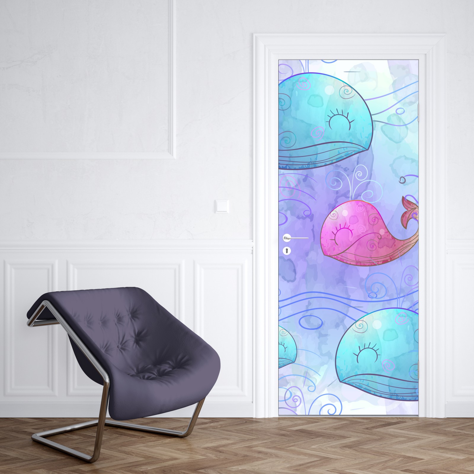 Türaufkleber aquarellwale im pastellmuster fürs kinderzimmer