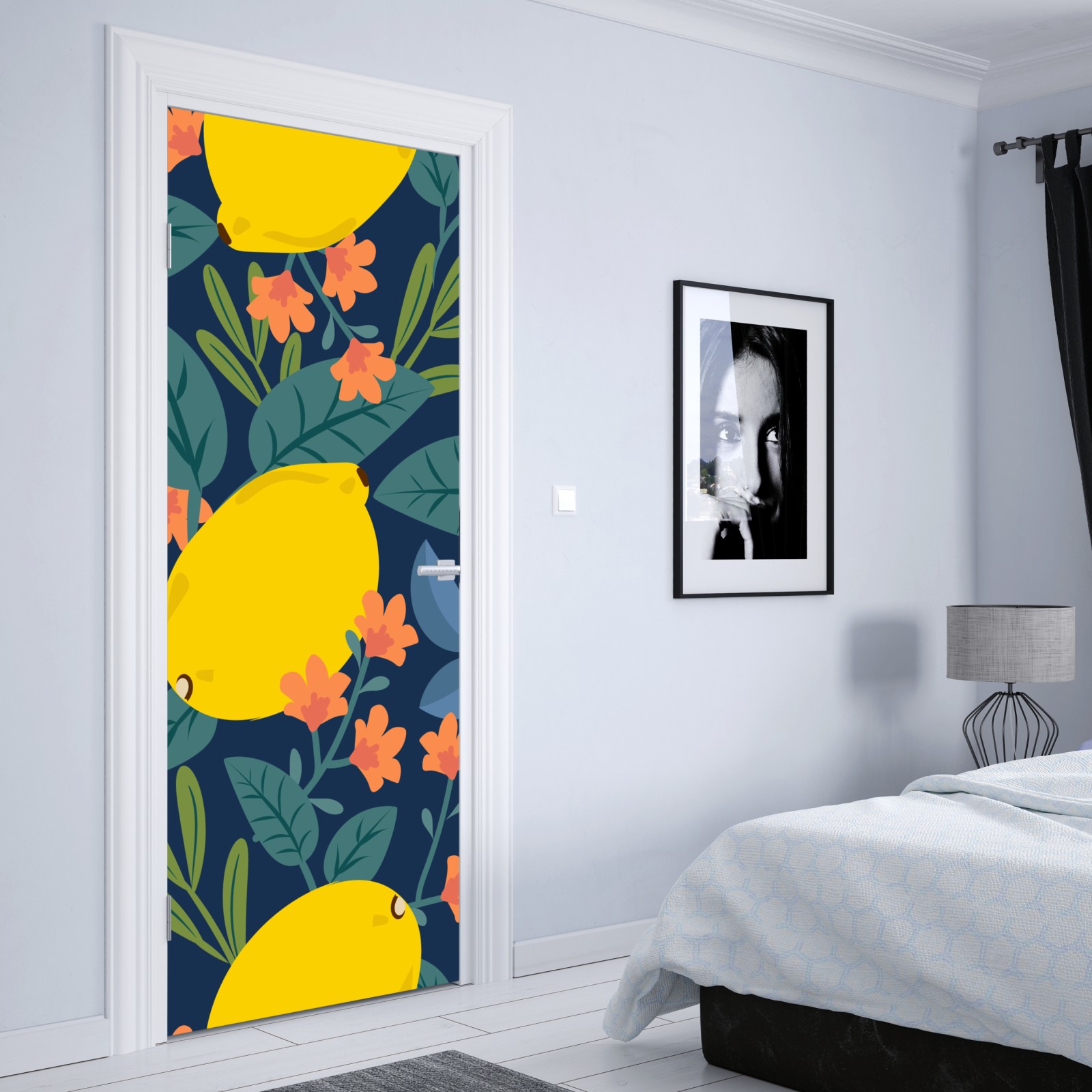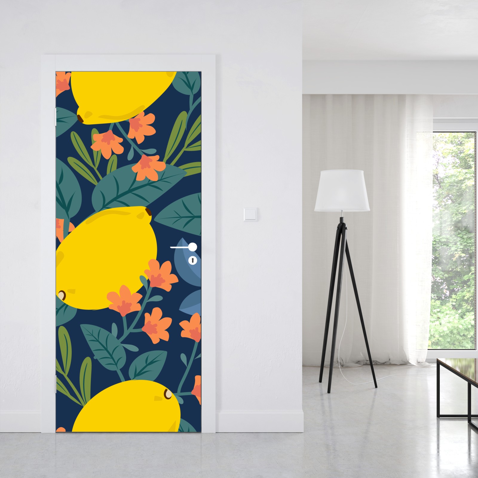 Türaufkleber leuchtendes botanisches zitronenmuster