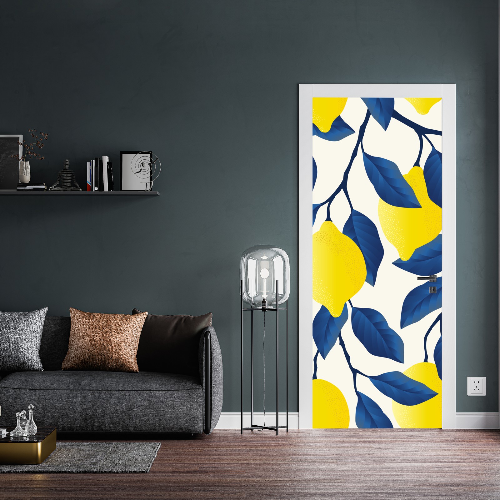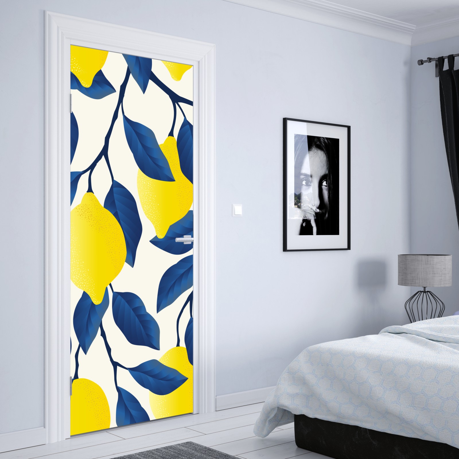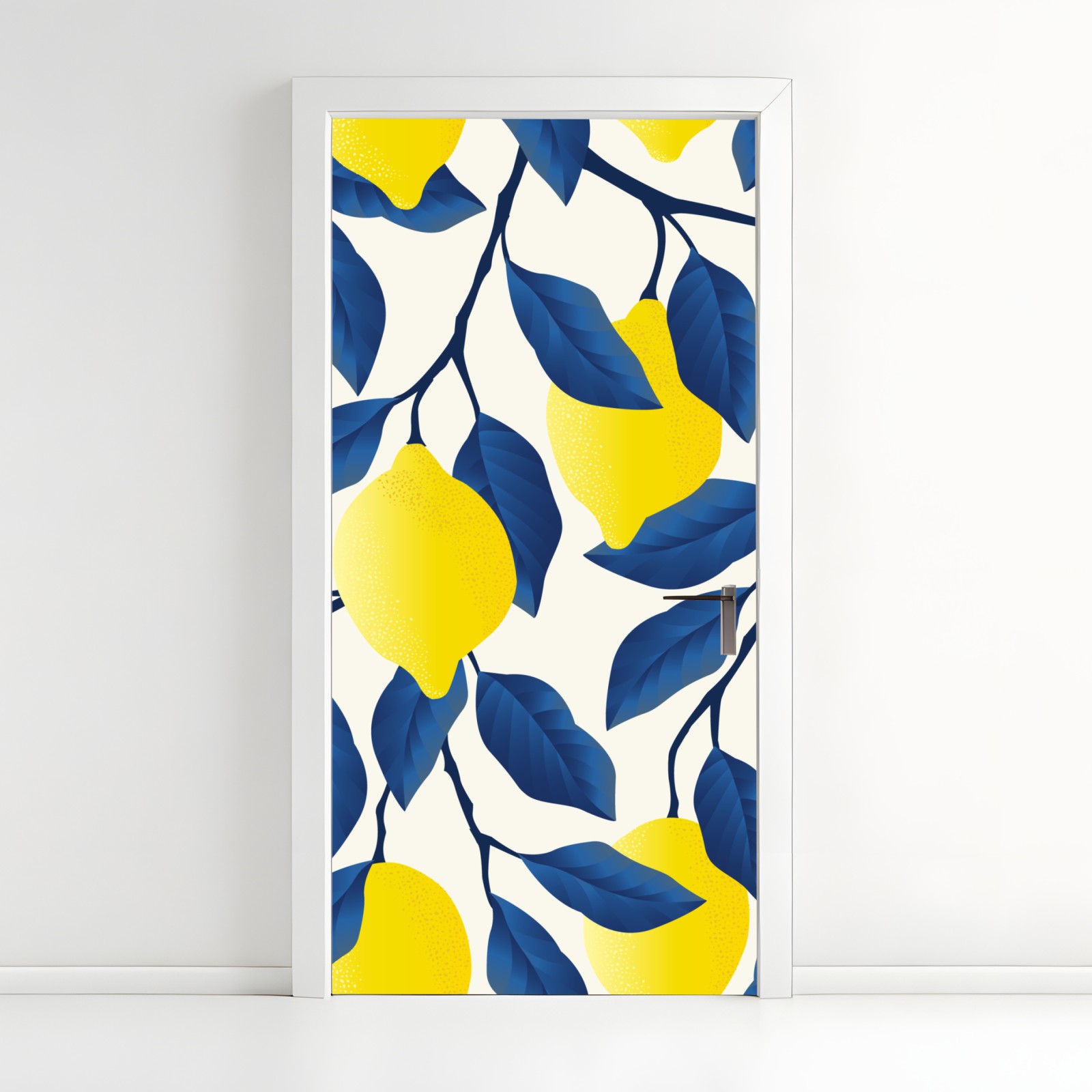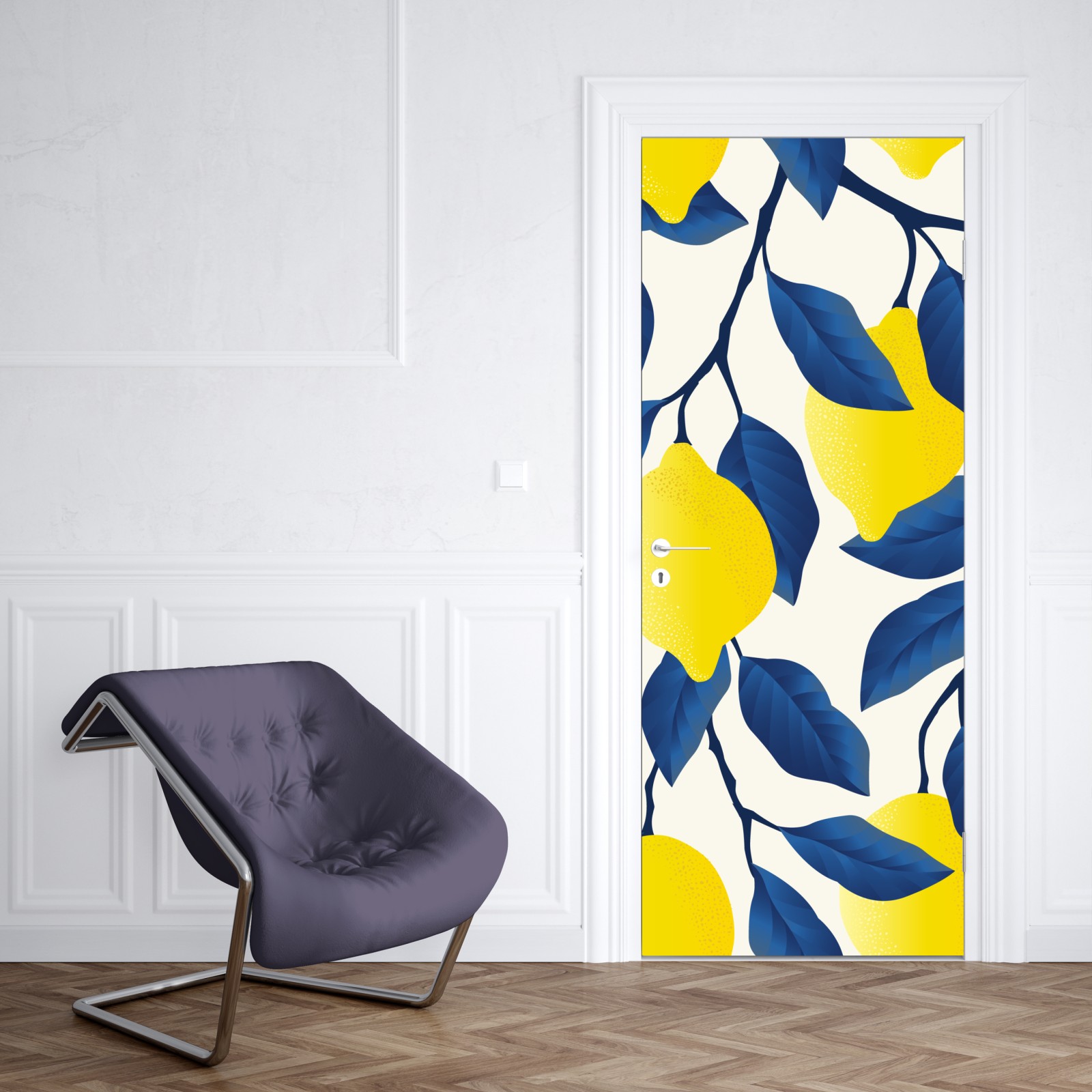 Türaufkleber lebhaftes zitronenmuster mit blauen blättern