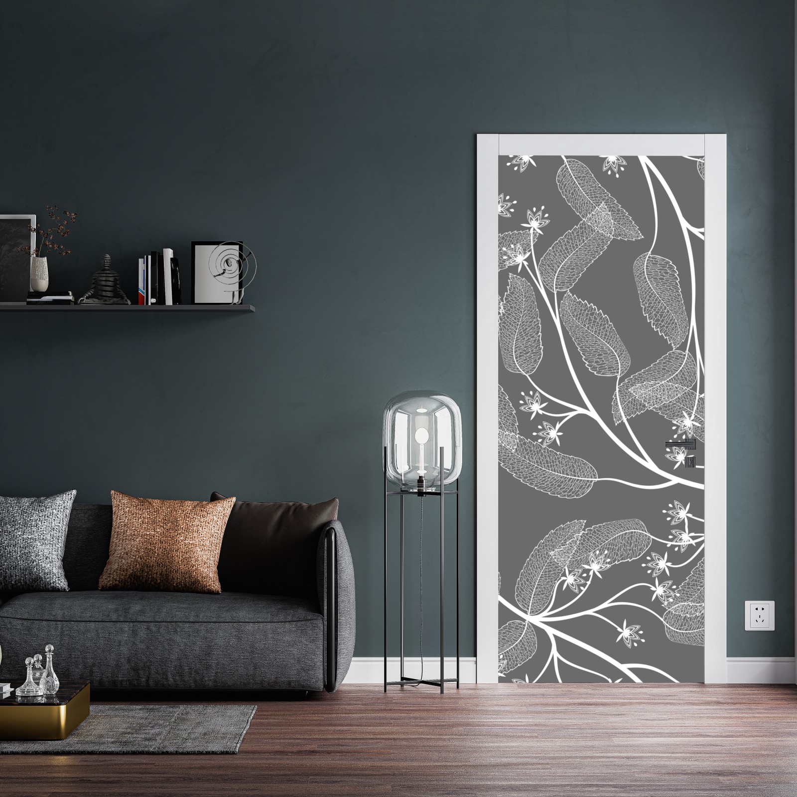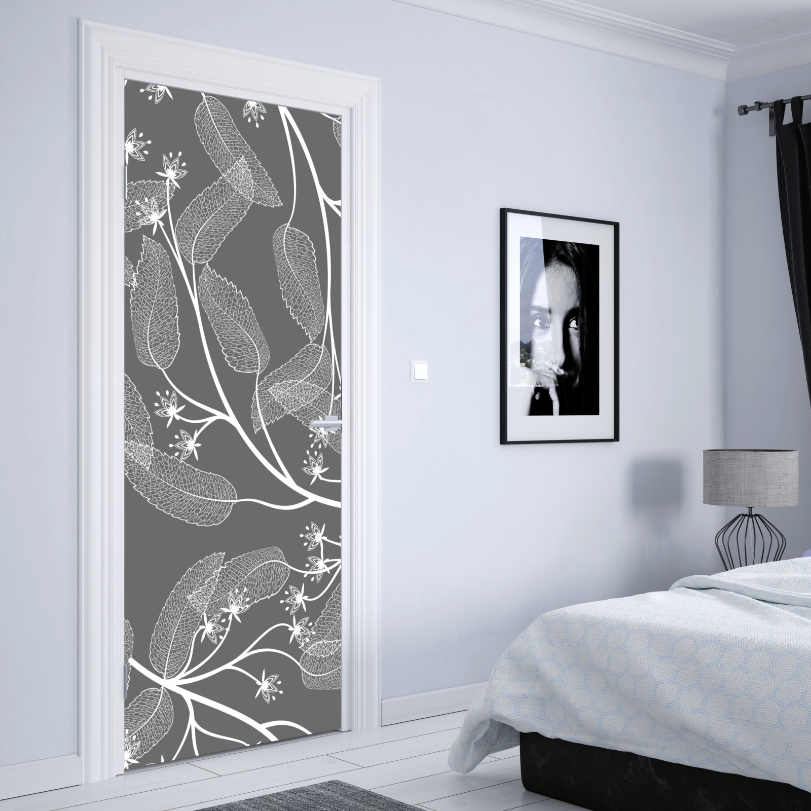 Türaufkleber zarte weiße blätter auf grauem hintergrund