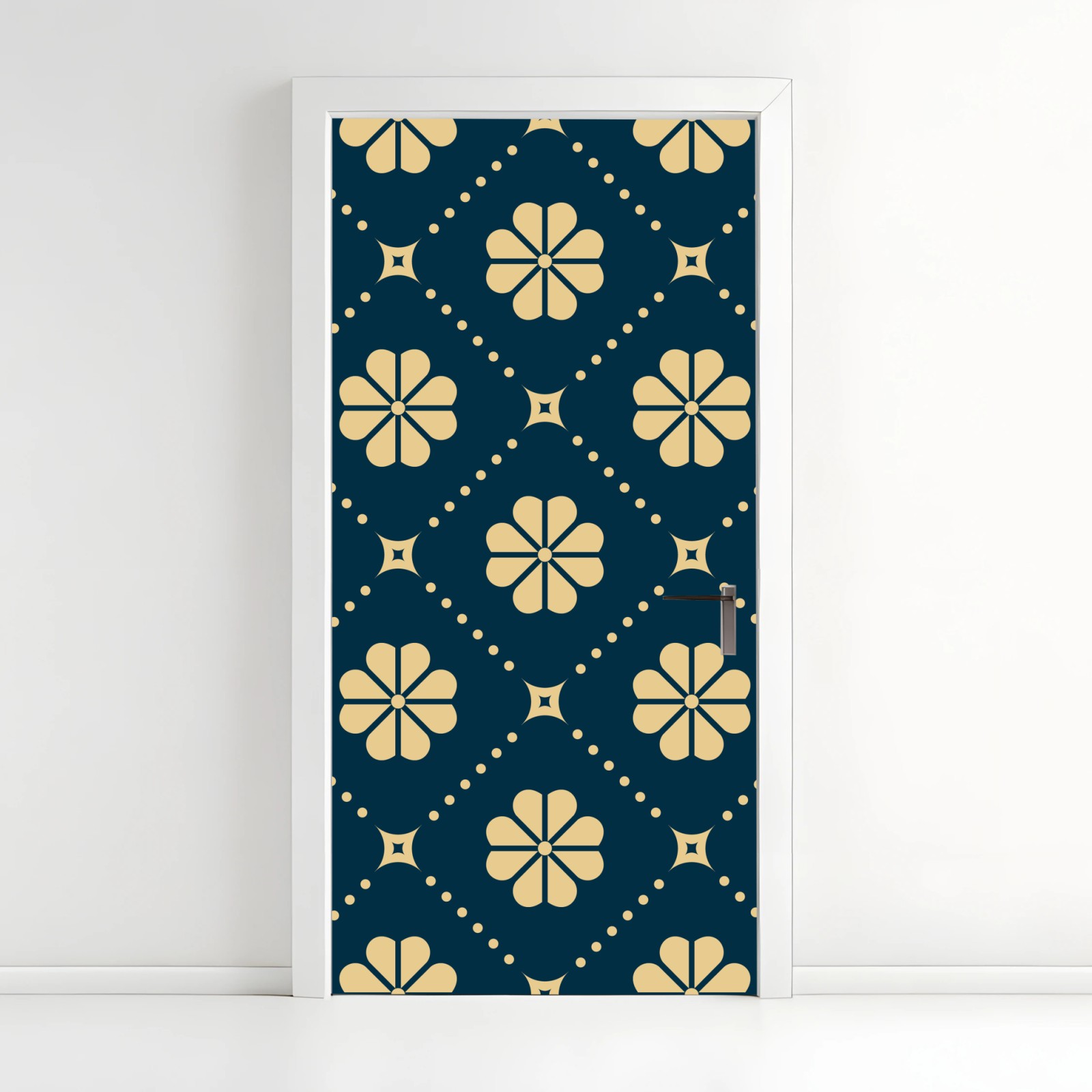 Türaufkleber Türkis beiges blumen geometrisches muster