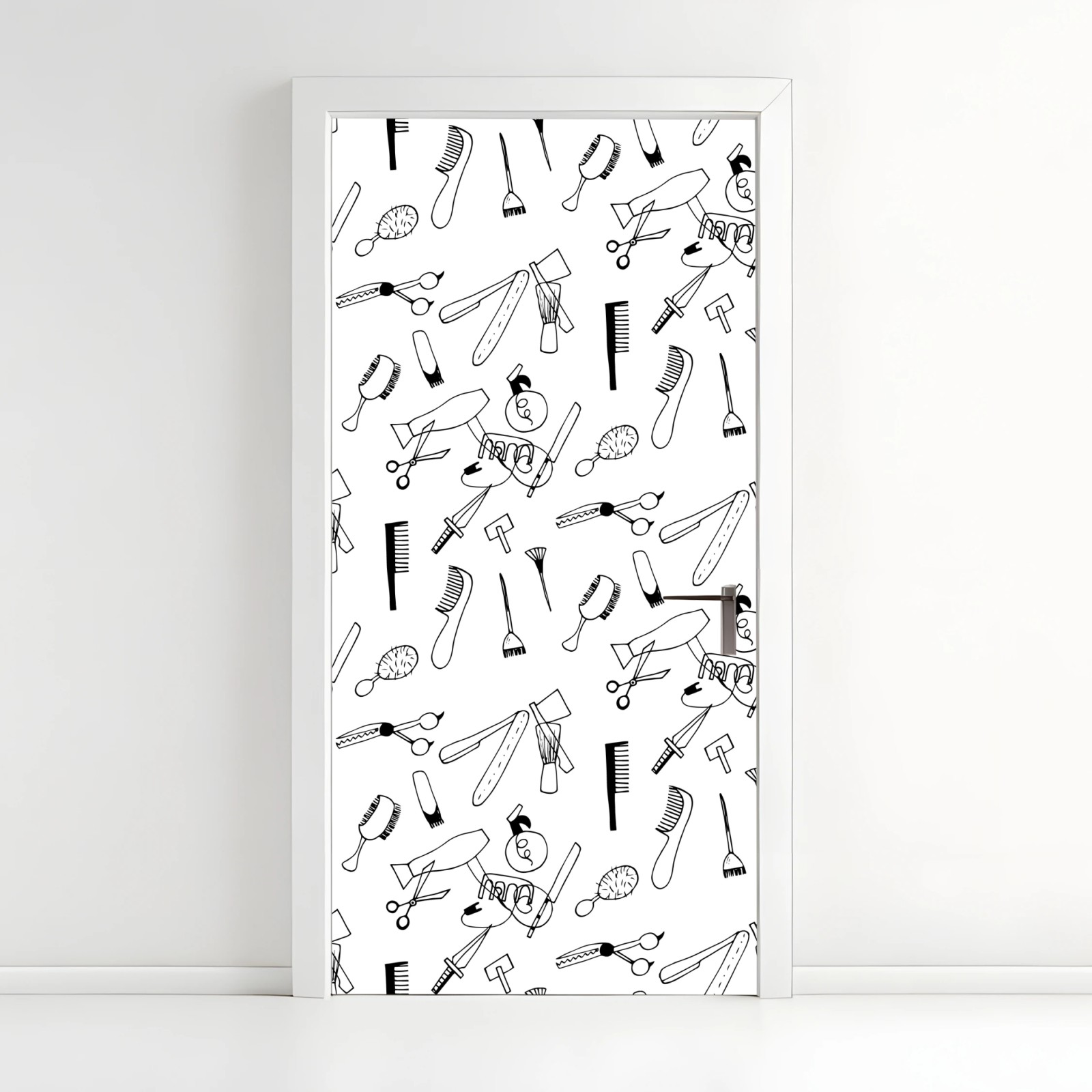 Türaufkleber Handgezeichnetes muster von friseurwerkzeugen