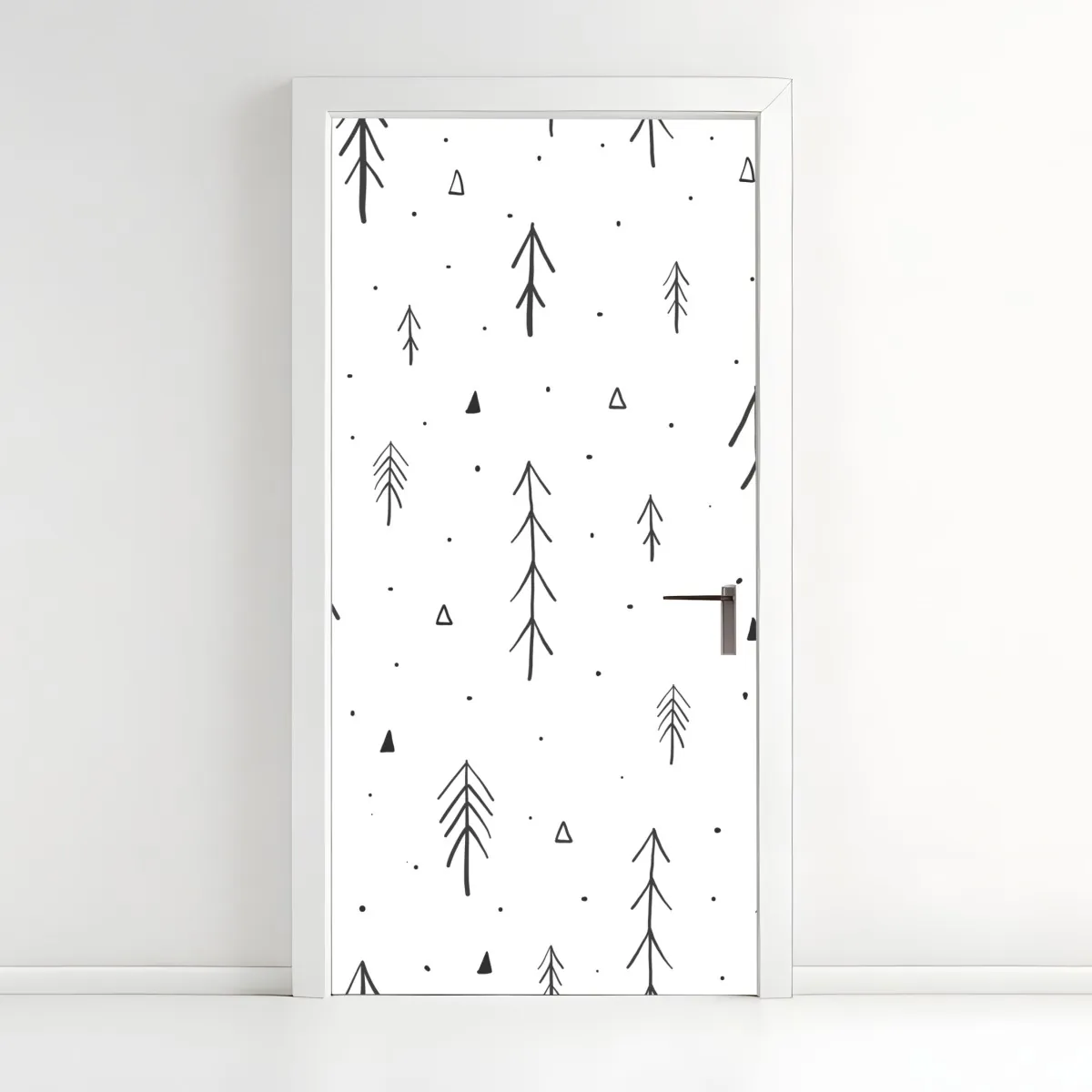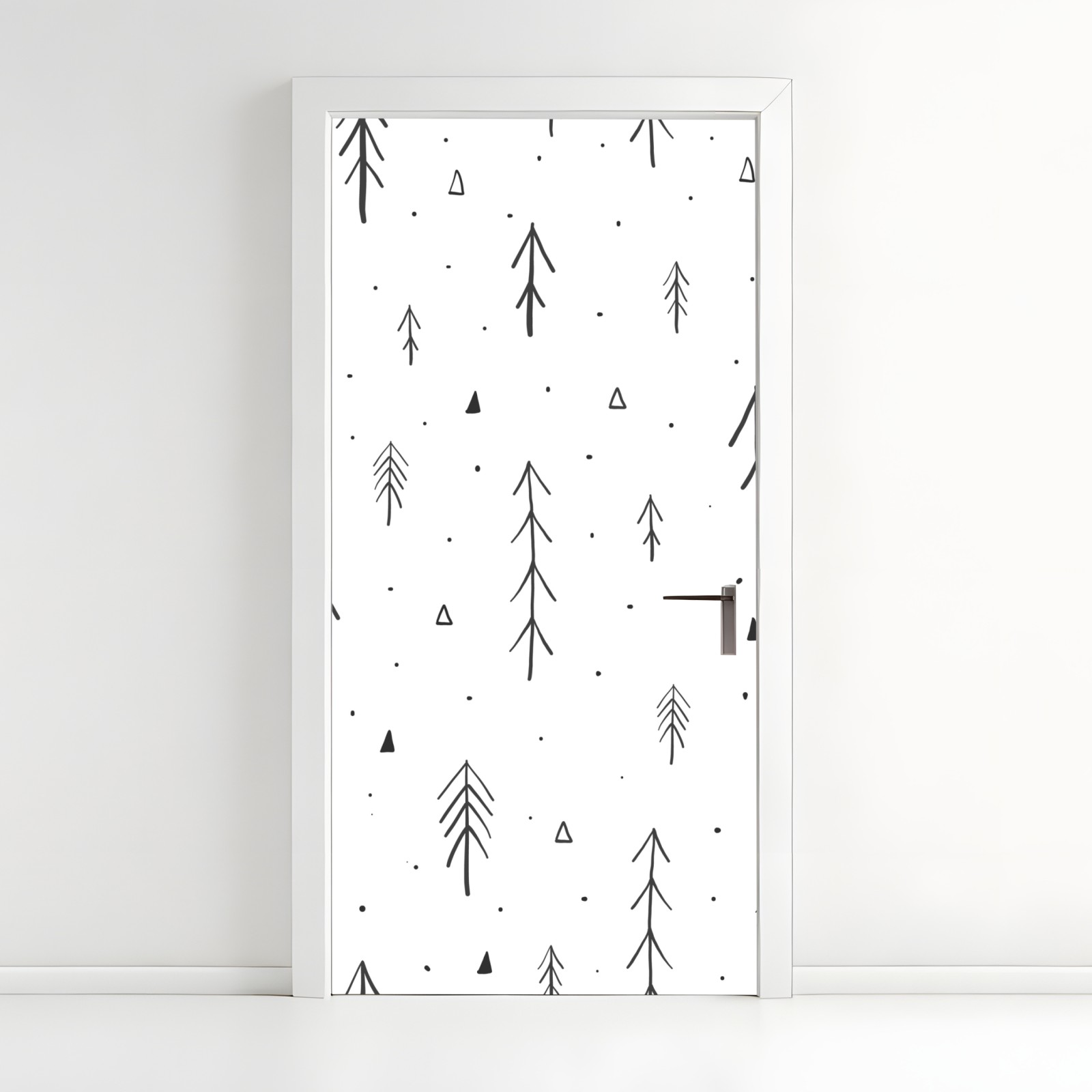 Türaufkleber minimalistisches muster mit handgezeichneten bäumen